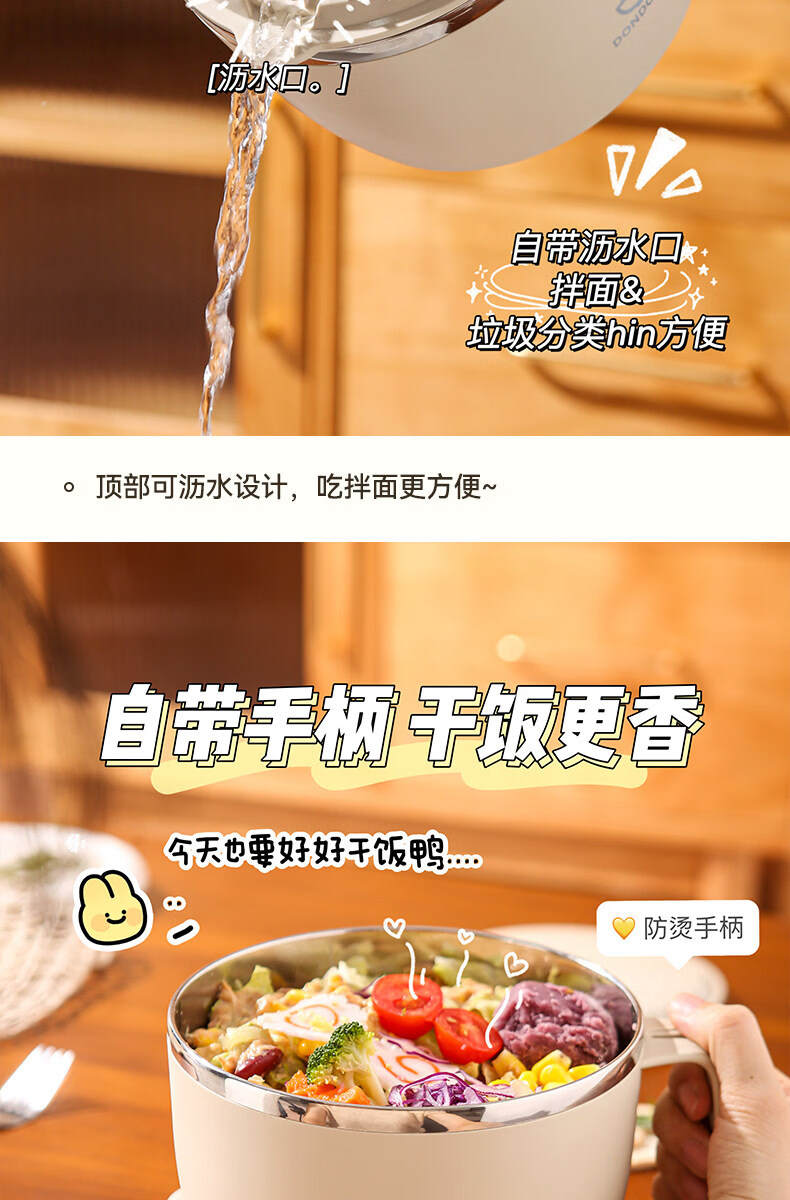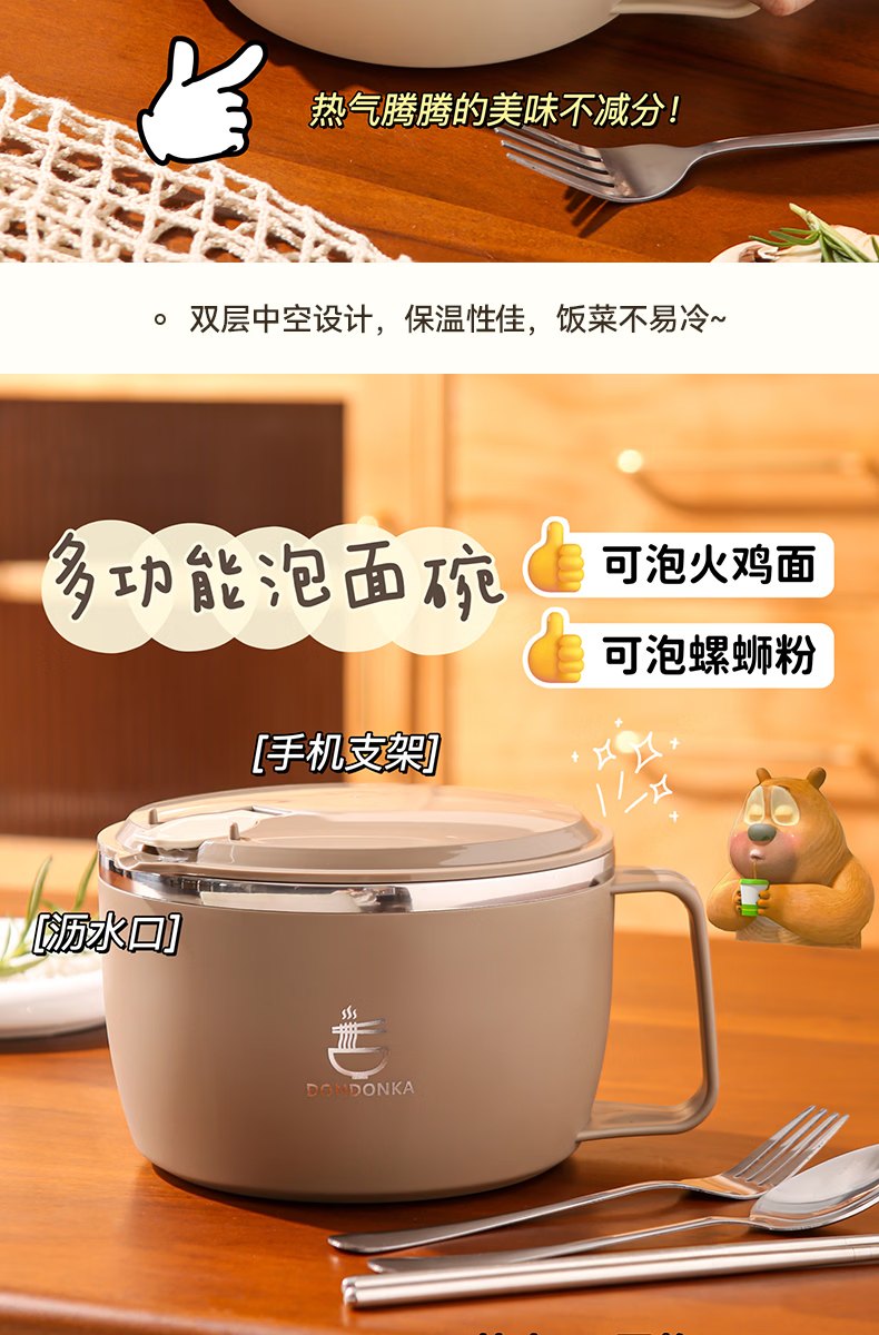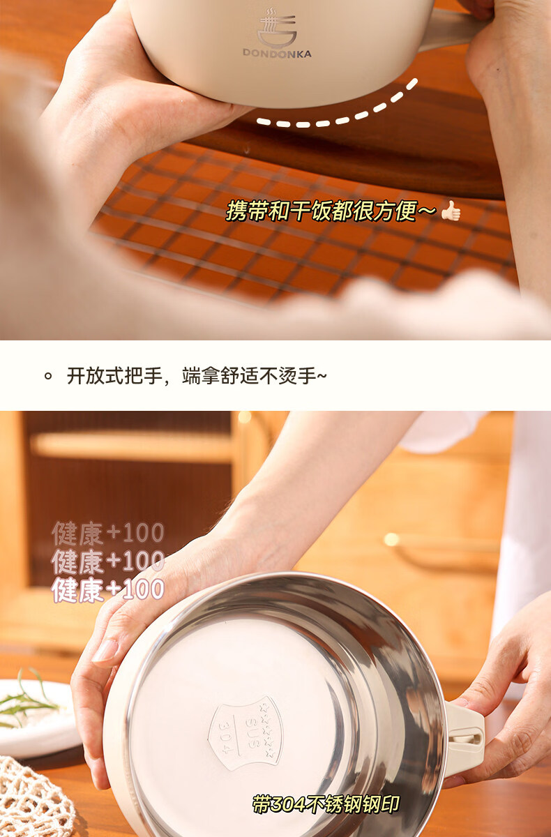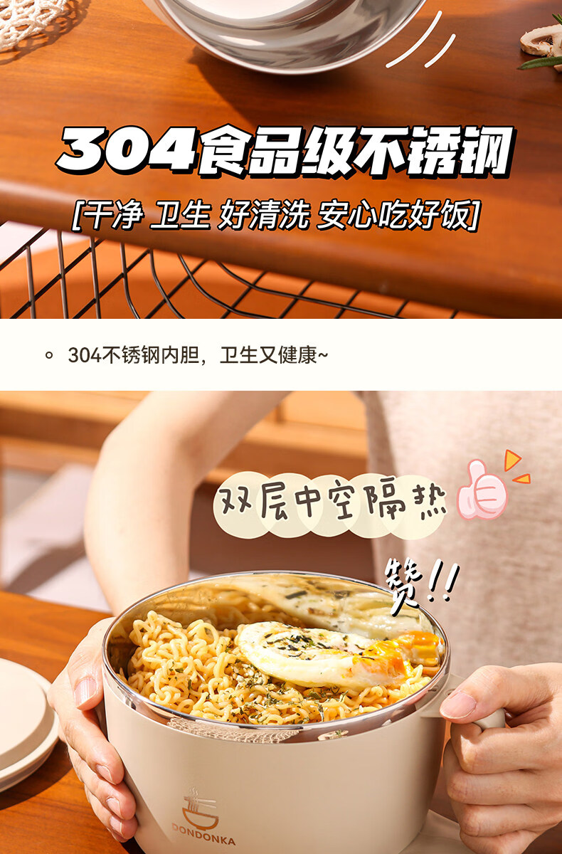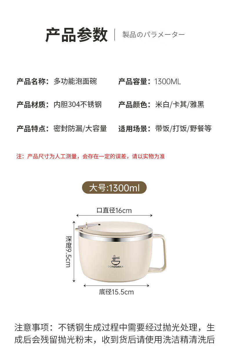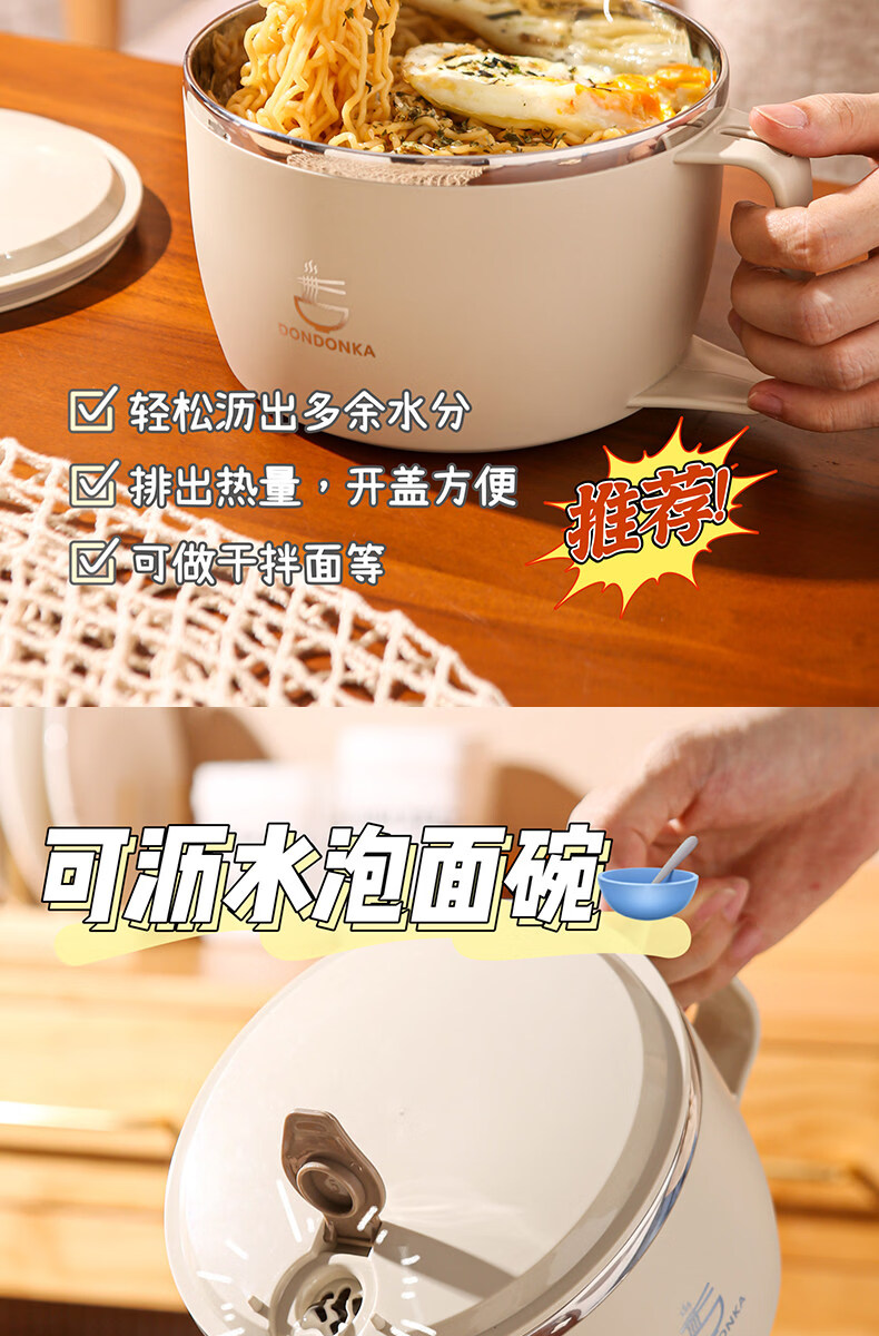 Tuojin Japan imported quality instant noodles noodle bowl for dormitory students with lid to drain Japanese instant noodles noodle artifact stainless off-white + tableware 1000ml