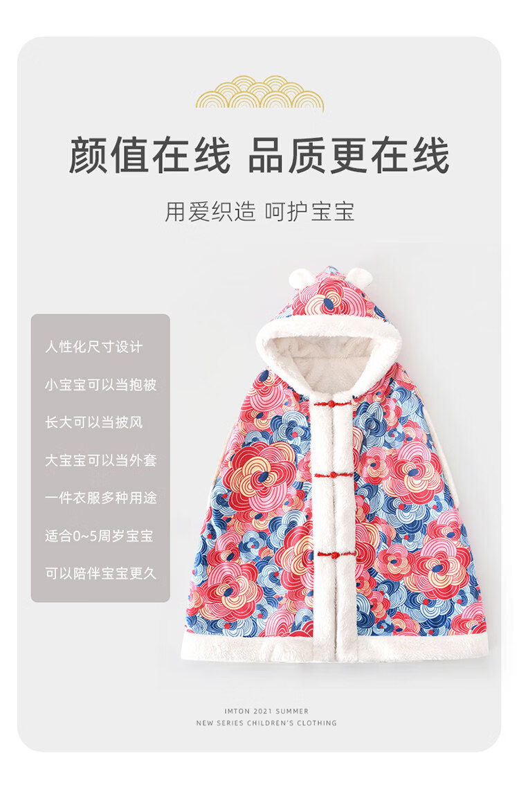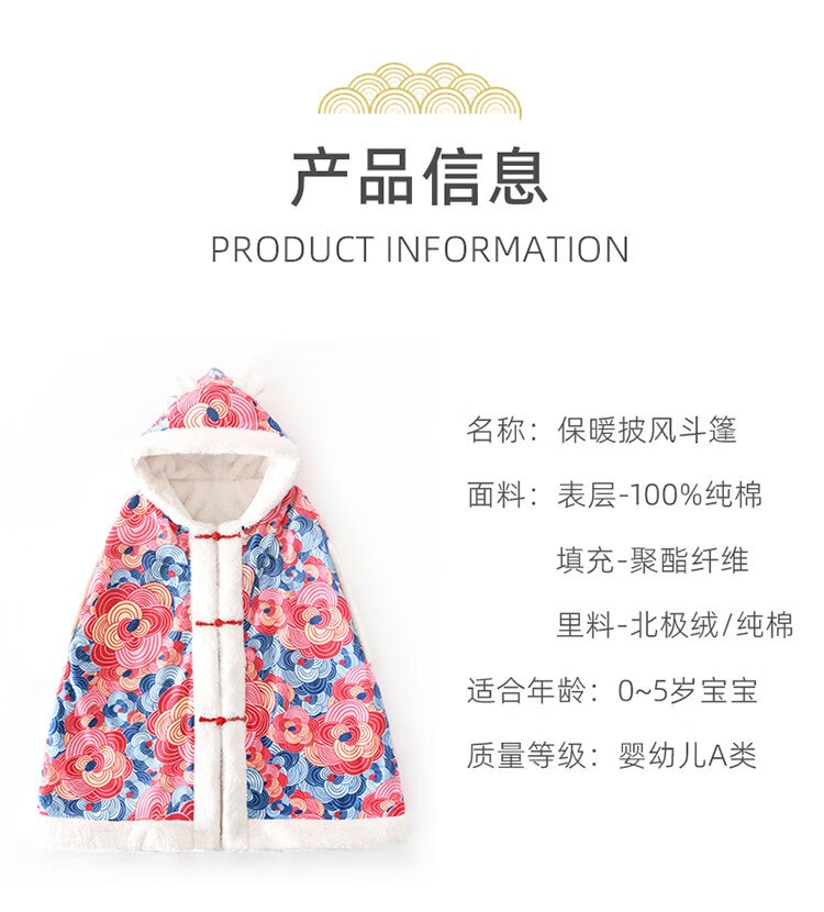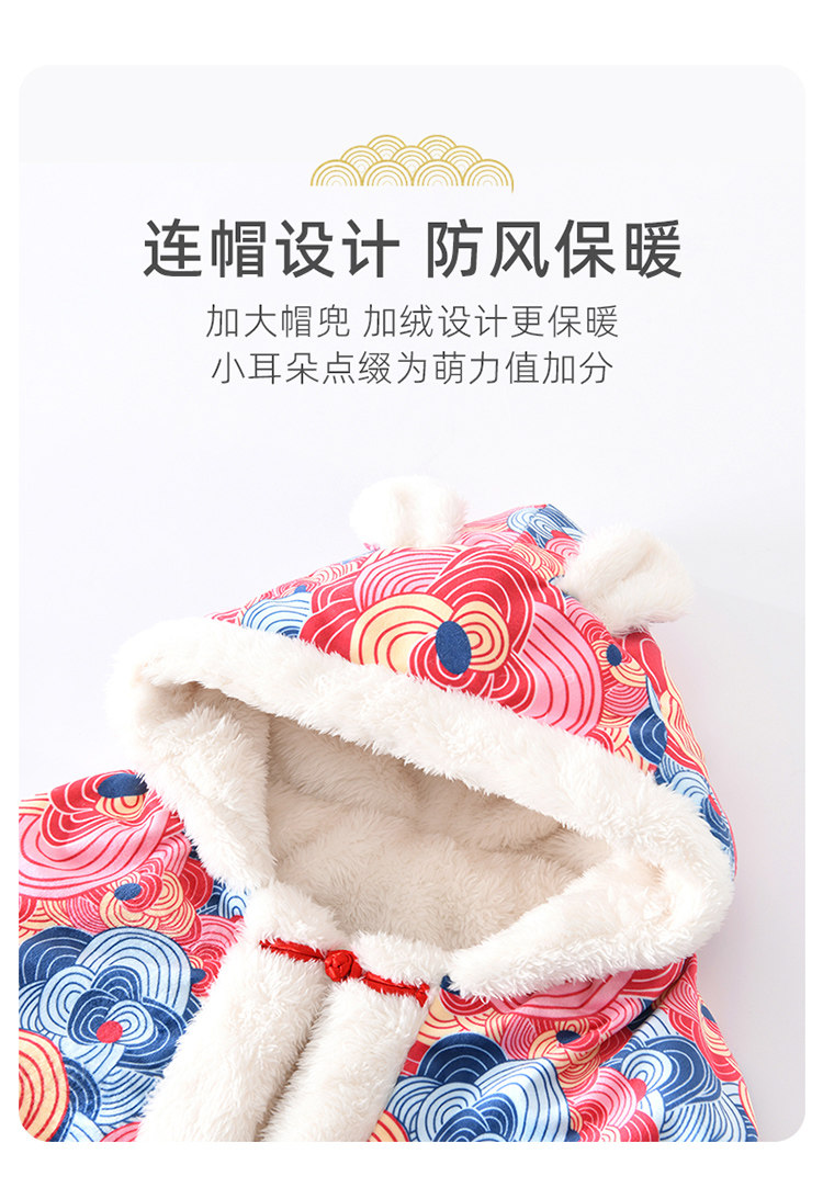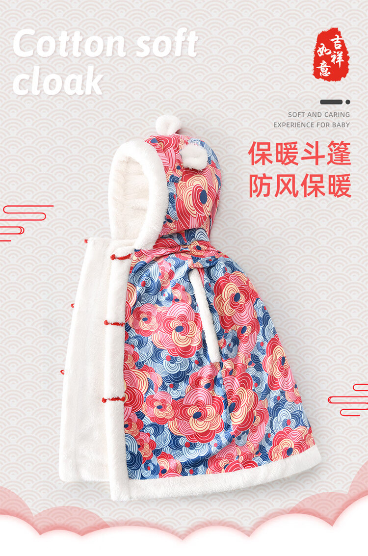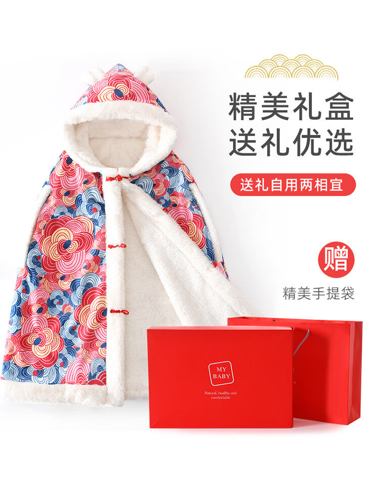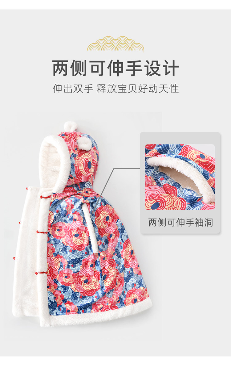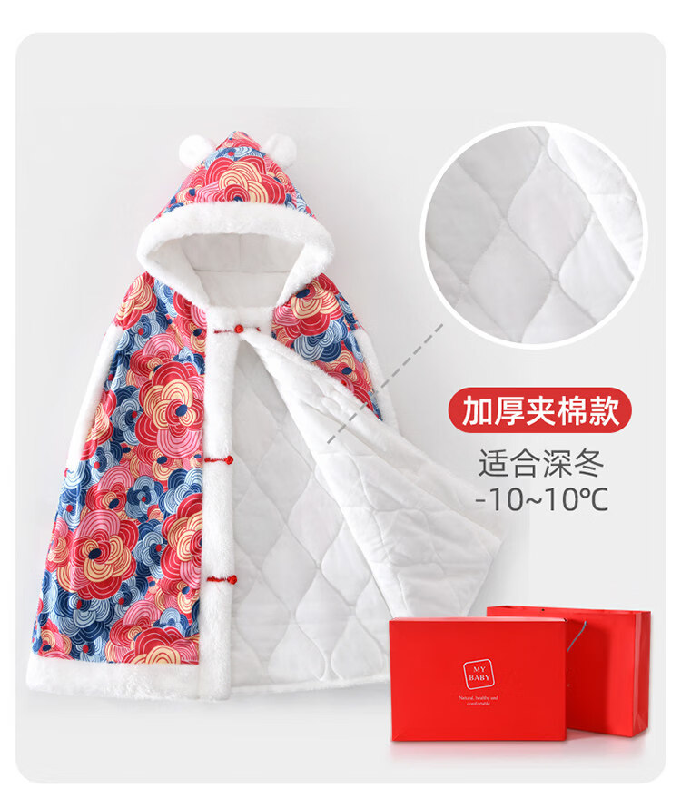Balala Balabala Baby Cloak Outing Cloak Cover Autumn and Winter Children and Baby Hooded Windproof Thickened Warmth Same Style Phoenix Laiyi Gift Box 110 cm