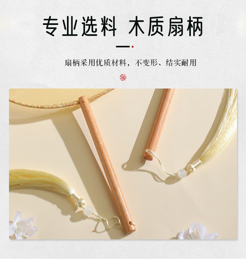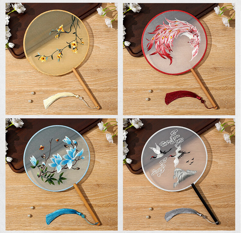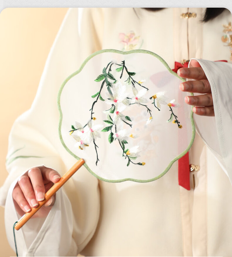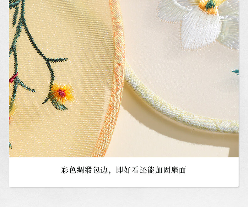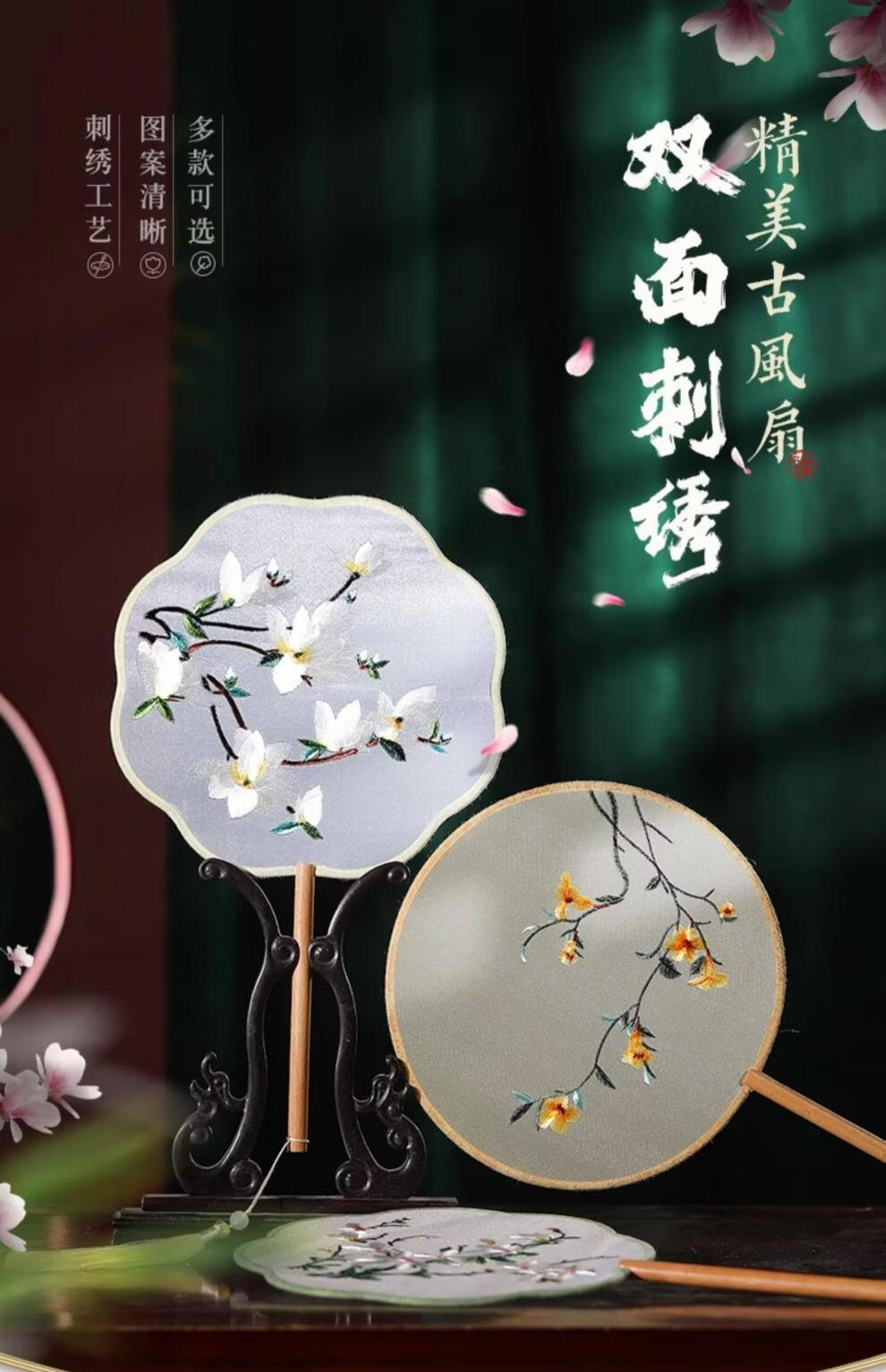 Embroidered round fan, ancient style Hanfu fan, Suzhou Su embroidery Chinese style cheongsam children's round fan, summer dance fan special 10-Mengqingsheng double-sided embroidery craft fan
