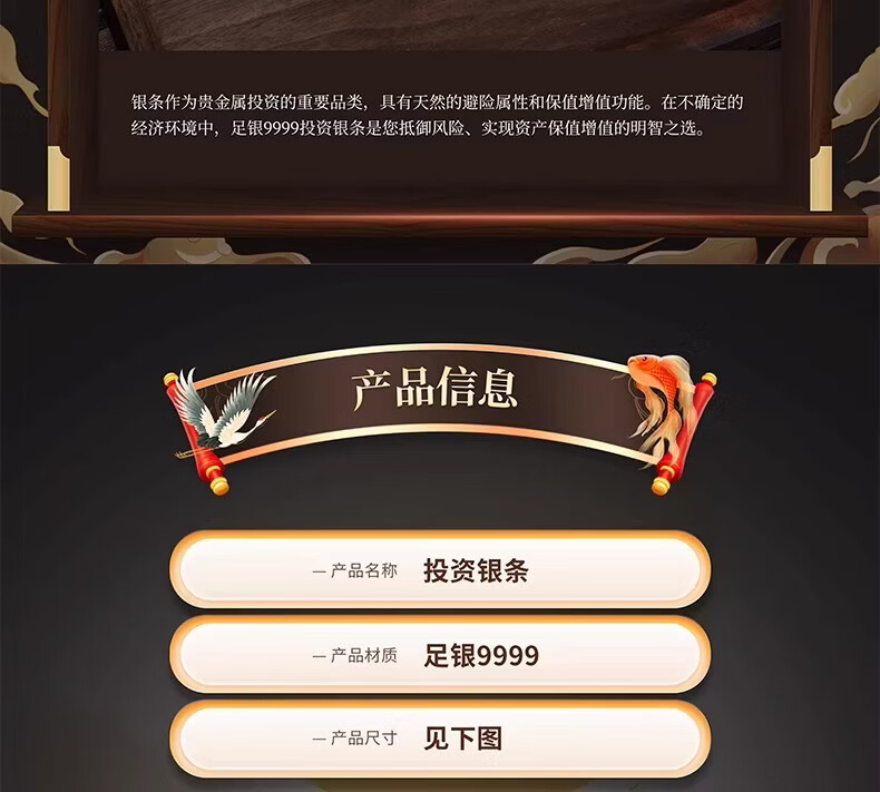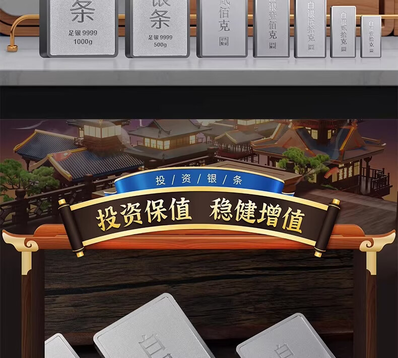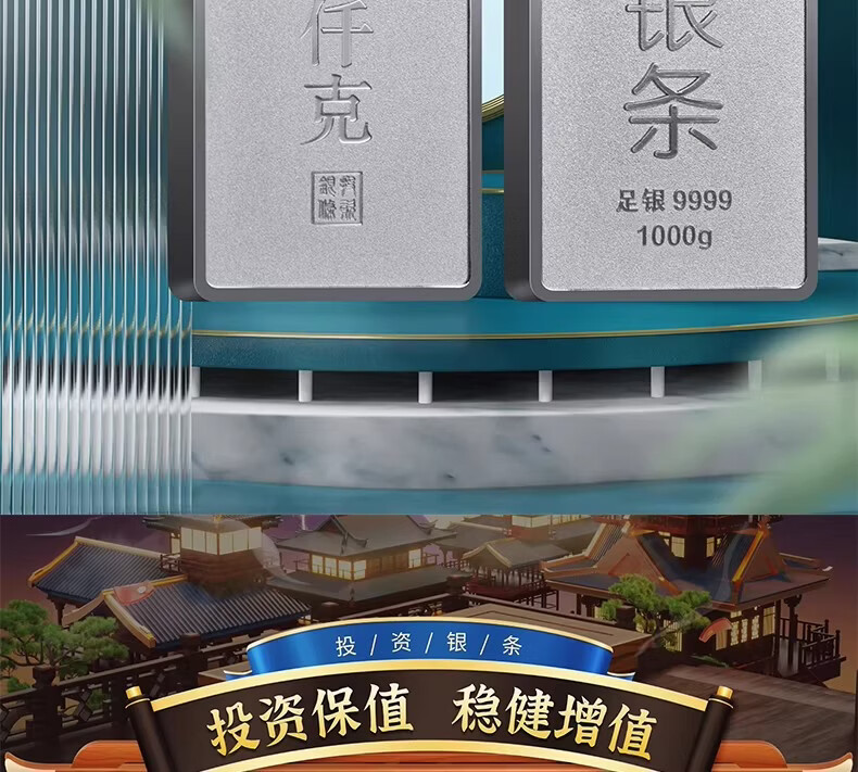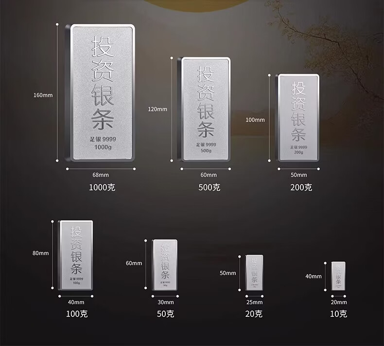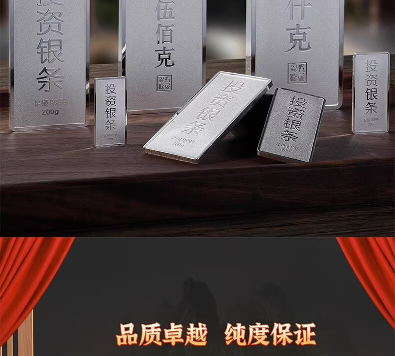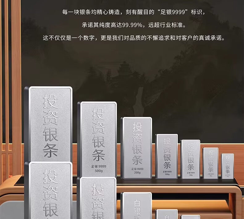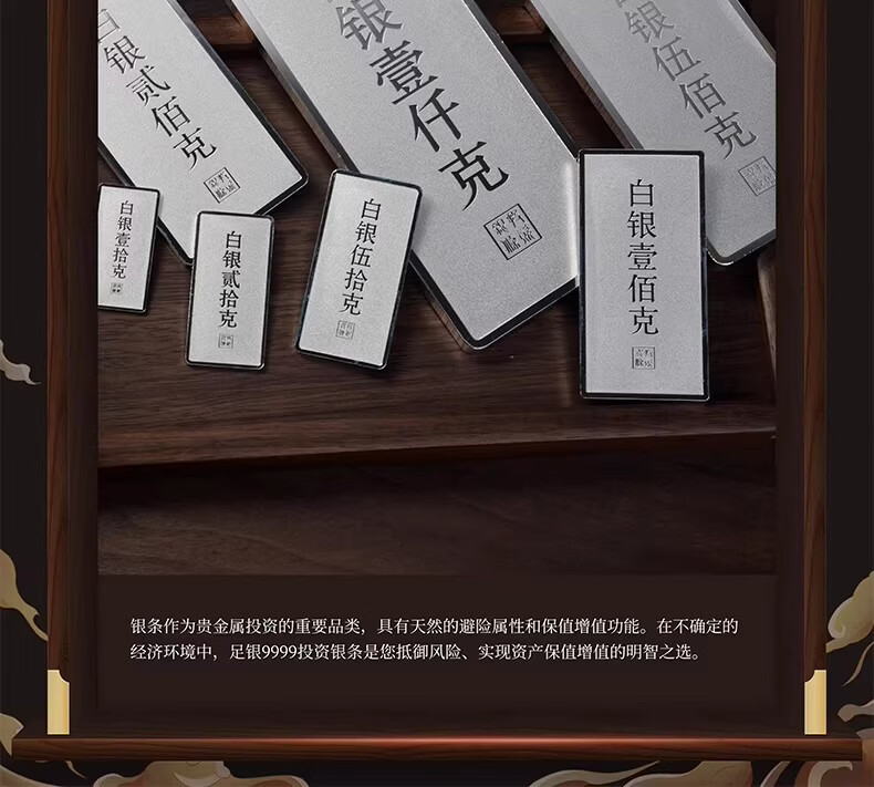 Silver bar pure pure silver 9999 investment silver bar 1000g collection silver brick silver nugget silver plate Chinese silver collection gift investment silver bar 100g