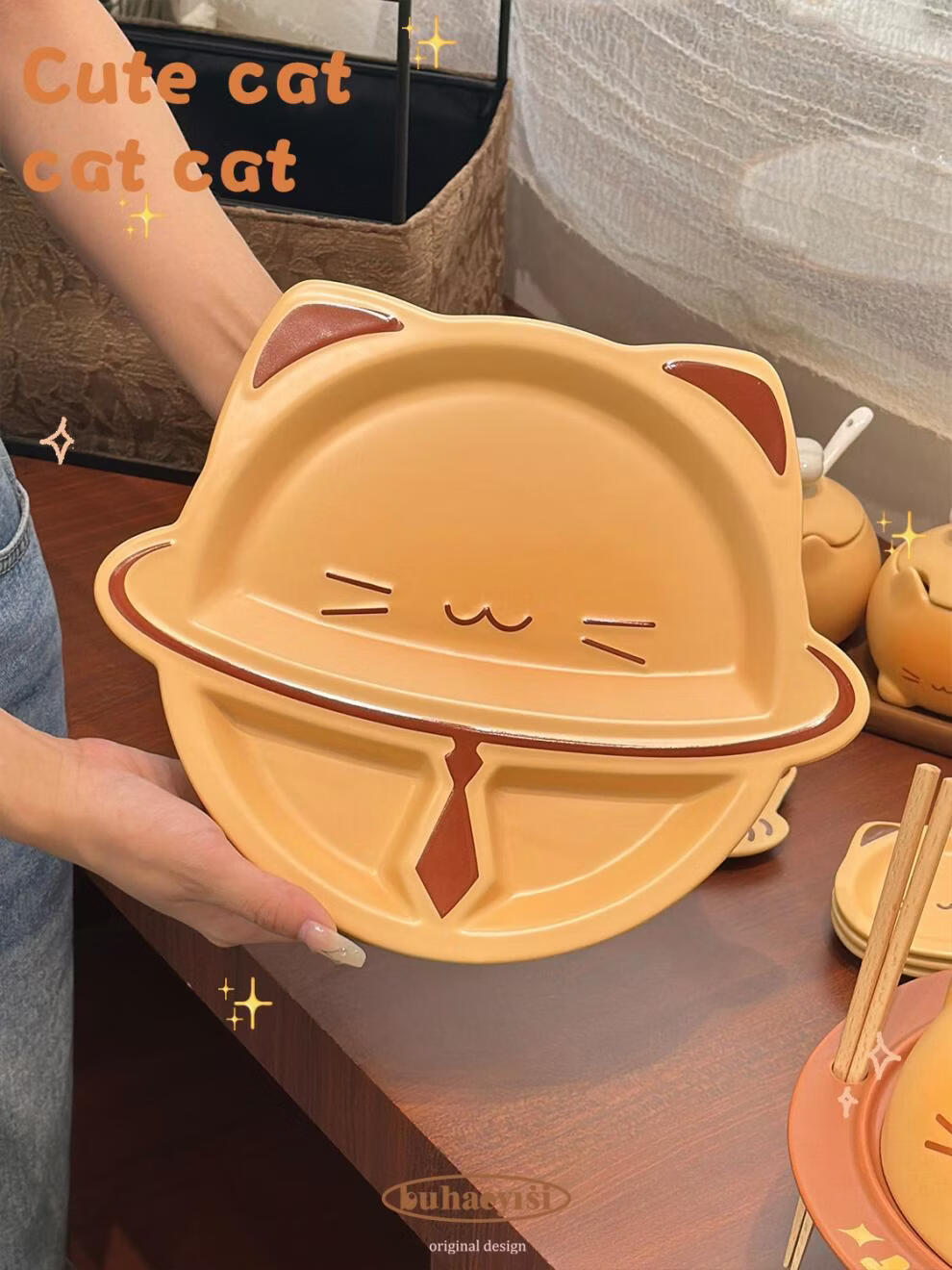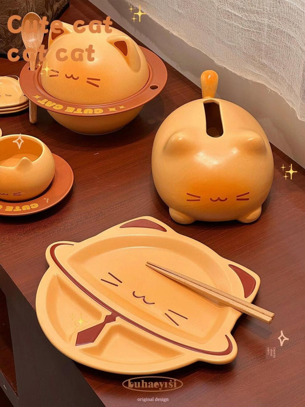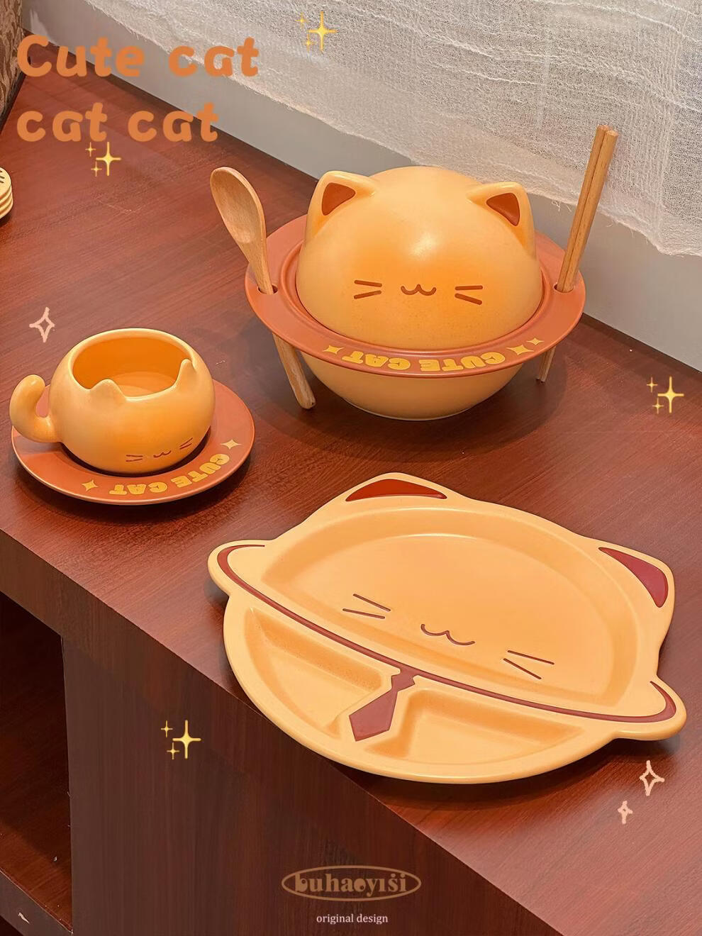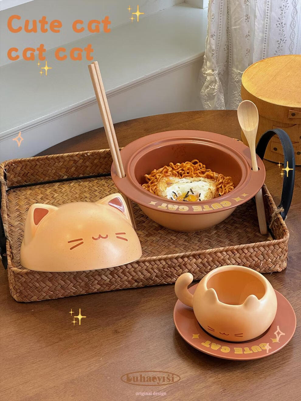 Aoyanlai cute kitten instant noodle bowl coffee cup and saucer ceramic tableware set for student dormitory moving birthday gift cat instant noodle bowl_come with chopsticks and spoon