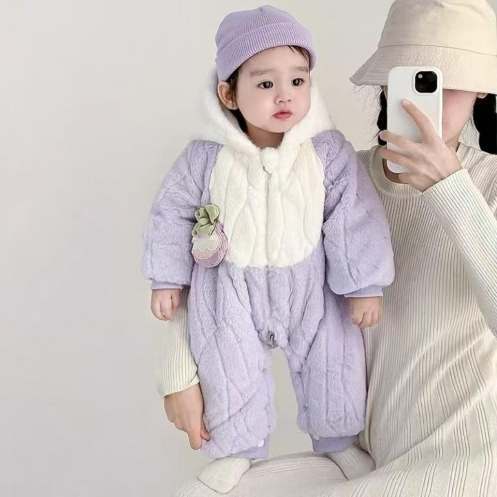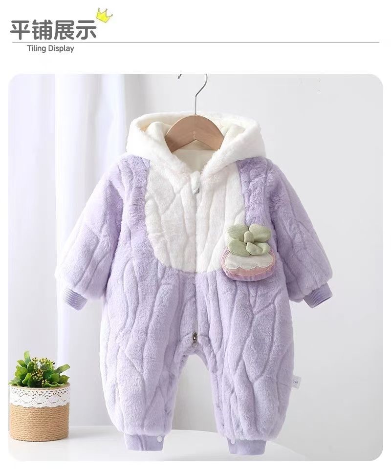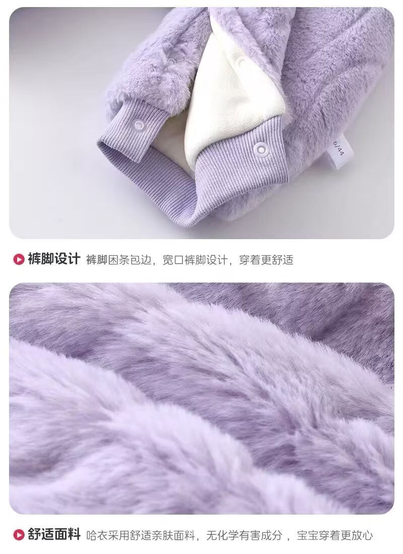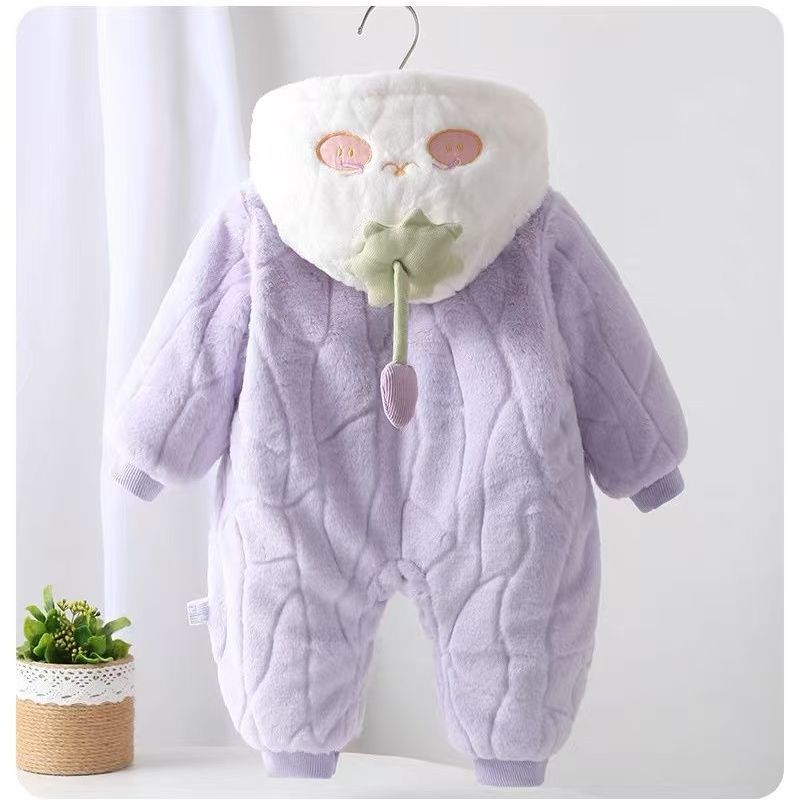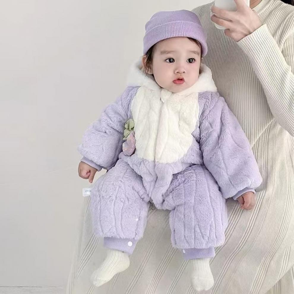 G.duck infant and toddler velvet thickened cotton wool hooded clothes winter warm jumpsuits for men and women, outer wear, light purple, narcissus bamboo hooded and thickened jumpsuit 66cm