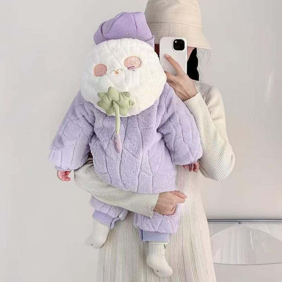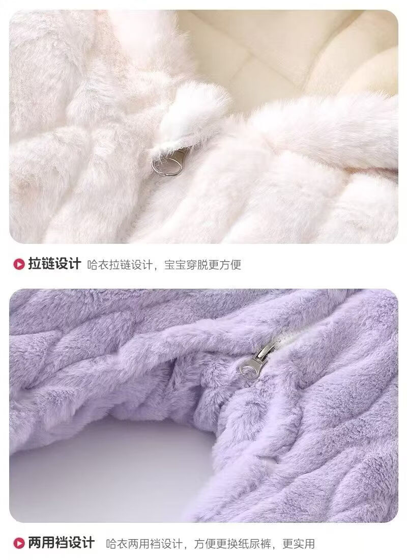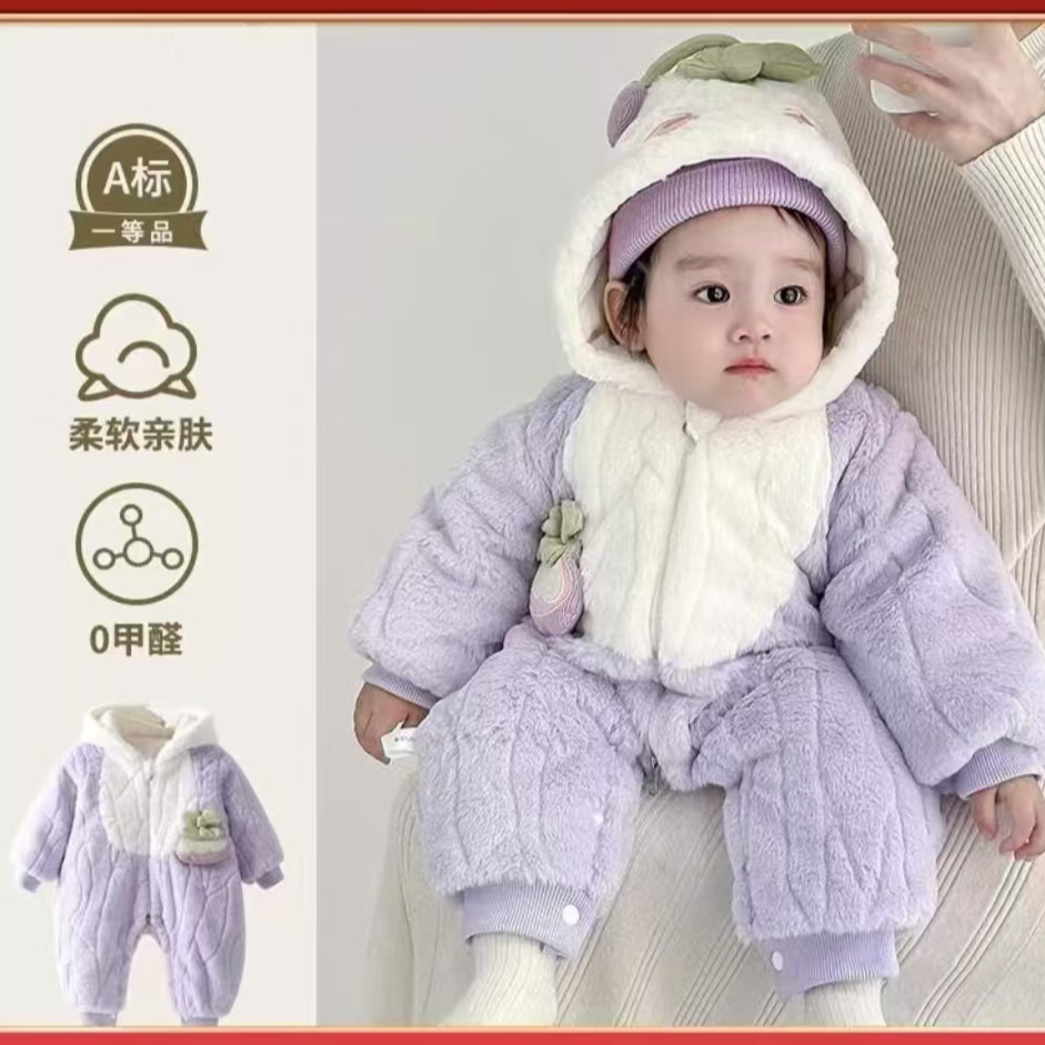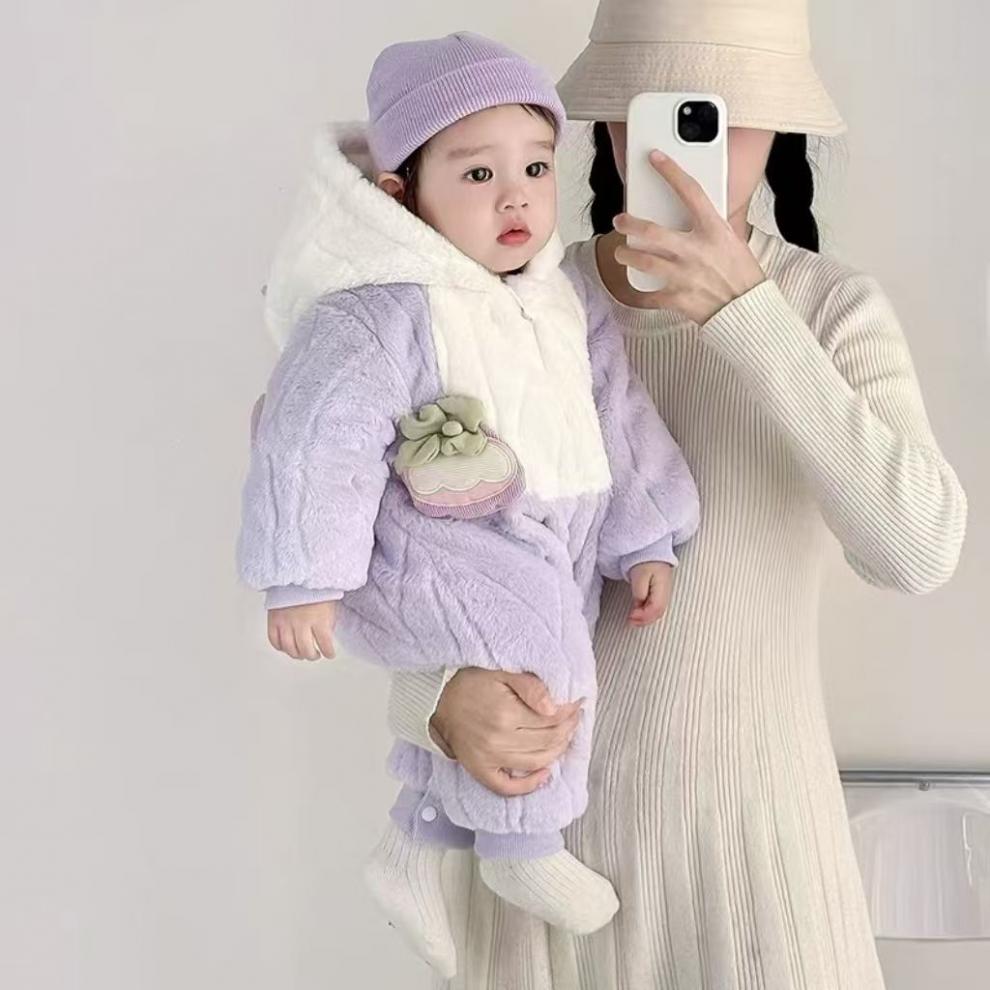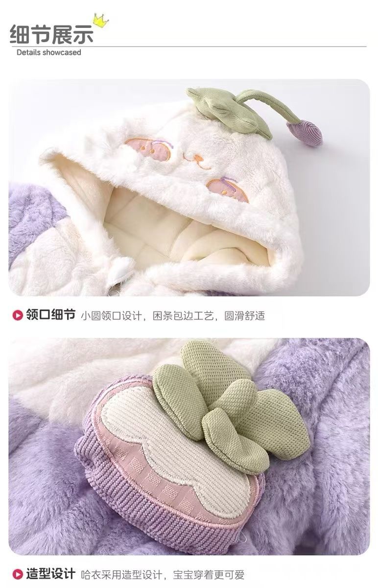 G.duck infant and toddler velvet thickened cotton wool hooded clothes winter warm jumpsuits for men and women, outer wear, light purple, narcissus bamboo hooded and thickened jumpsuit 66cm