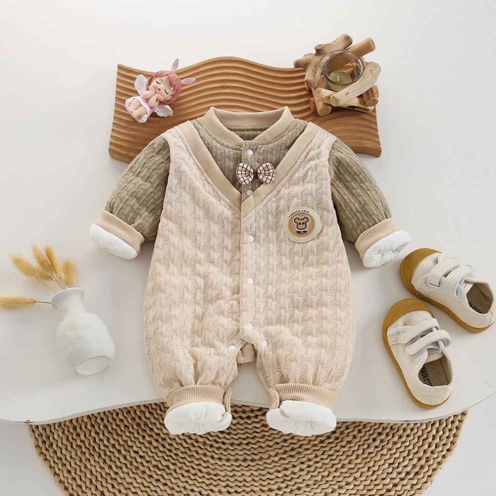 G.duck baby boy autumn and winter clothes, gentleman going out, super cute fake two-piece clothes, winter fashionable baby clothes, green, fashionable gentleman small collar fake two-piece thin cotton 66cm