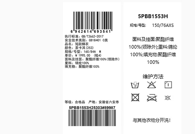Jiangnan Buyi (JNBY) Shopping mall same style 25 winter new cotton coat loose lapel 5PBB1553H 126/gray white L