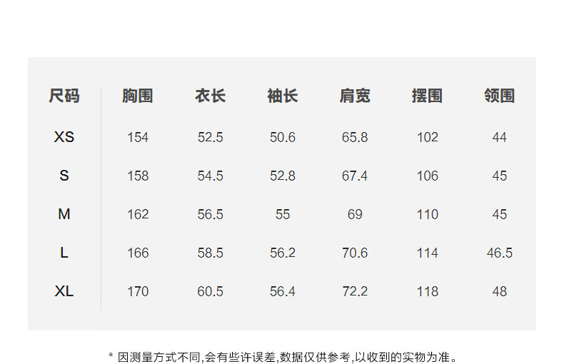 China (cm) 160-165/84-86 165-170 / 88-90 167-172 / 92-96 168-173 / 98-102 170-176 / 106-110