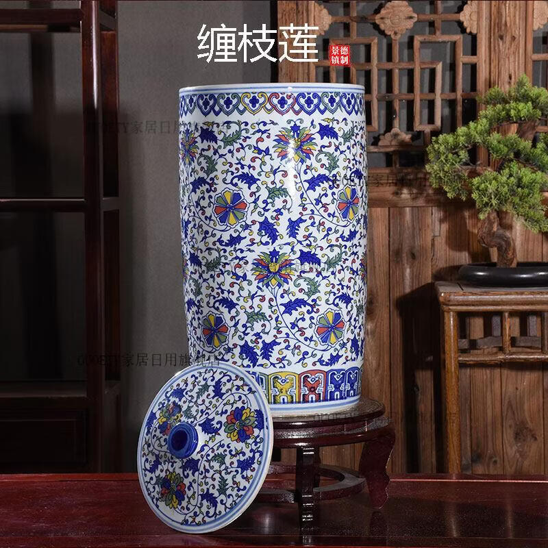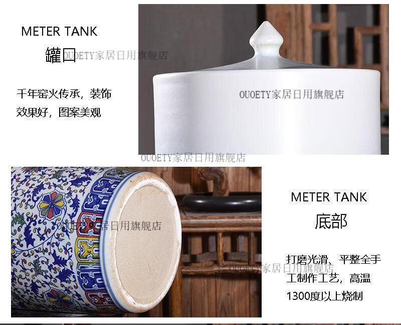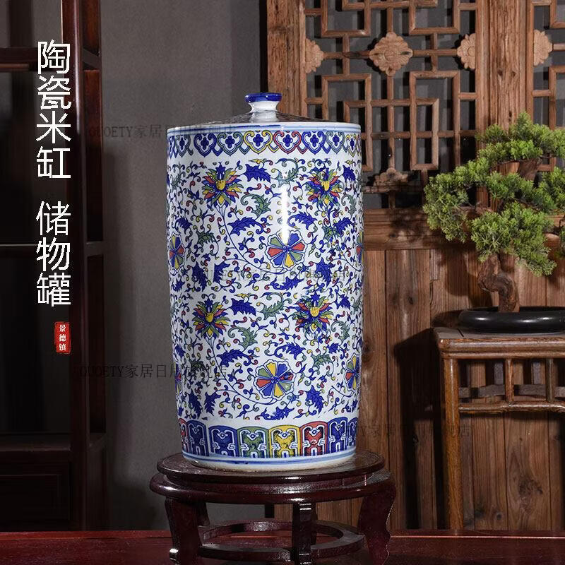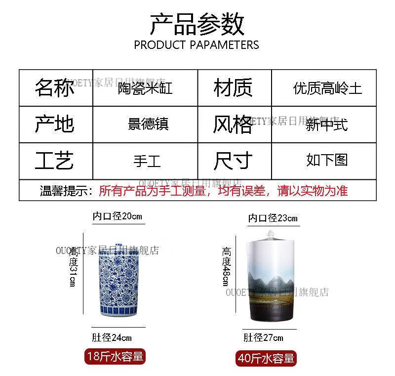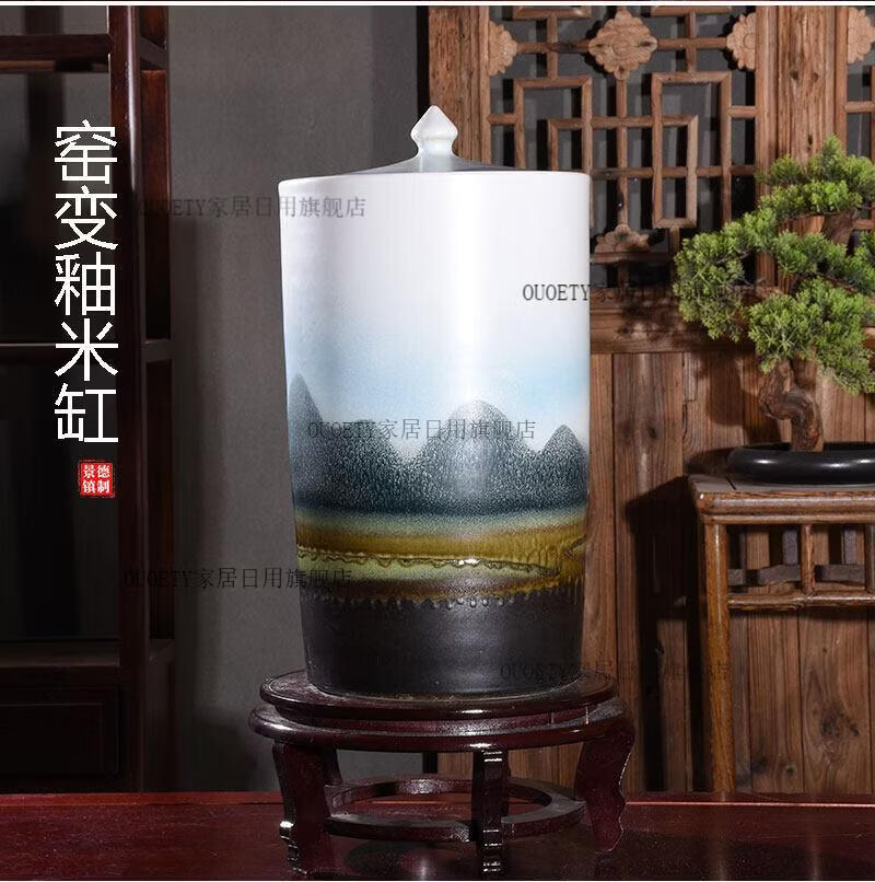 OUOETY ceramic rice cylinder 40 Jin Jin equals 0.5 kg / 80 Jin Jin equals 0.5 kg Rice barrel oil cylinder moisture-proof seal with lid tea cylinder storage tank kiln straight type 40 Jin Jin equals 0.5 kg installed + sealing ring