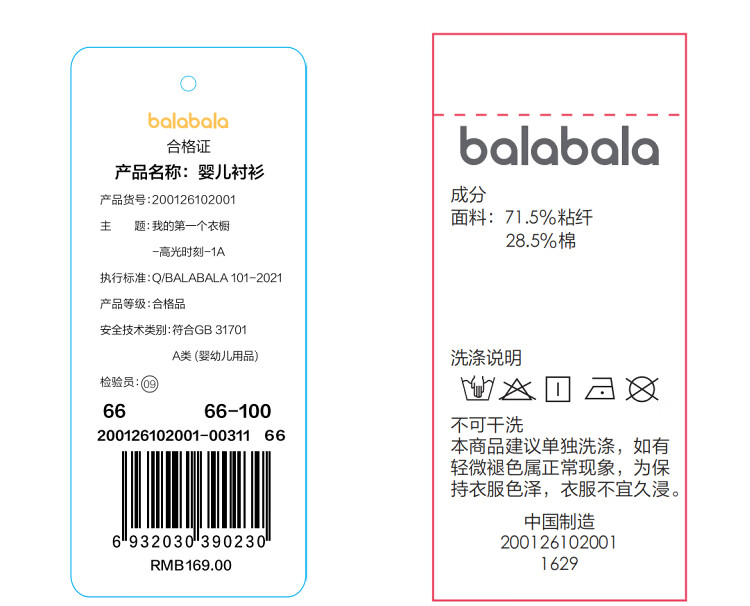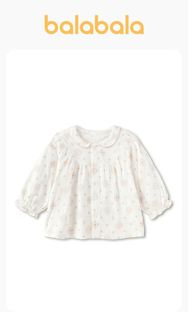 BALABALA Shopping mall same style BALABALA baby shirt baby top girls 2026 new baby doll shirt sweet and cute white tone 00311 73