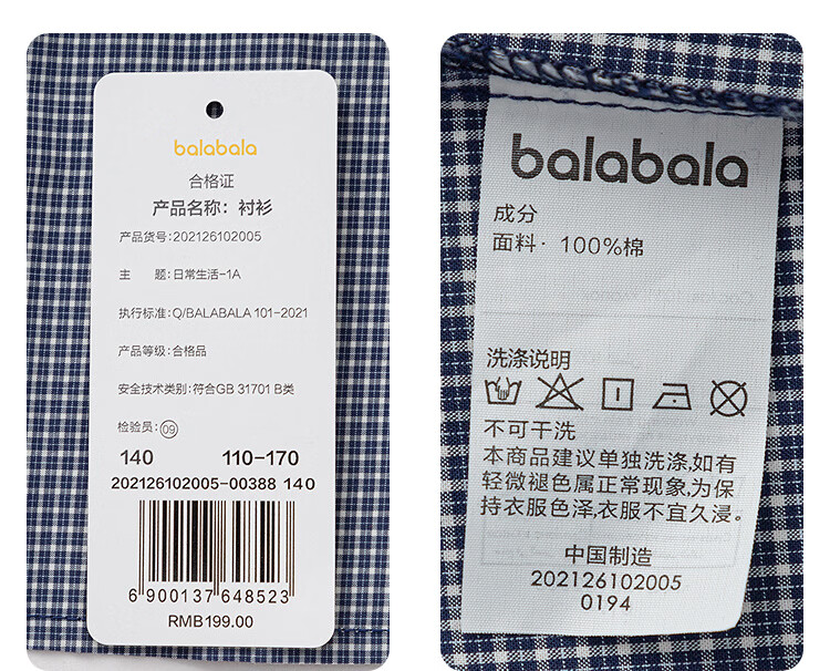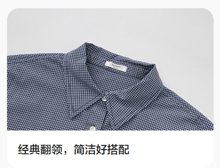 BALABALA Shopping mall same style BALABALA children's clothing children's long-sleeved shirt girls 2026 new spring clothing pure cotton plaid blue tone 00388 165