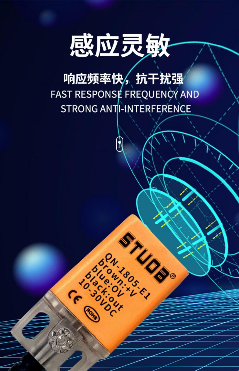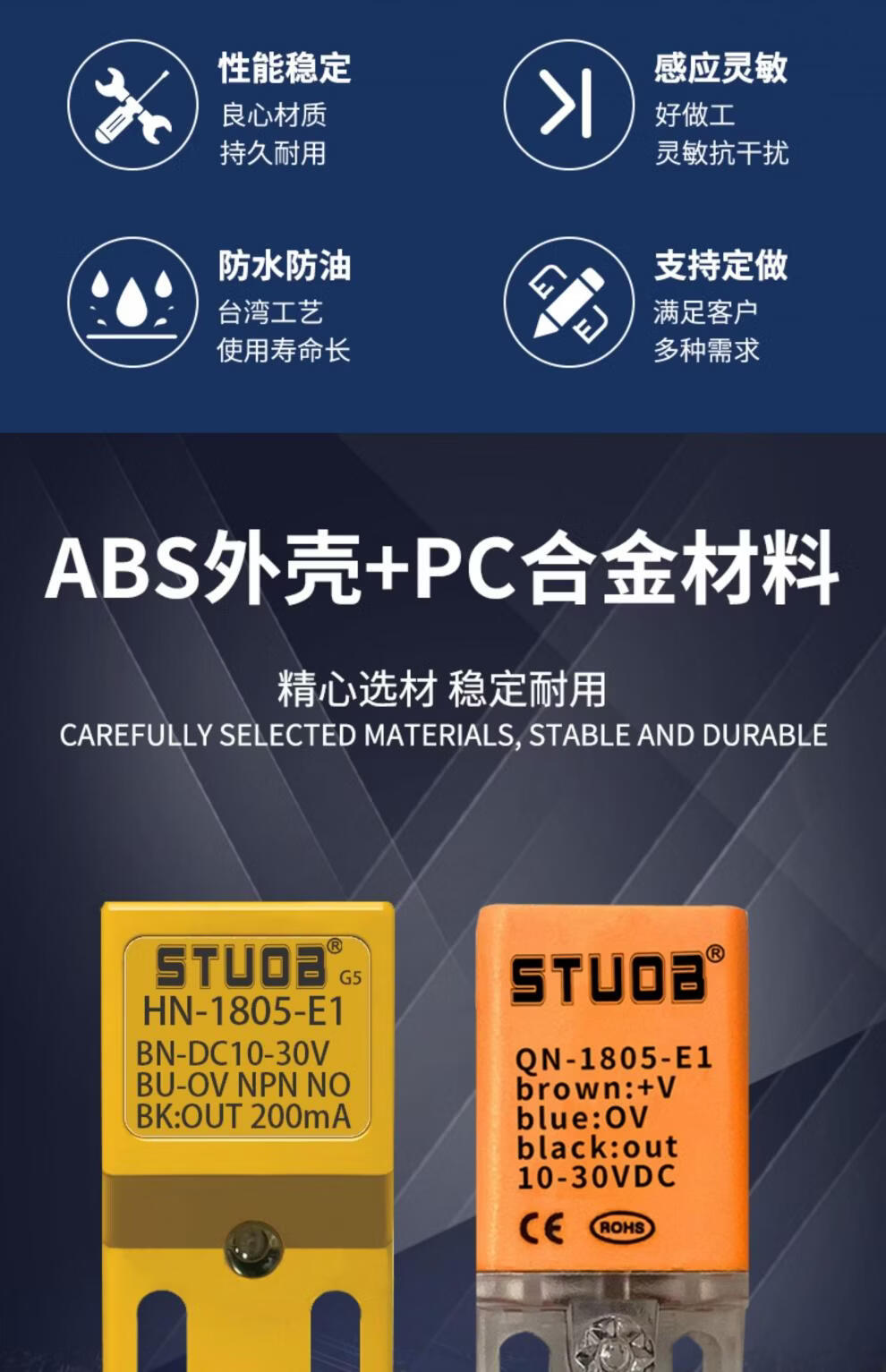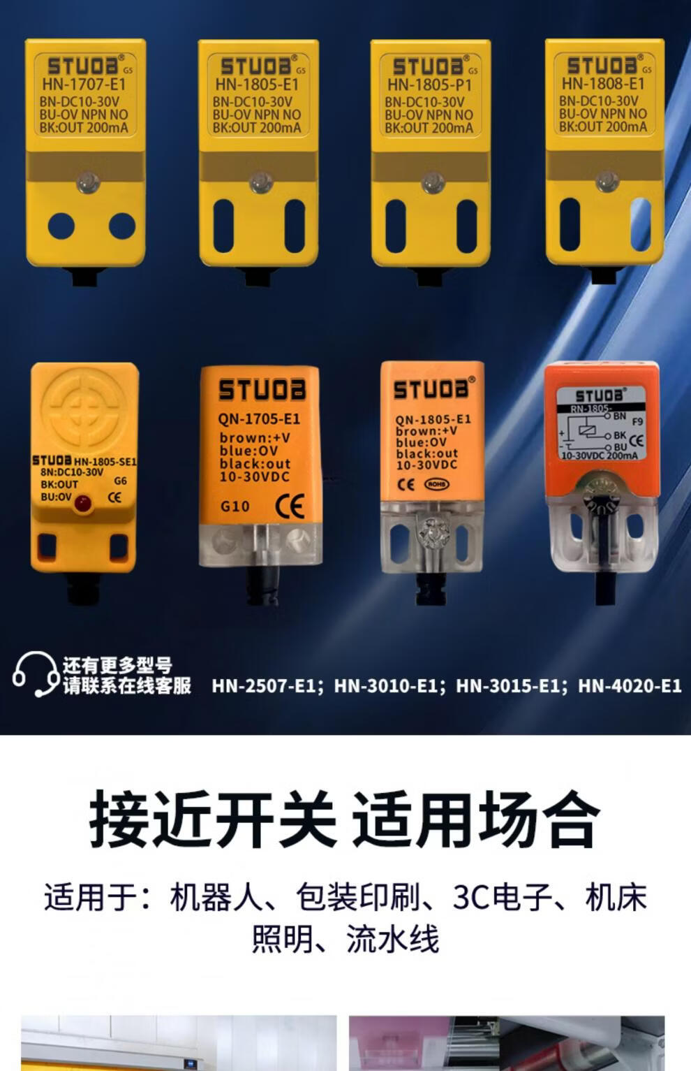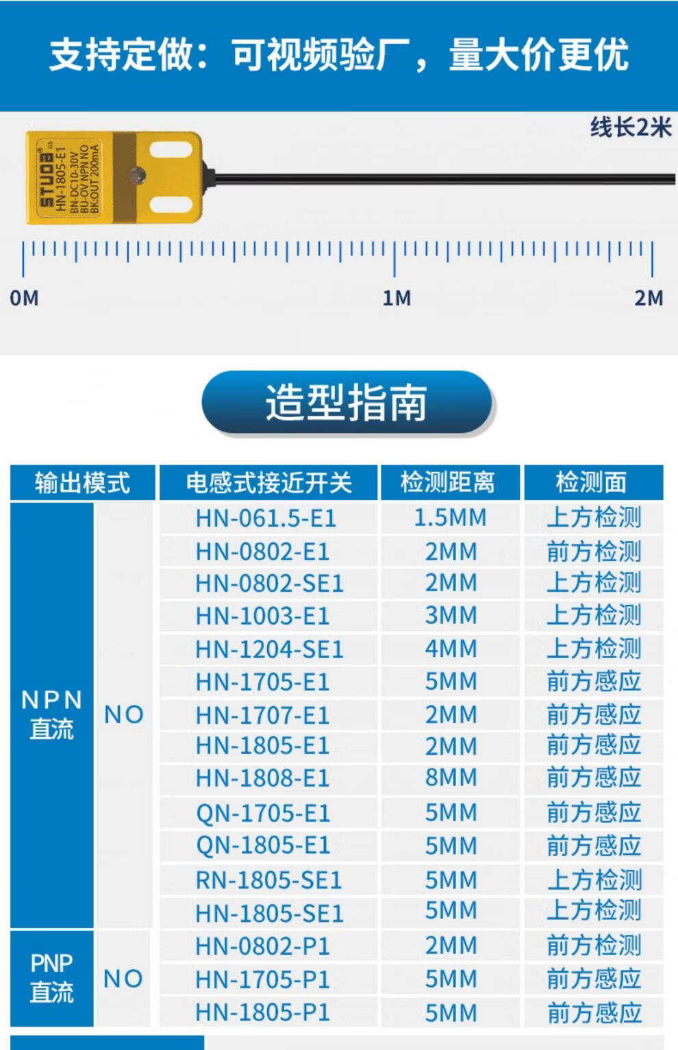 Inductive proximity switch HN-1805-E1 square 24V metal limit sensing DC three-wire NPN normally open HN-0802-E1