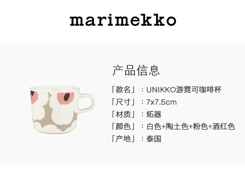 Marimekko38 Goddess Day gift Unikko You Ni can print coffee cup 200ml26 early spring new style white, clay color, pink, burgundy