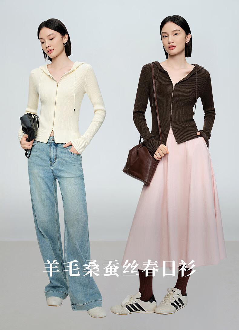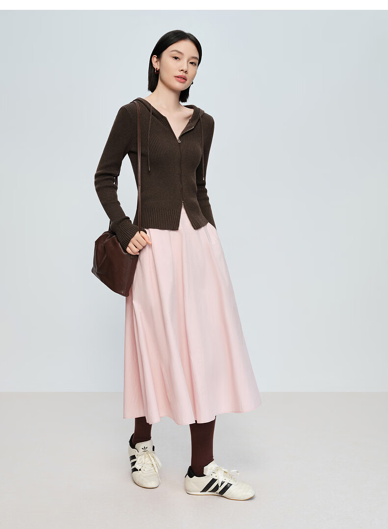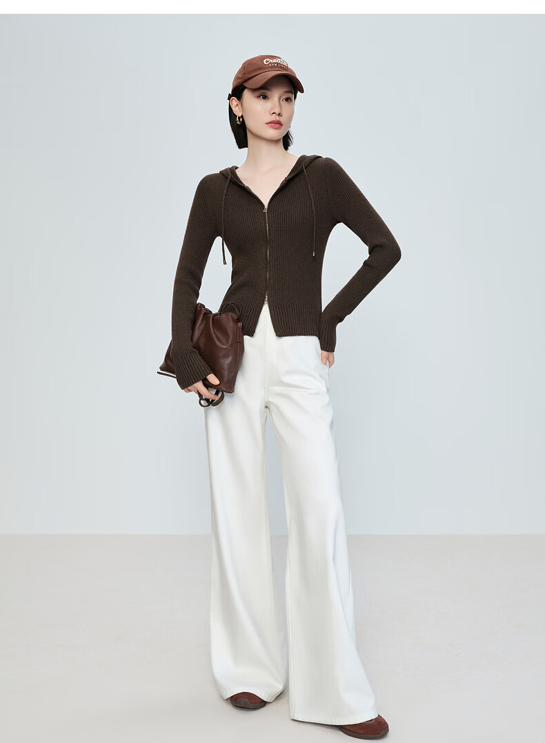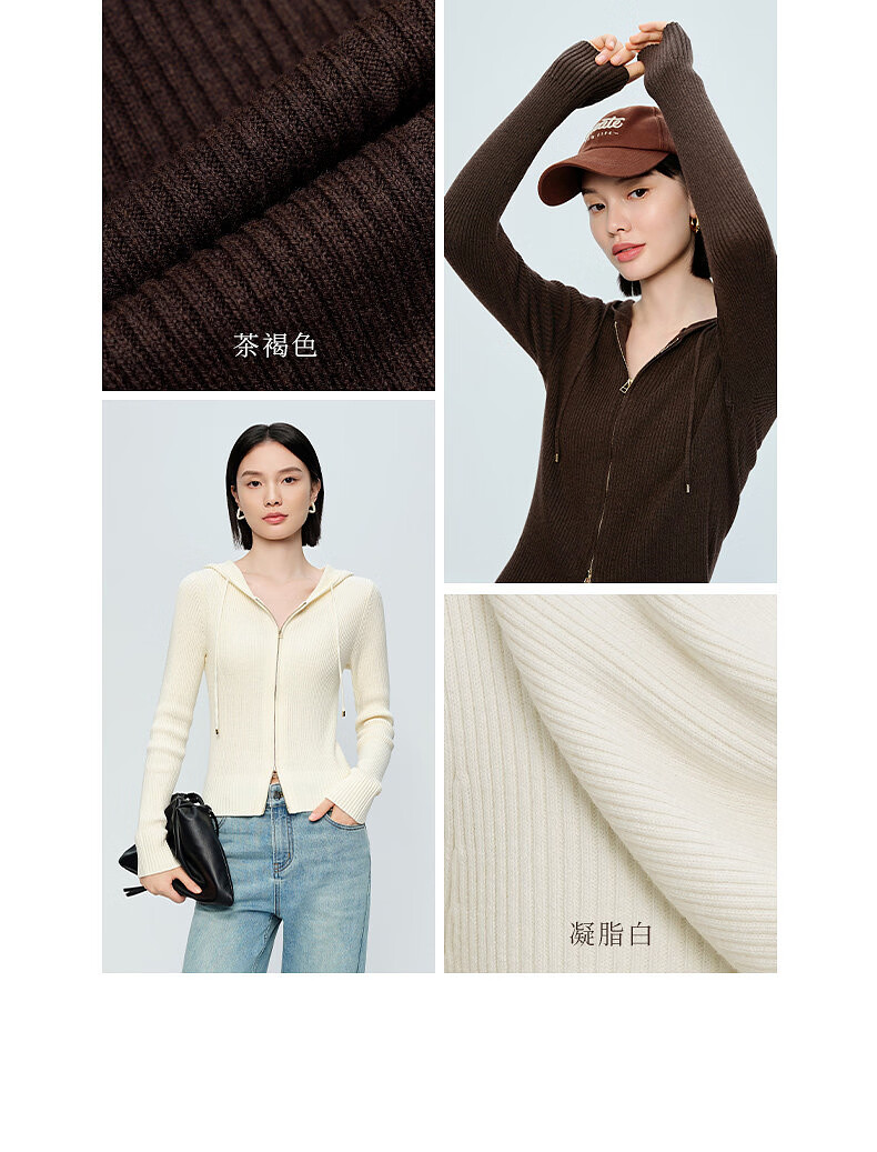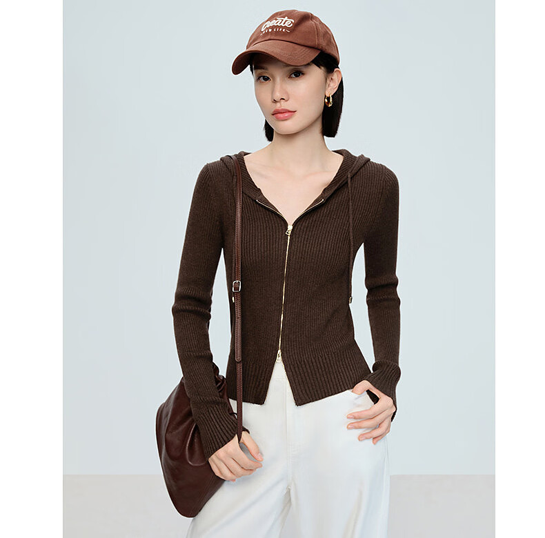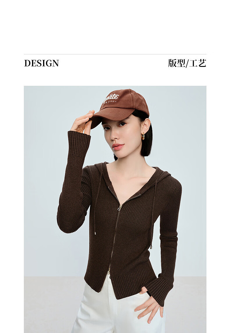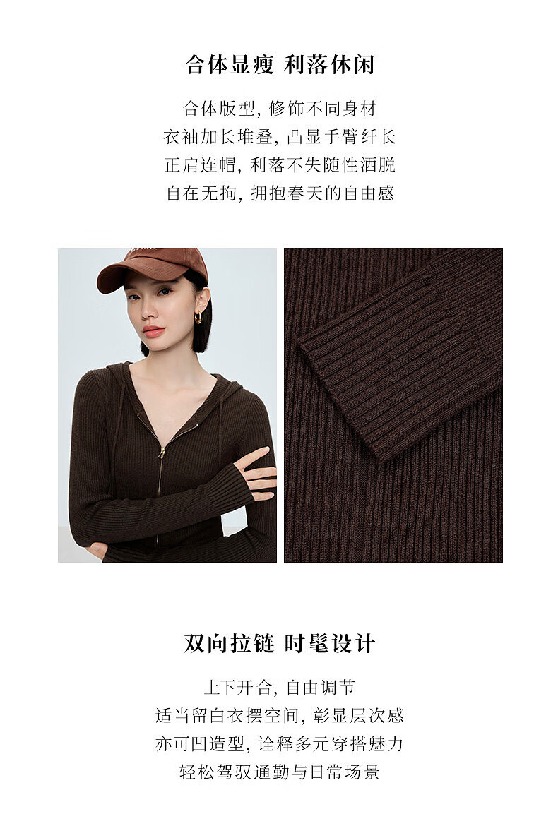 Naivee spring sweater 26 spring new two-way zipper hooded casual sweater Chocolate M