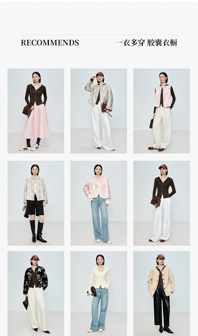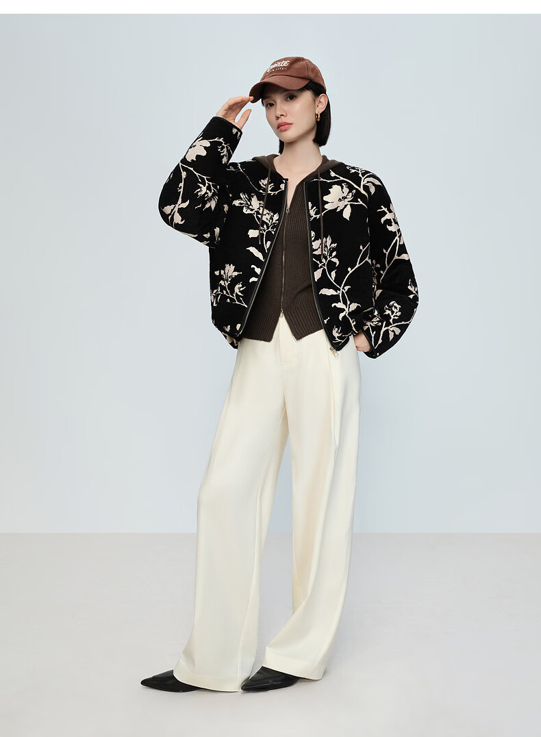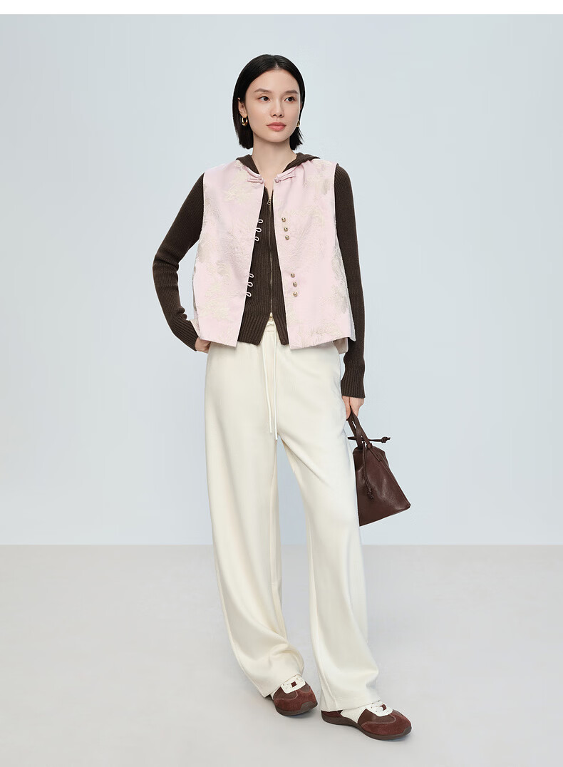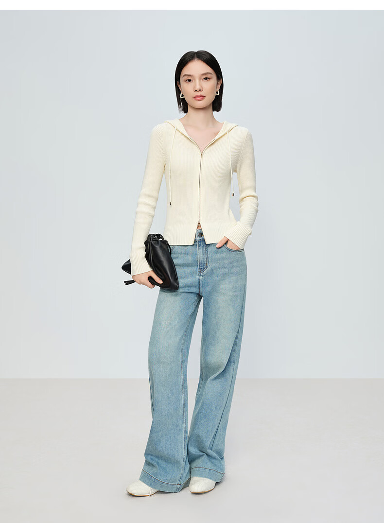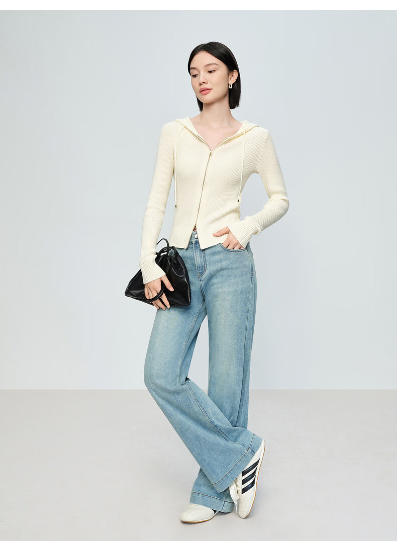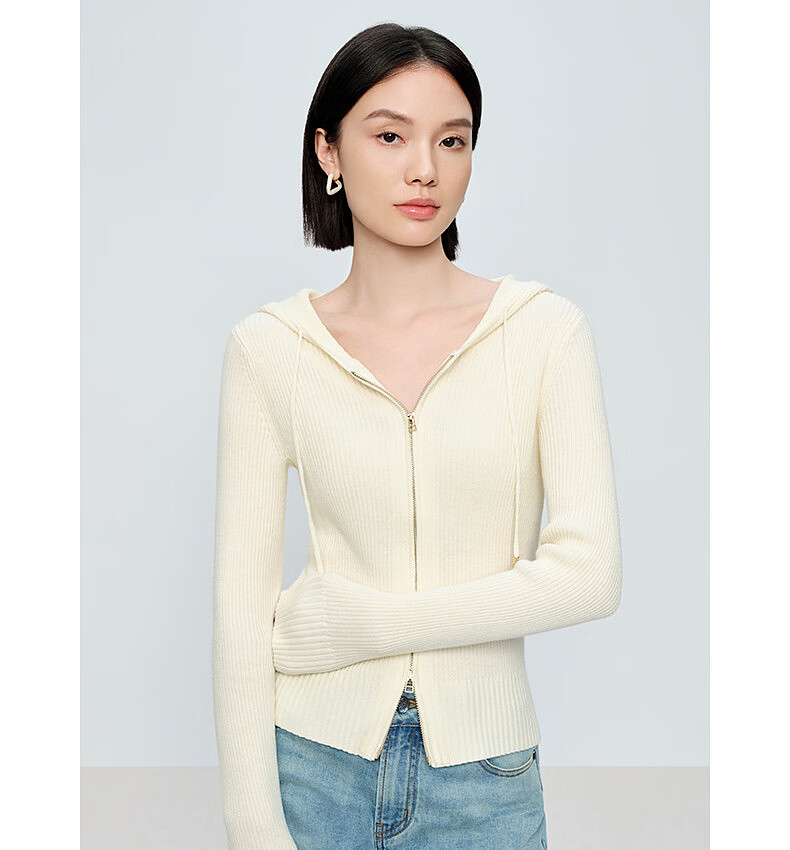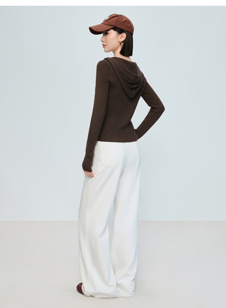 Naivee spring sweater 26 spring new two-way zipper hooded casual sweater Chocolate M