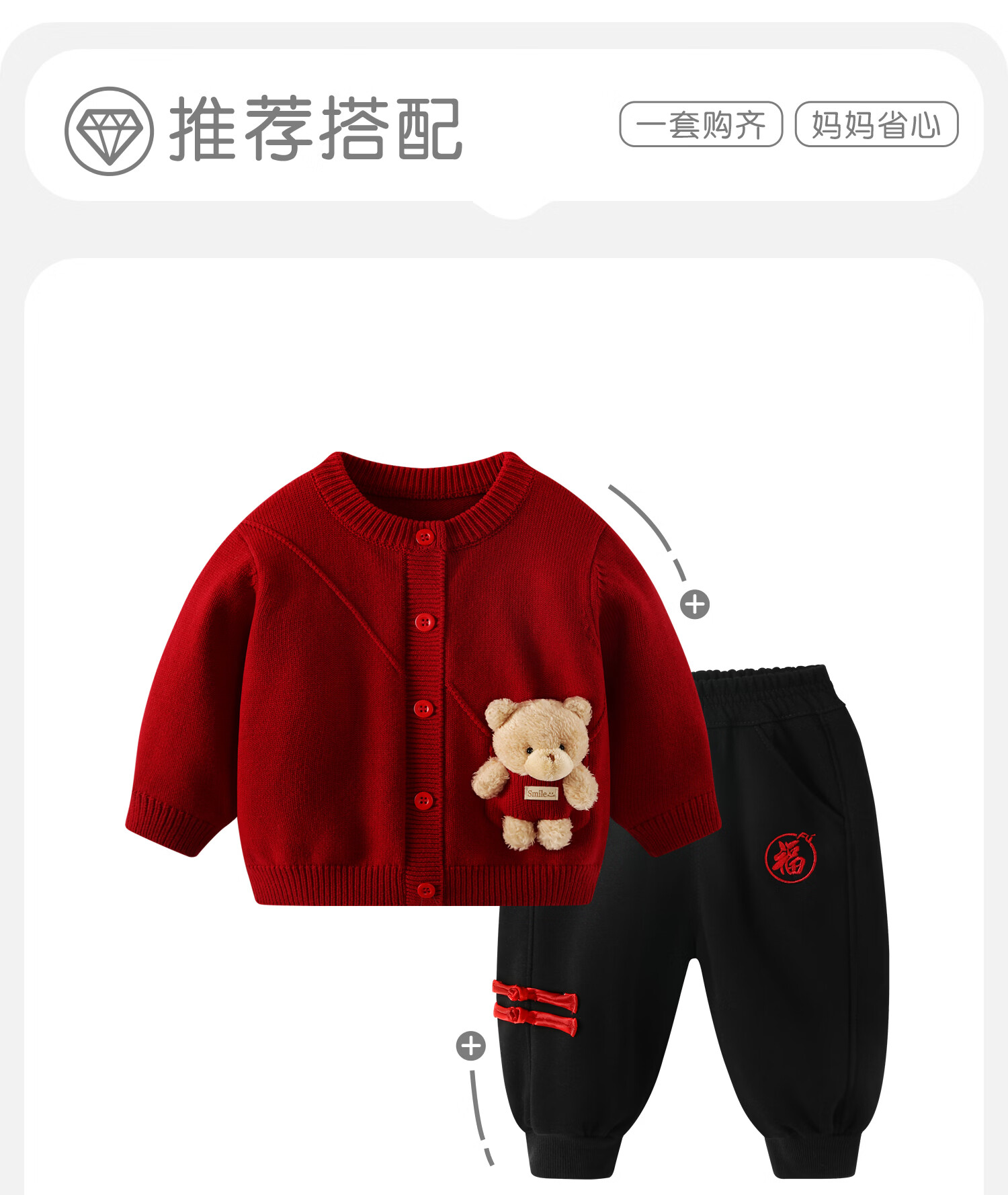 BORBOON B boys' winter sweater baby velvet thickened coat Year of the Horse baby autumn and winter red festive New Year's greetings clothes single piece red 6807 73