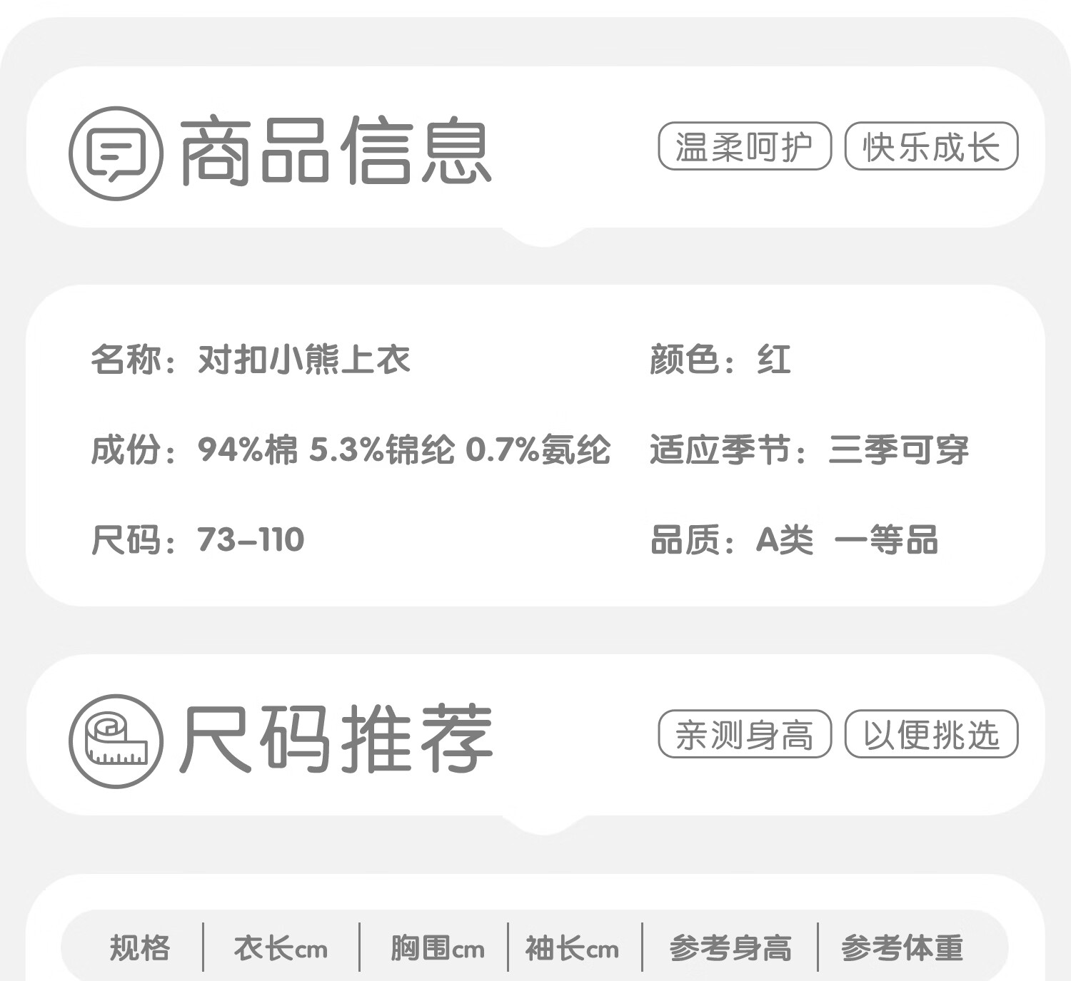 China (cm) 160-165/84-86 165-170 / 88-90 167-172 / 92-96 168-173 / 98-102 170-176 / 106-110