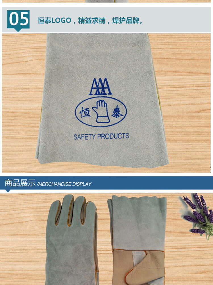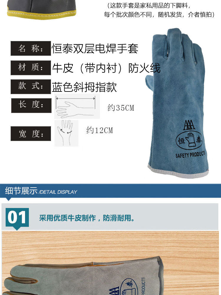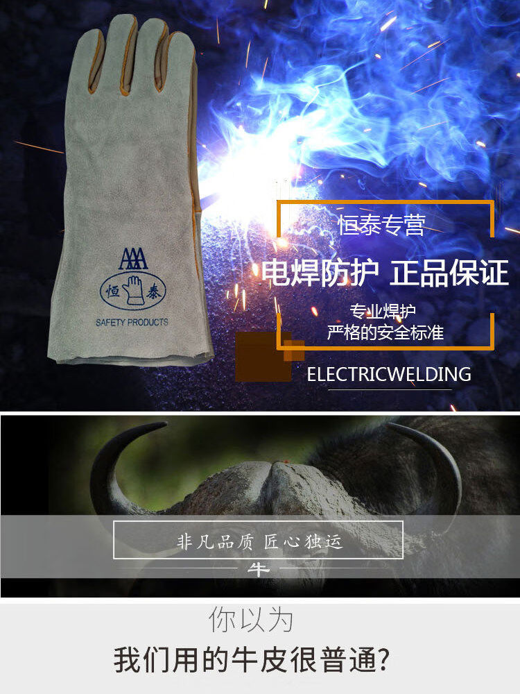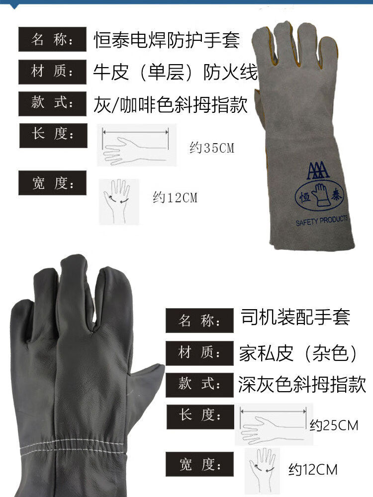 Jianyimao Hengtai welding protective gloves cowhide comfortable anti-scalding labor insurance insulation wear-resistant high temperature fireproof cord extension one size fits all Welding gloves fireproof cord double layer 2 pairs one size fits all