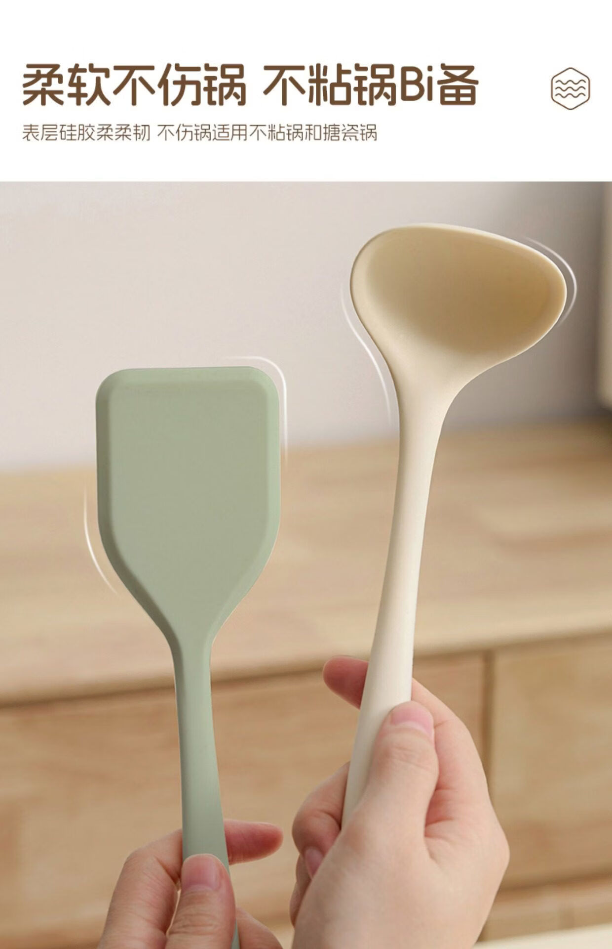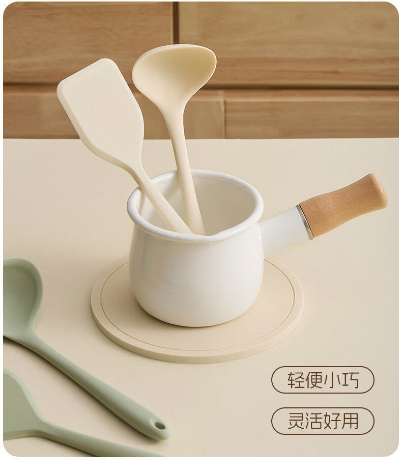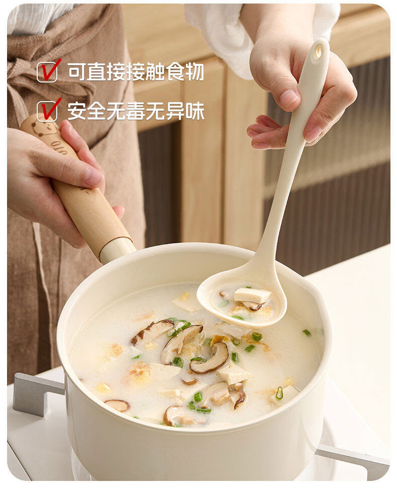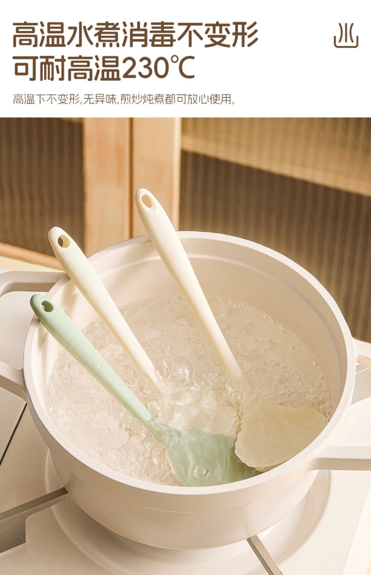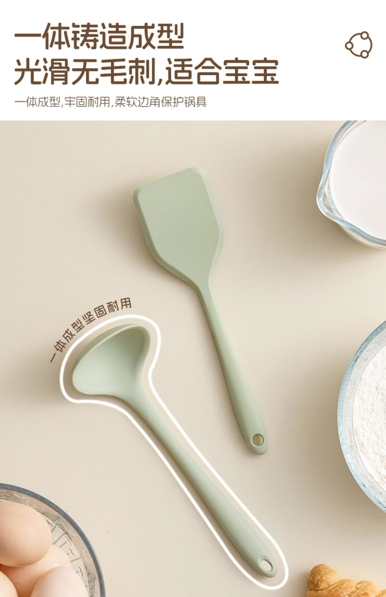 1+1 Japan imported small size silicone spatula and spoon mini spatula baby food supplement tool food grade kitchen spatula + spoon - milky white maternal and infant grade silicone to protect health