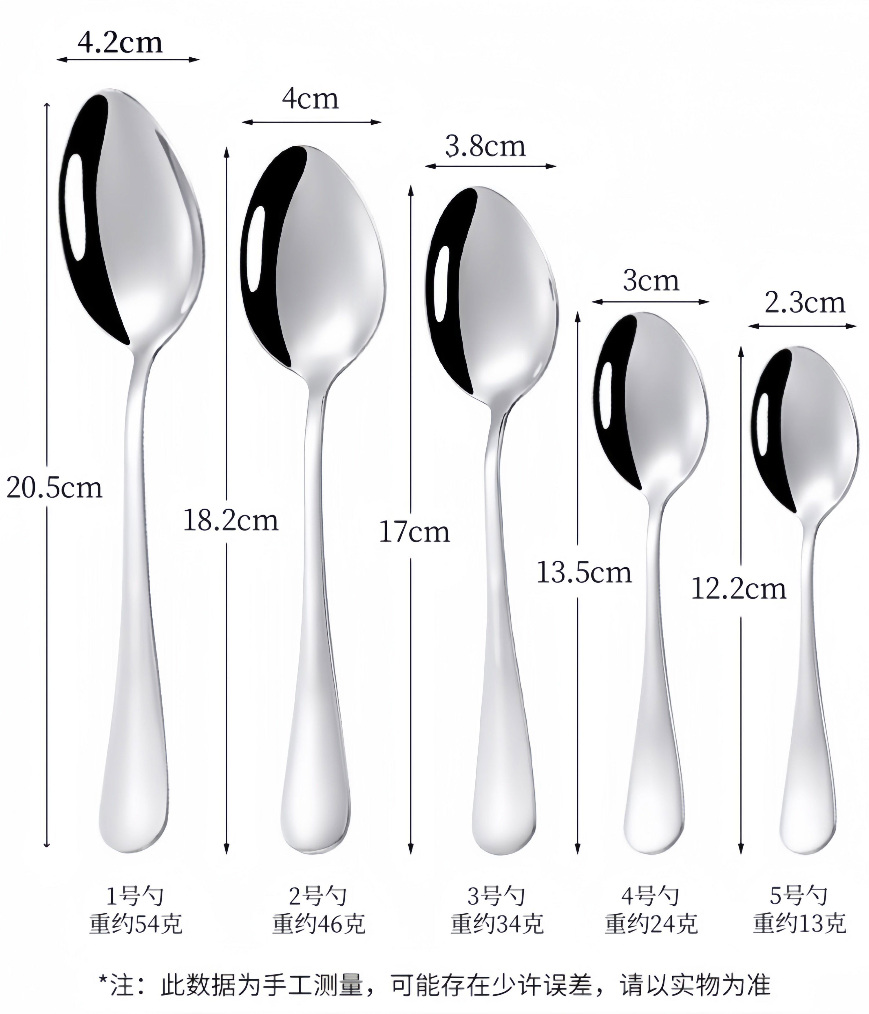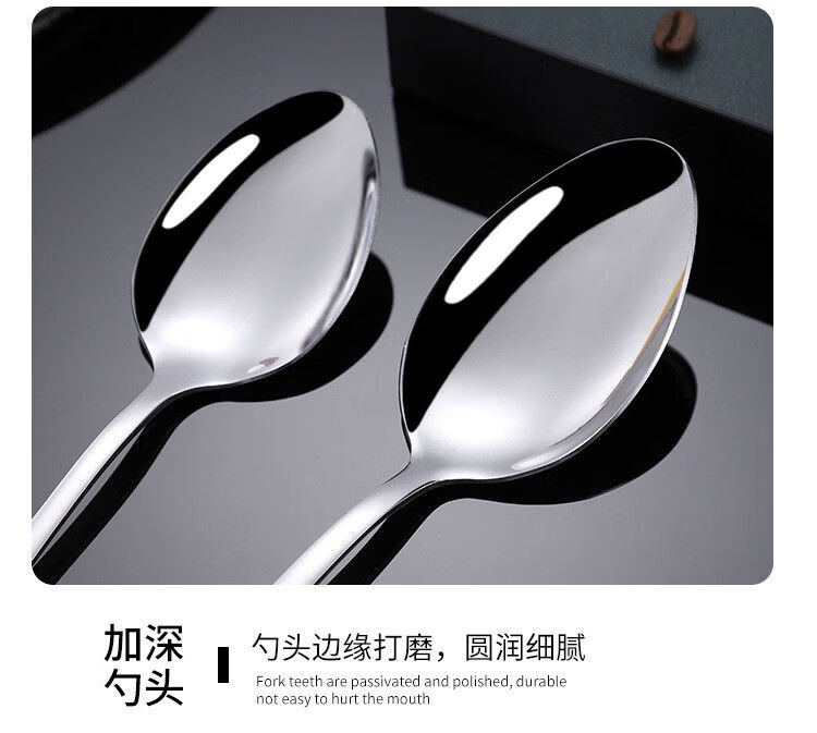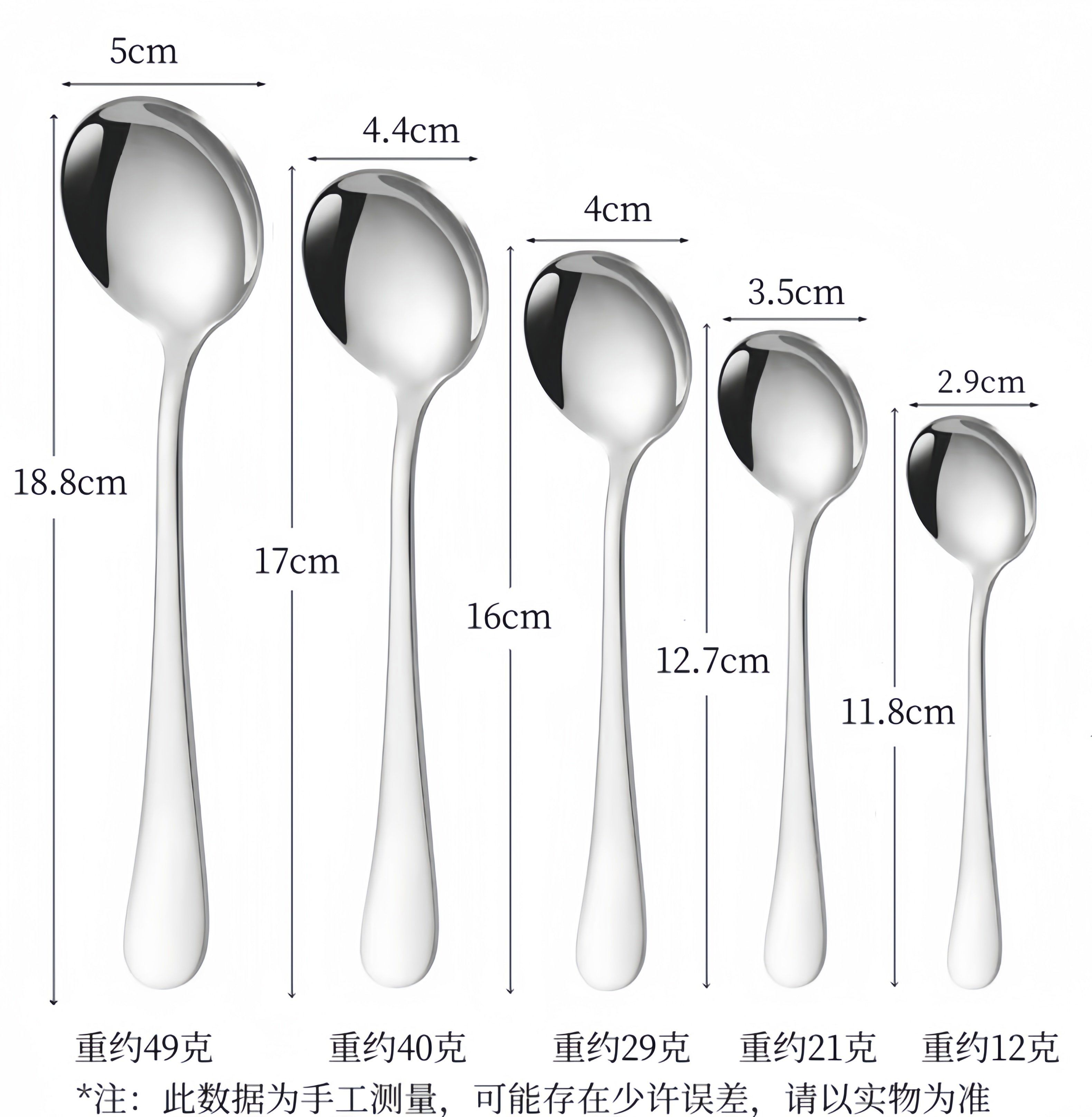 Yusenyi 304 stainless steel spoon, household western food spoon, thickened children's coffee spoon, hotel dining room spoon, No. 1 tip spoon, about 0.5cm long, suitable for main meals, etc.