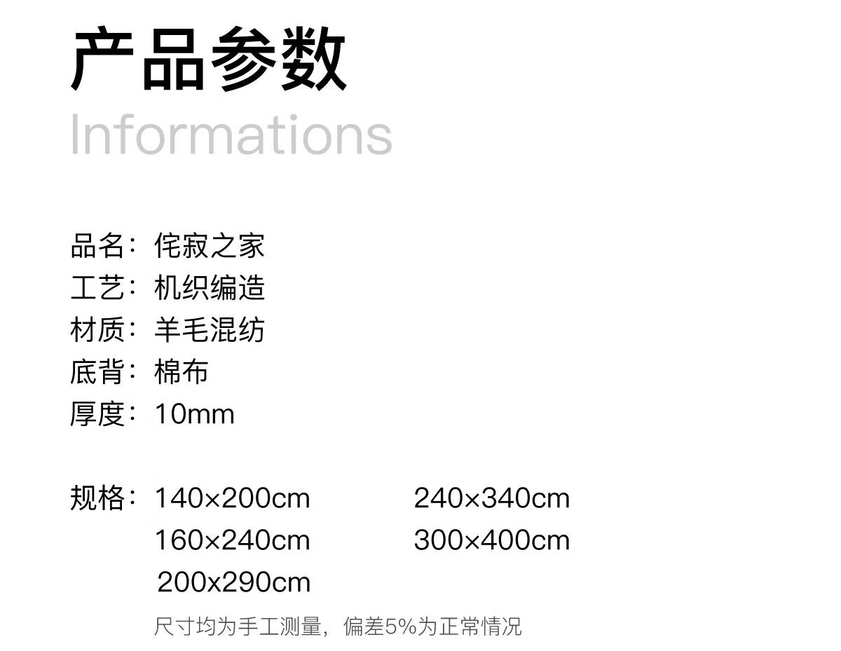 St. Valentine wool blended living room carpet, versatile and high-end, indoor coffee table blanket, bedroom bedside carpet, floor mat, 240cm 340cm (suitable for 3~3.5m sofa)