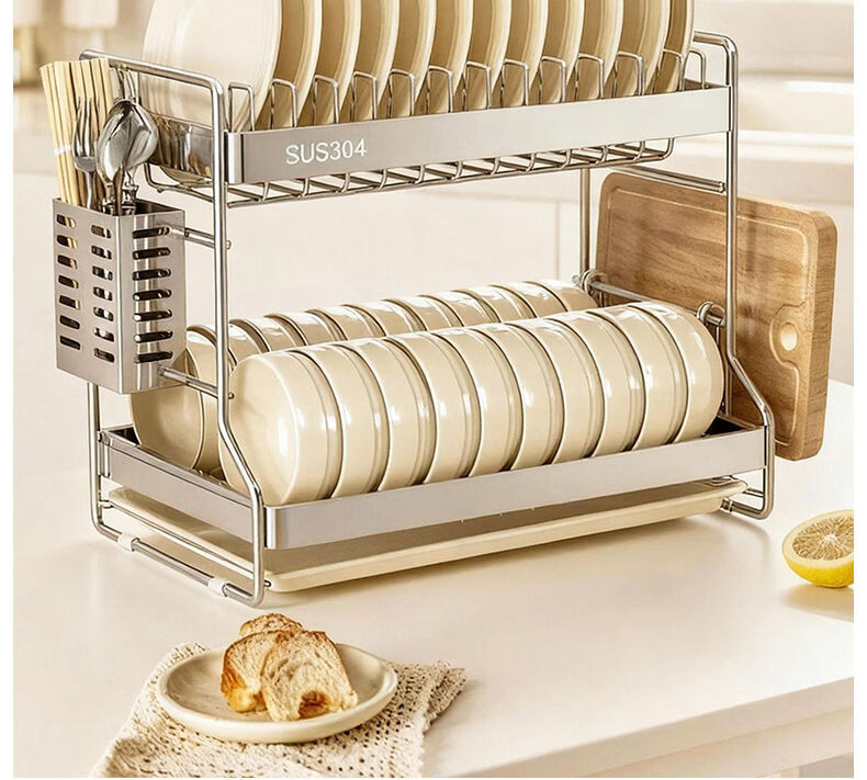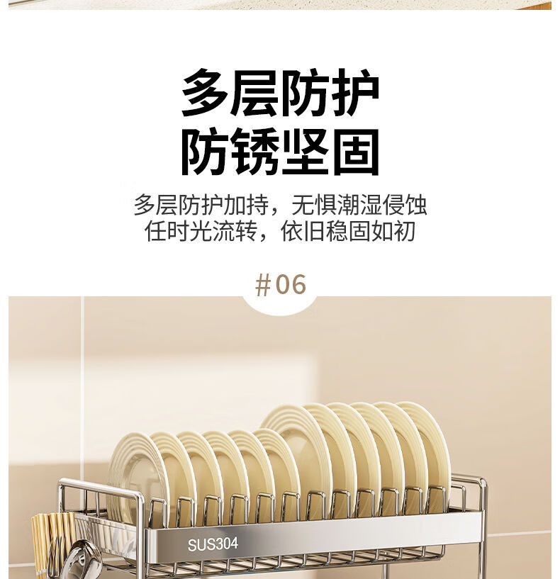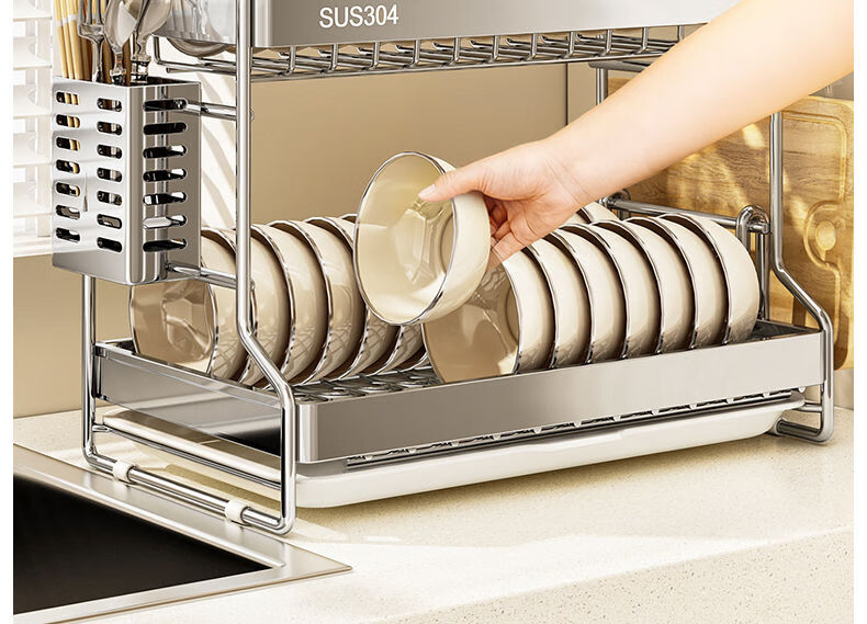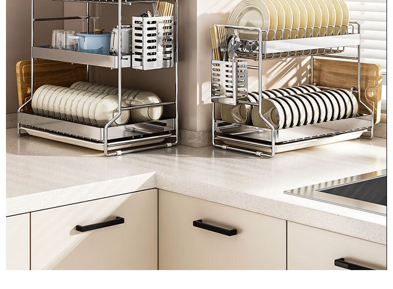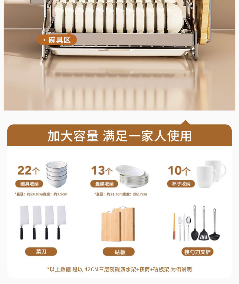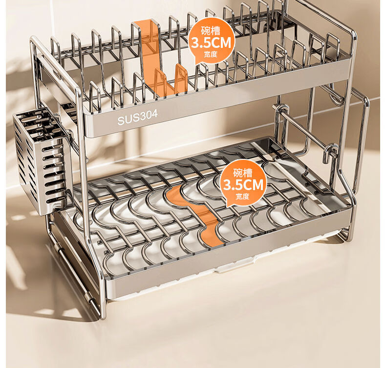 Fantasy dish storage rack drain bowl rack kitchen storage rack bowls and chopsticks drain basket set 304 stainless steel three-layer 42CM drain tray