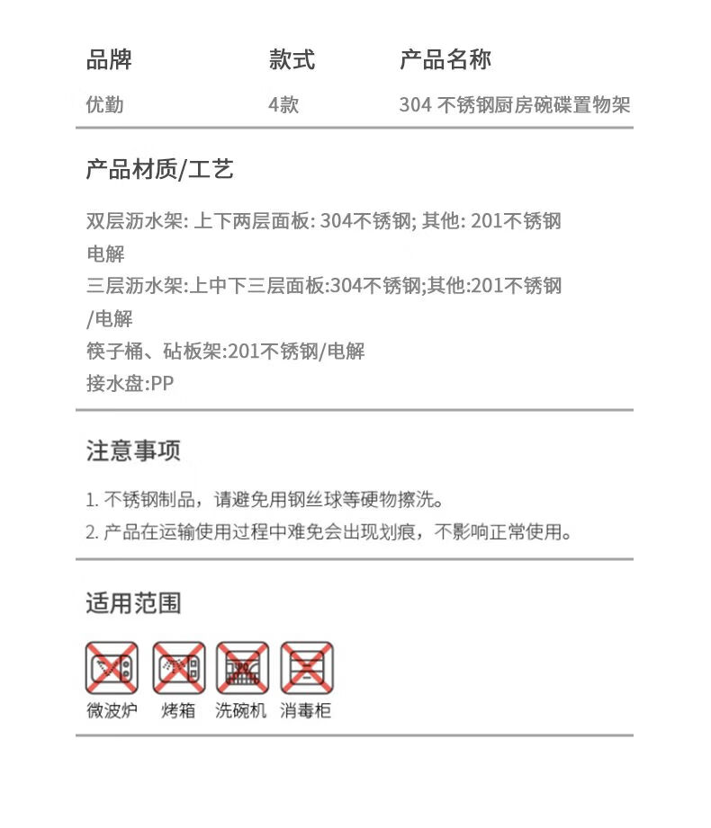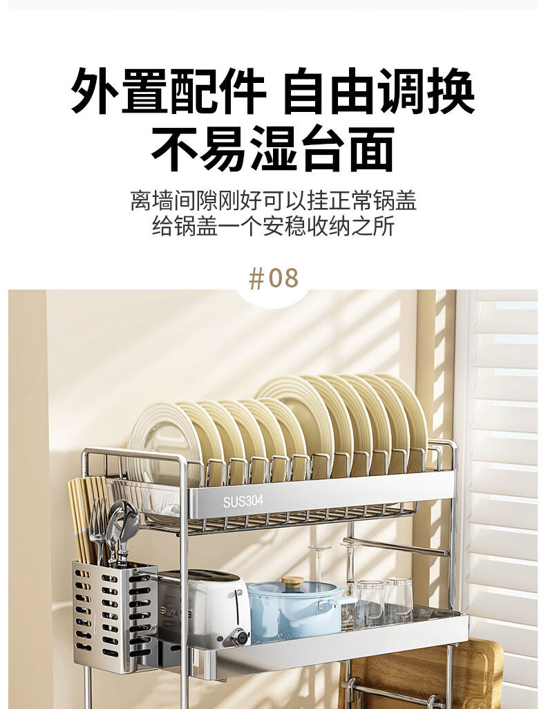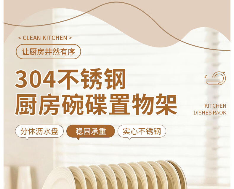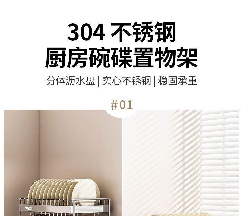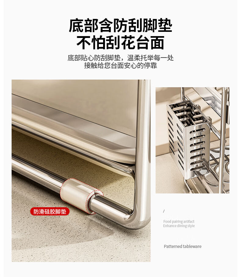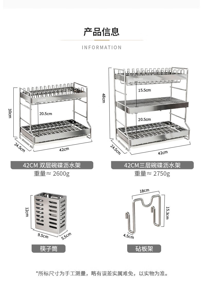 Fantasy dish storage rack drain bowl rack kitchen storage rack bowls and chopsticks drain basket set 304 stainless steel three-layer 42CM drain tray