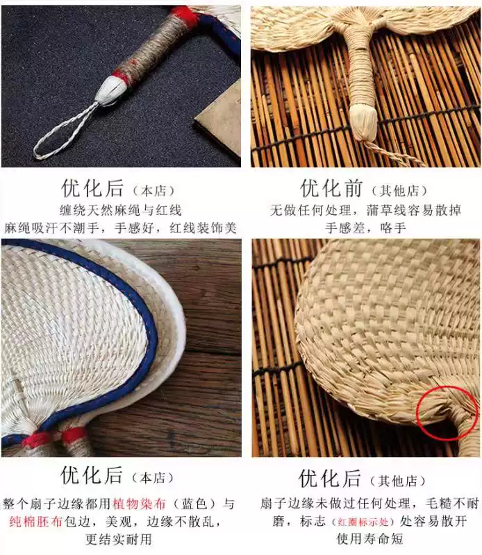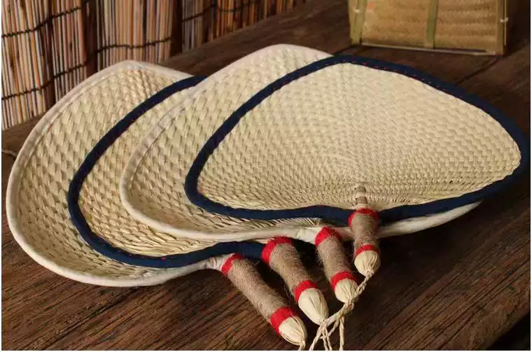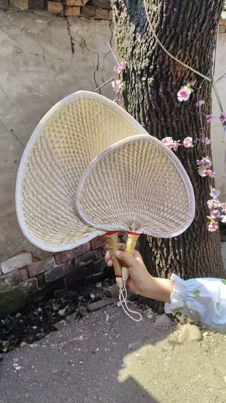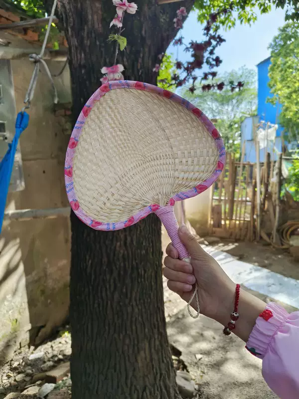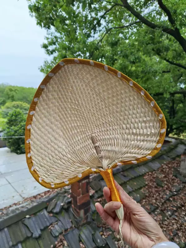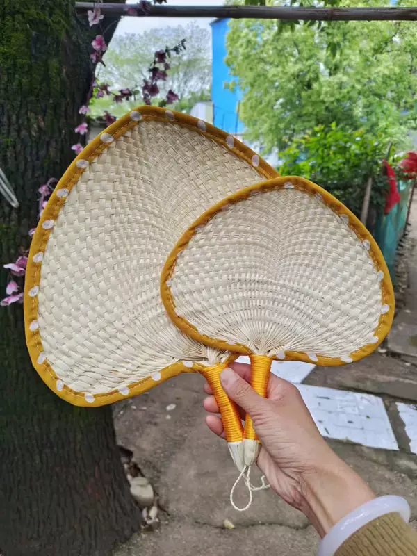 Yusenyi hand-woven baby fan, classical women's rice dumpling leaf fan, folding fan, portable mosquito repellent, Chinese style, household, ancient style, summer, wrapped edge fan, red handle, diameter 2830 cm, daily fan