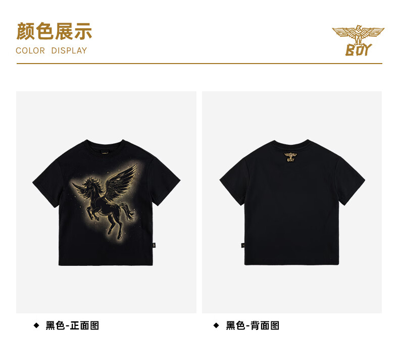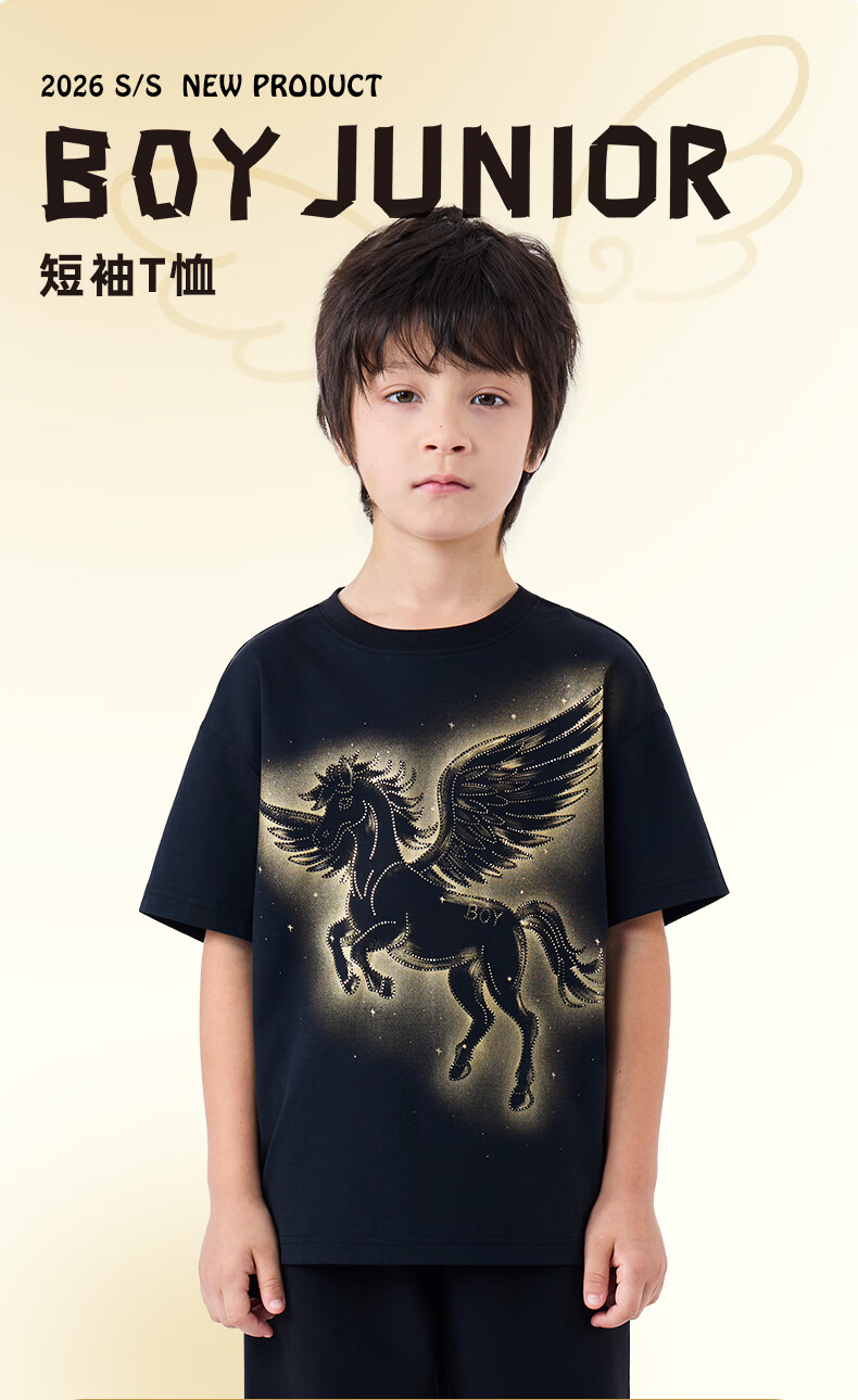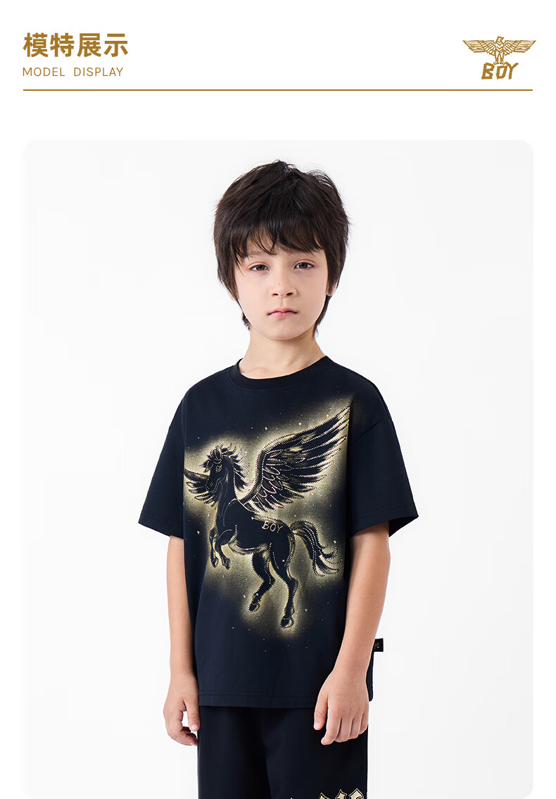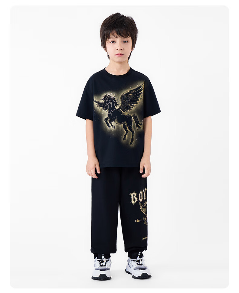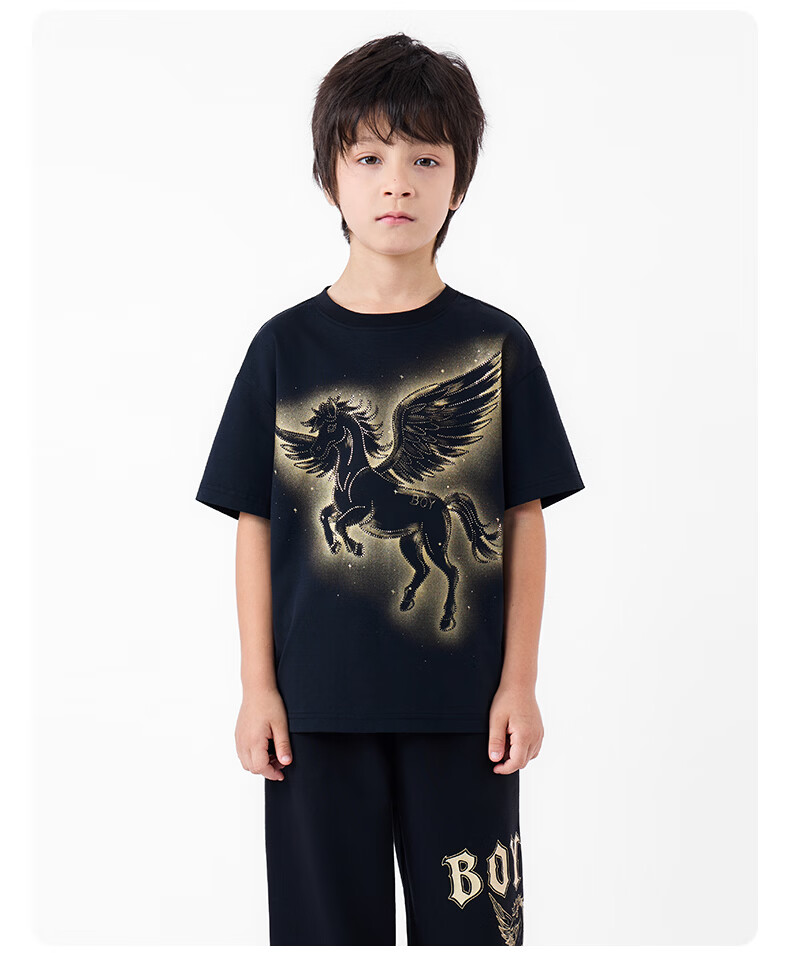 BOY JUNIOR boys' new spring and summer loose short-sleeved T-shirt black 130