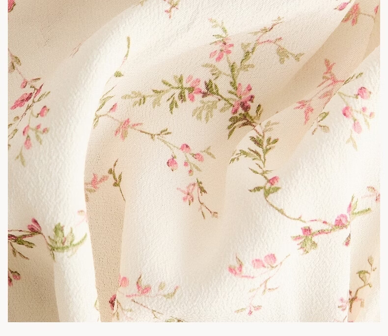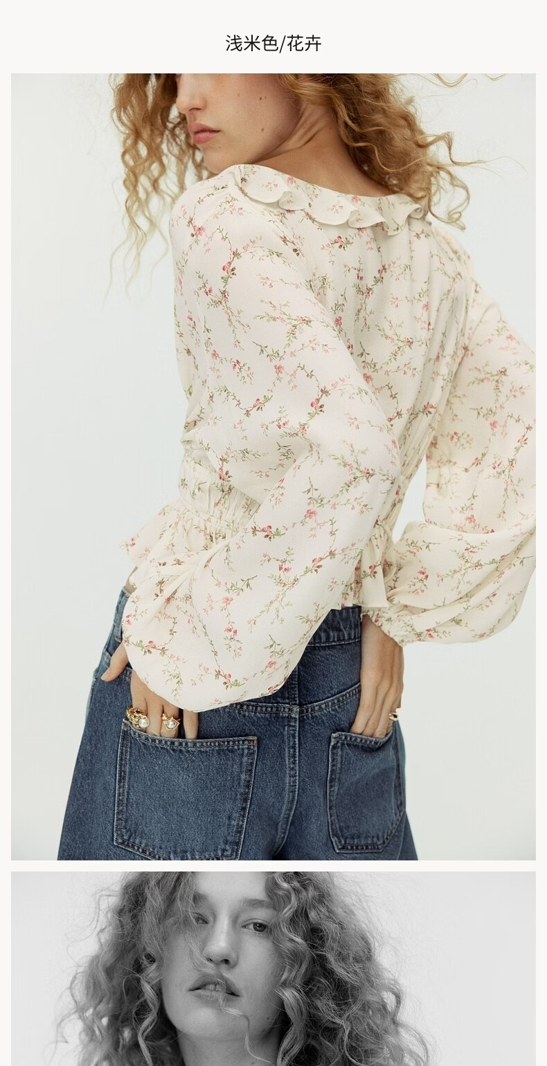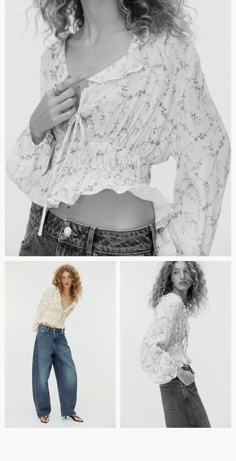 H&M2026 Spring New Women's Ruffled Viscose Top 1321146 Light Beige/Floral XS 155/80
