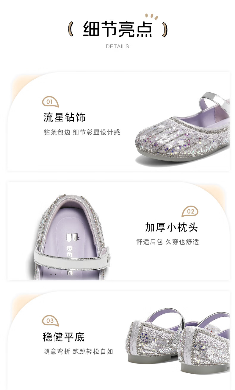 Belle Symphony Sequin Princess Shoes Children's Shoes 2026 Spring New Shopping Mall Same Style Banquet Flower Shoes A7002A86 Purple 28