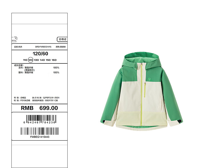 MiniPeace Children's Clothing Spring New Boys' Windbreaker FMBEG1415 Parrot Green 110