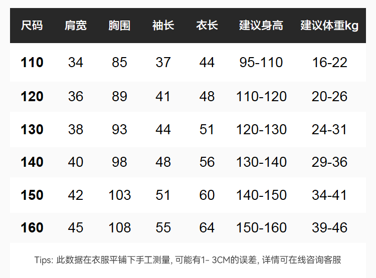 China (cm) 160-165/84-86 165-170 / 88-90 167-172 / 92-96 168-173 / 98-102 170-176 / 106-110