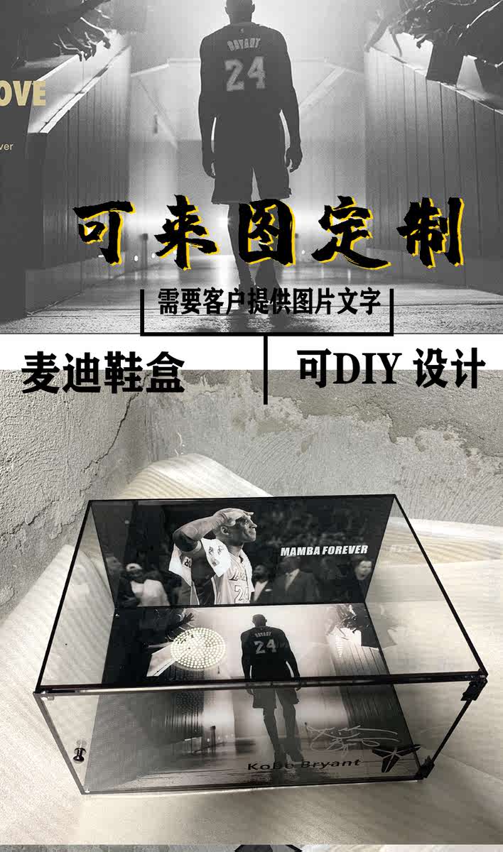 Yusen Recalls Kobe Bryant Memorial Shoe Box Transparent Sneaker Dustproof Display Box Customizable Sports Shoe Box Transparent Retirement 358x262x180mm