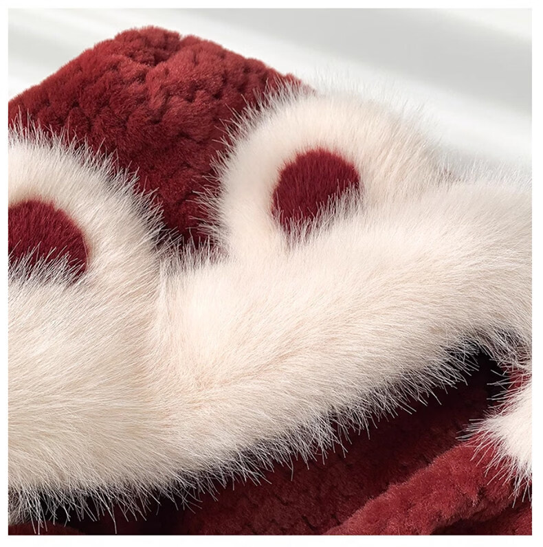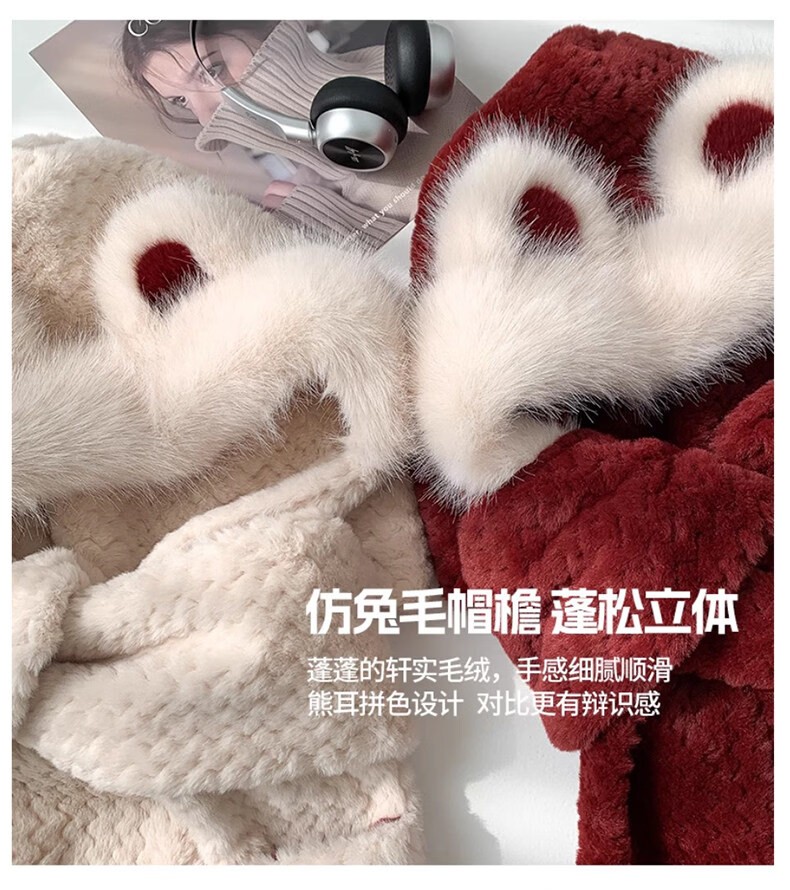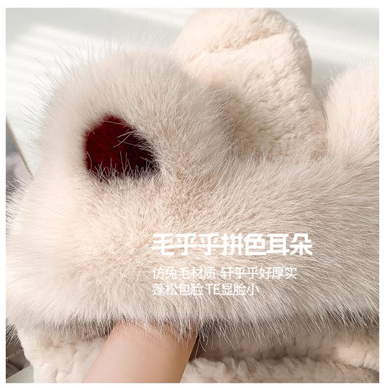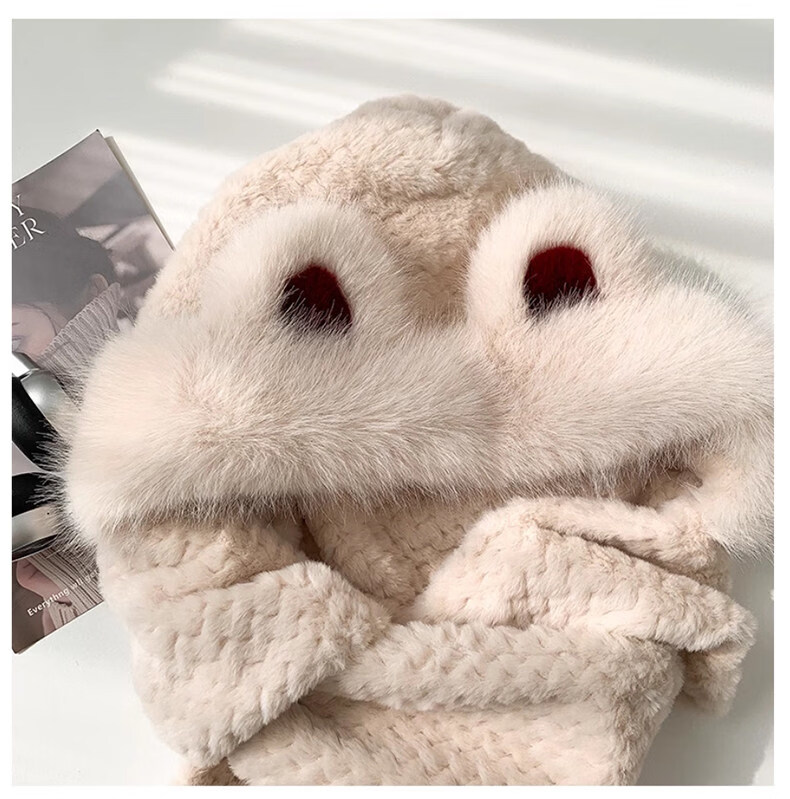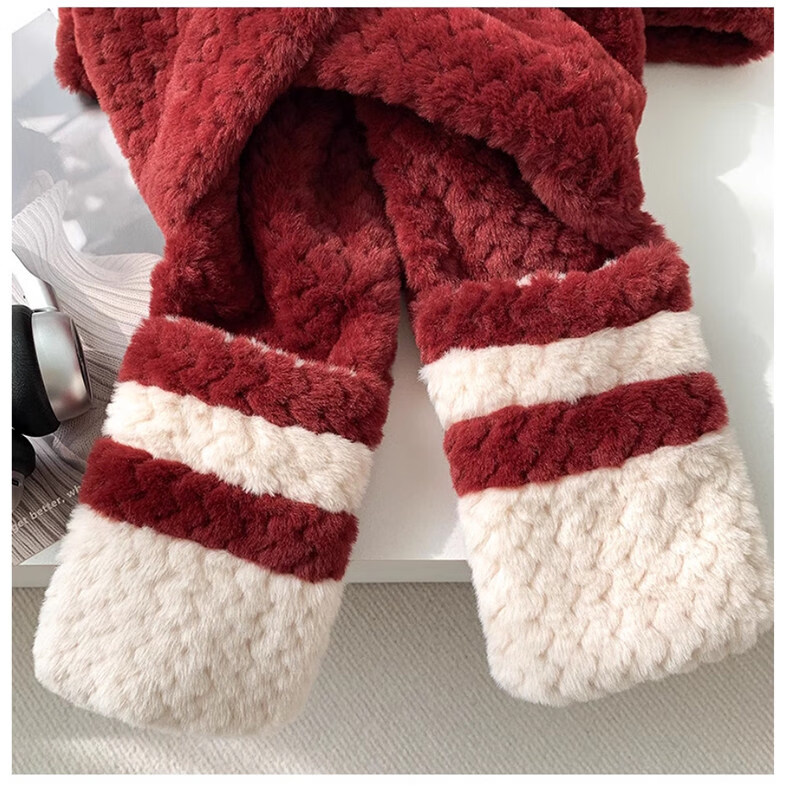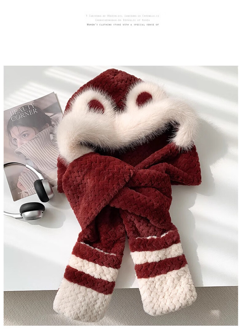 Viney hat scarf gloves all-in-one women's 2025 new winter bear plush thickened warm ear protection cycling hat Ancora red one size