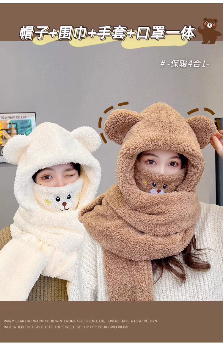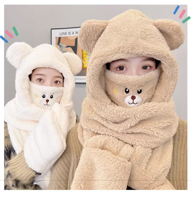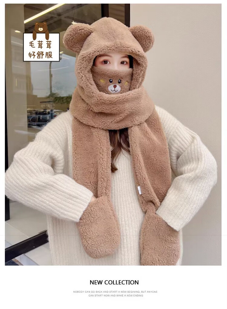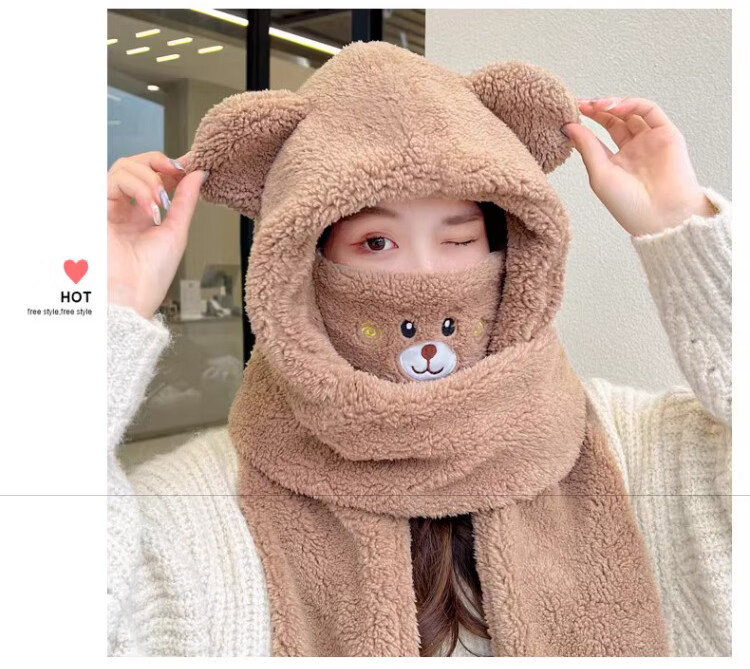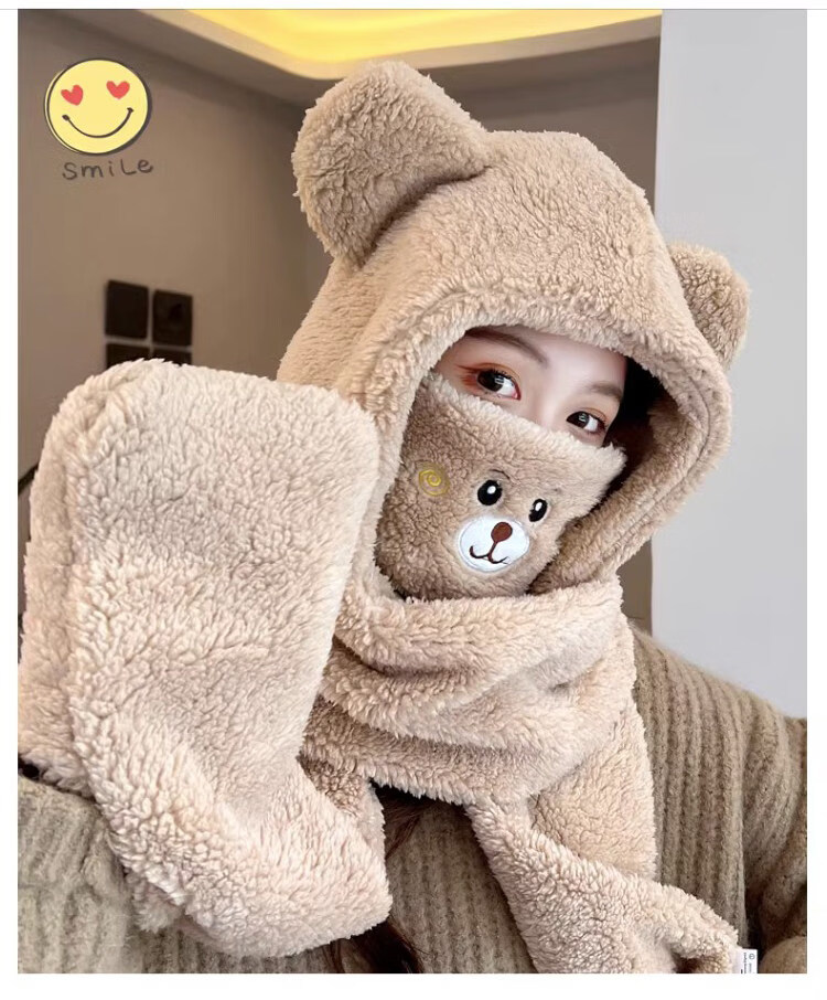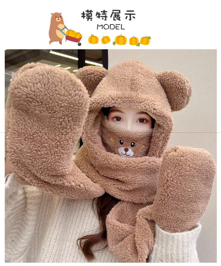 Viney scarf for women winter 2025 new hat mask one-piece gloves neck scarf hooded women's warm three-piece set milk tea brown 38 Queen's Day gift for wife and girlfriend Goddess Day Women's Day best friend girl student one size