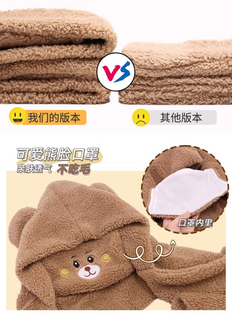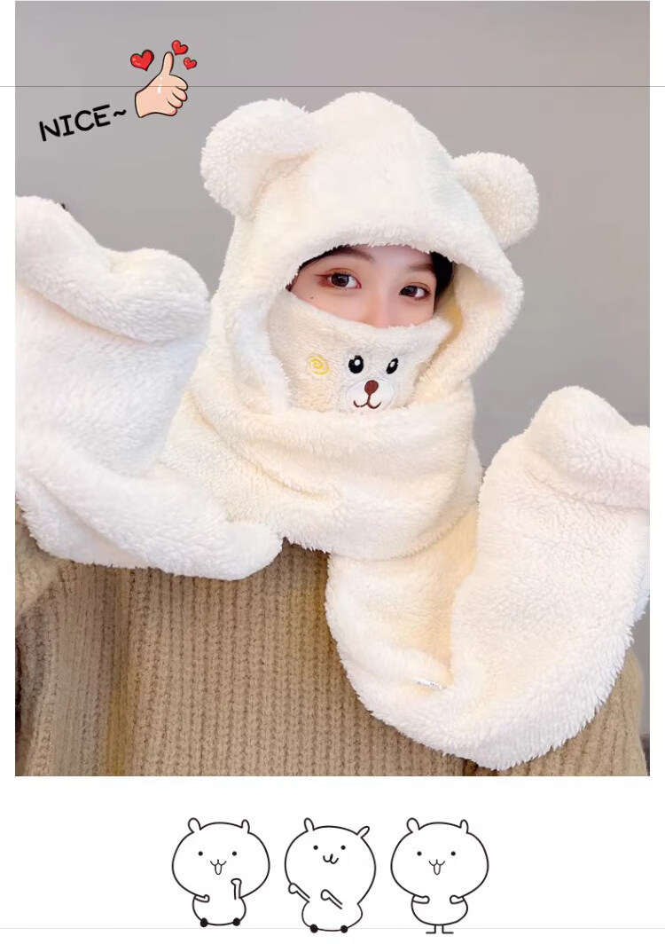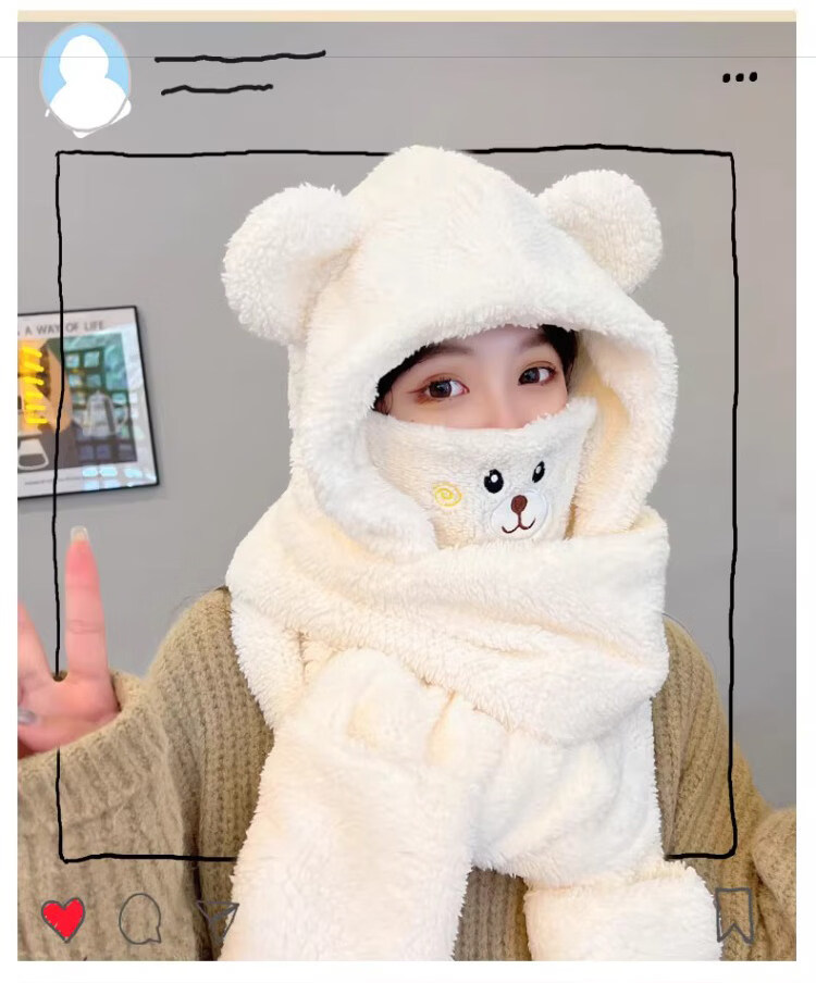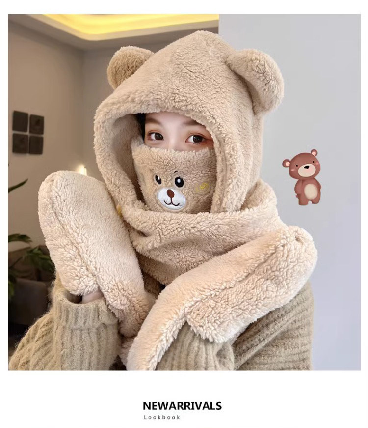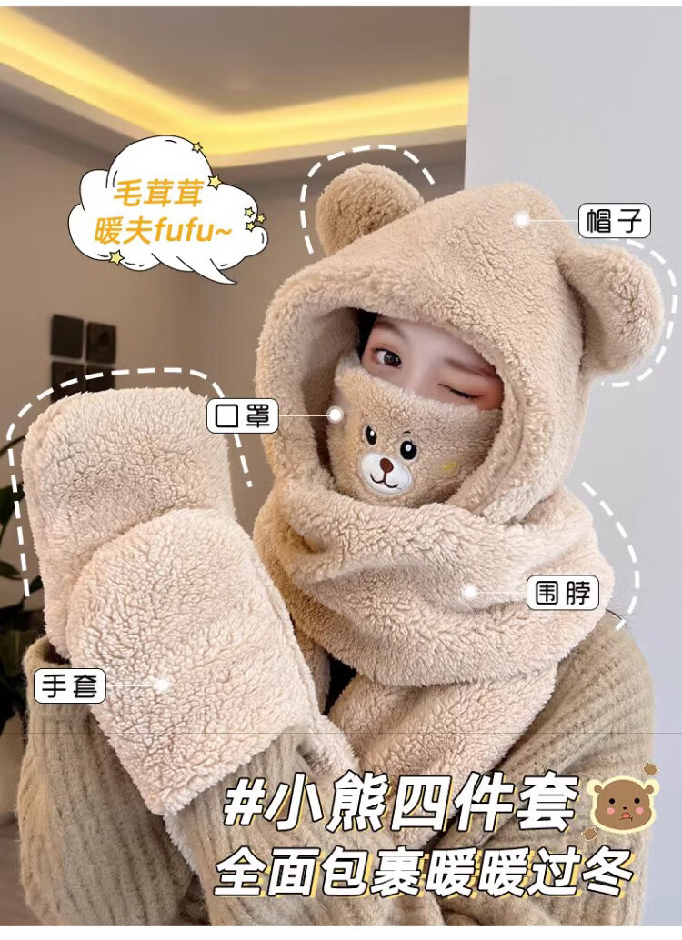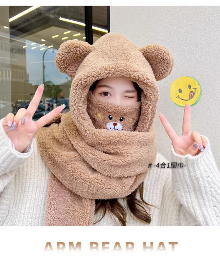 Viney scarf for women winter 2025 new hat mask one-piece gloves neck scarf hooded women's warm three-piece set milk tea brown 38 Queen's Day gift for wife and girlfriend Goddess Day Women's Day best friend girl student one size