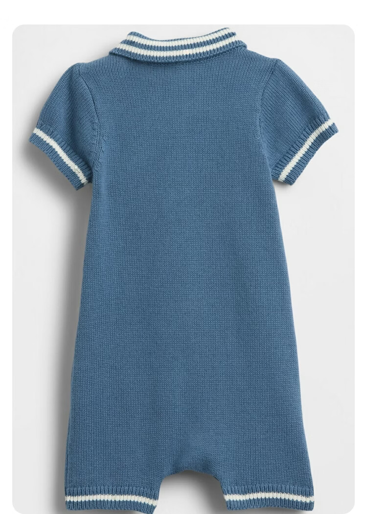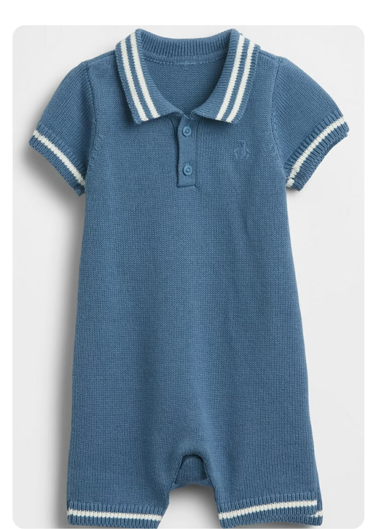 Gap Gap infant and toddler 2026 spring new pure cotton bear POLO short-sleeved jumpsuit children's clothing US version 880369 gray blue 80cm /48 Asian code 9-18 months / US code 12-18 months