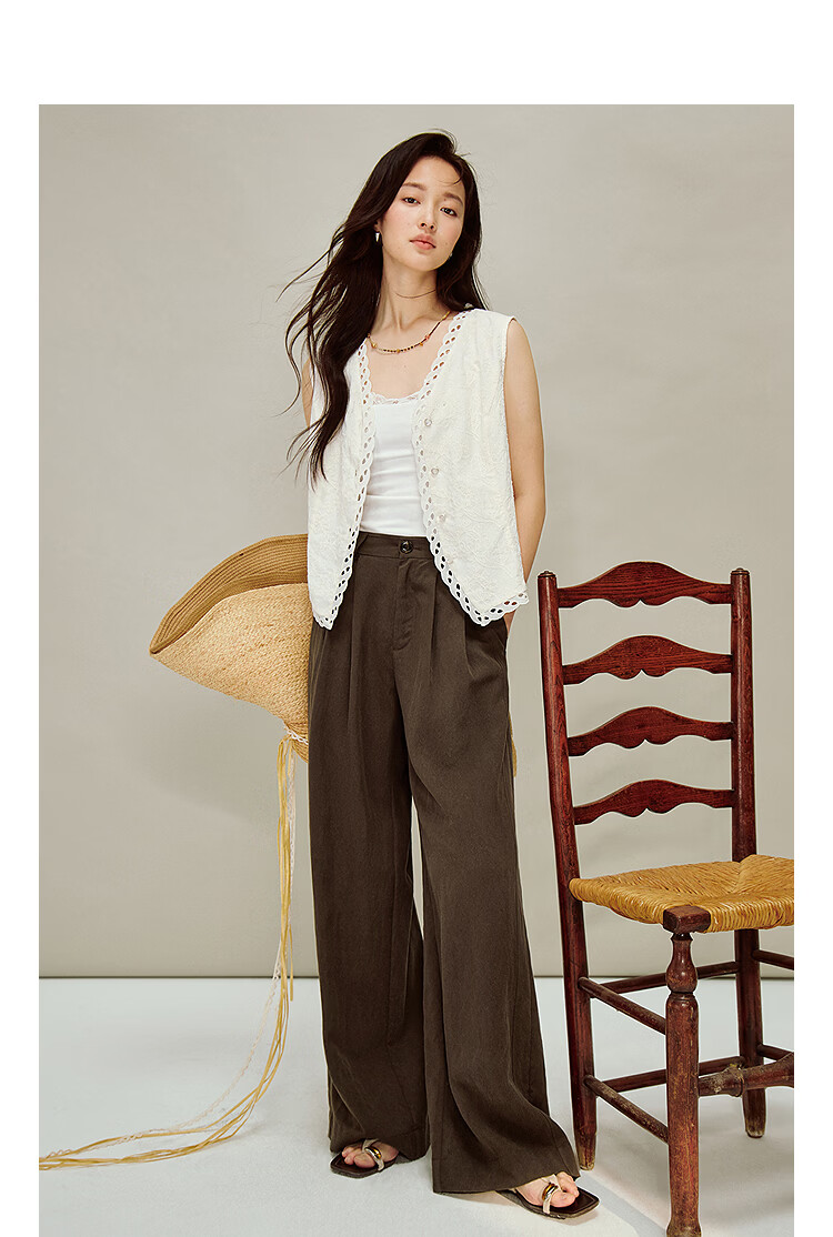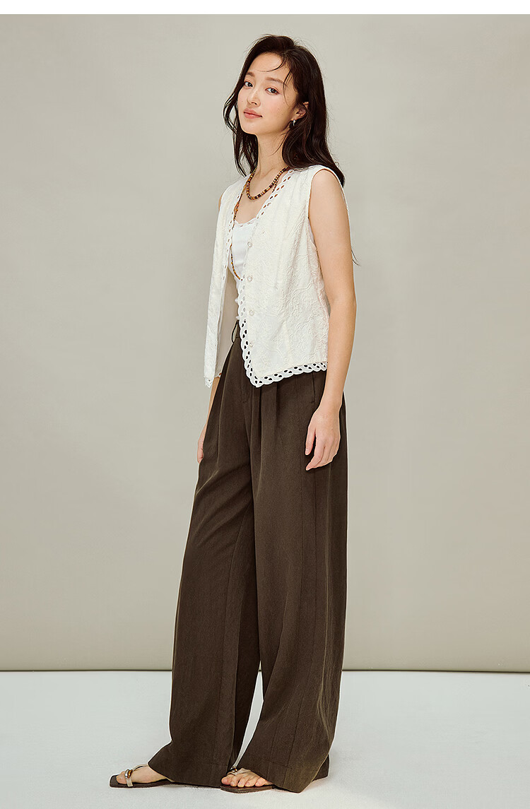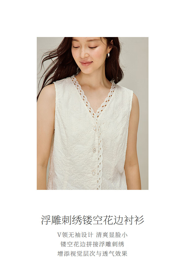 INMAN French relief embroidery V-neck sleeveless shirt 2026 spring women's new hollow lace splicing vest beige S
