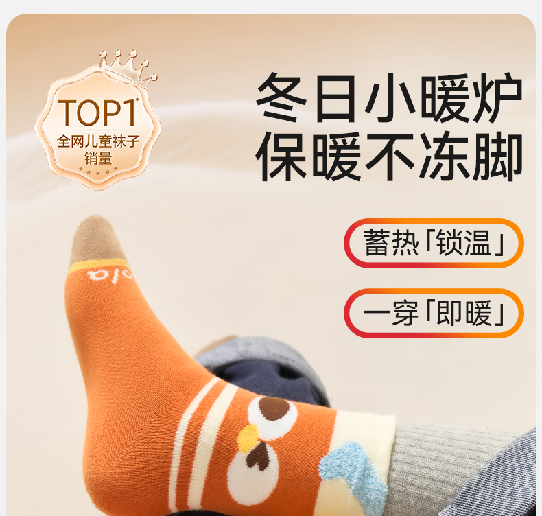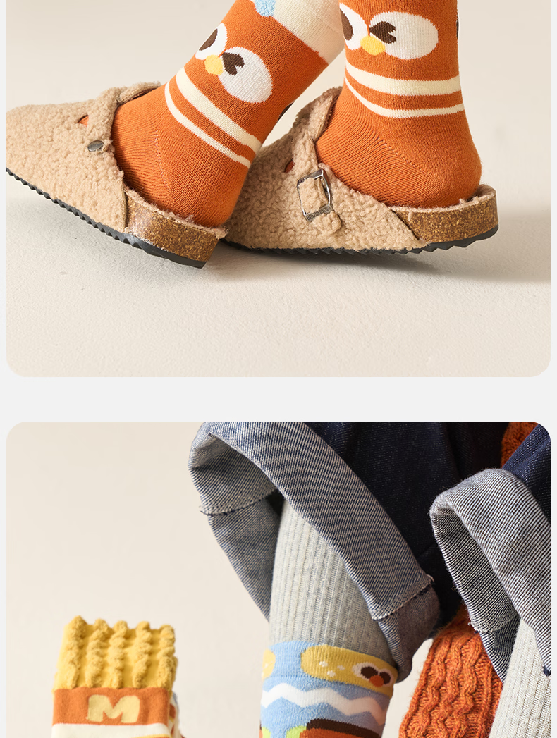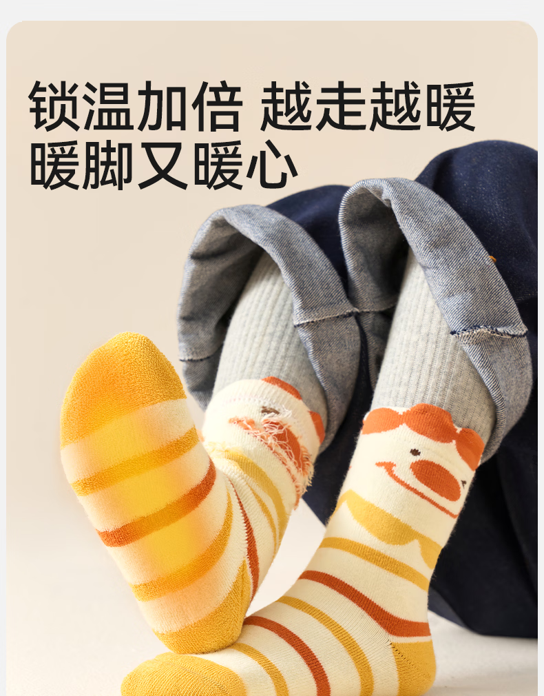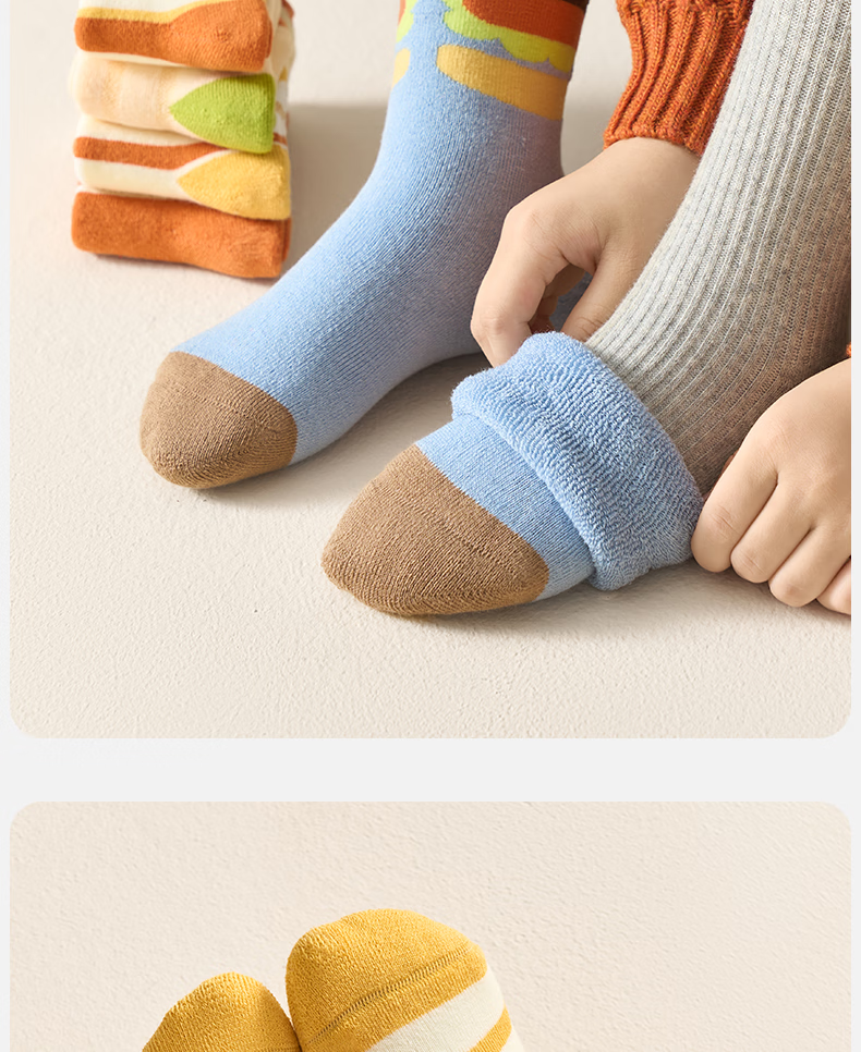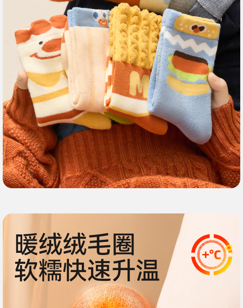 Mianqi Bear Children's Socks Autumn and Winter Cotton Socks for Boys and Girls Winter Thickened Terry Socks 10 Pairs French Fries Burger (Terry)/New Year Lucky Socks - 10 Pairs 3-5 Years Old - Recommended Foot Length 14-16CM Shoe Size 20-27