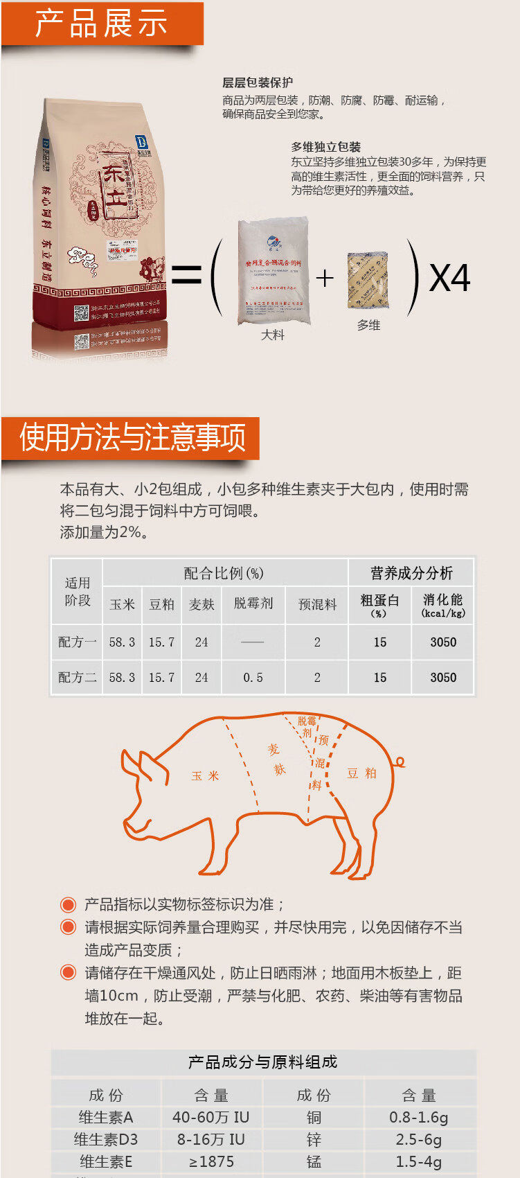 Dongli 2 Compound premix feed concentrate for pregnant sows and empty-gestation pigs for farrowing and multiple pigs 2 Compound premix for pregnant sows and empty-gestation pigs Feed concentrate for farrowing and multiple pigs