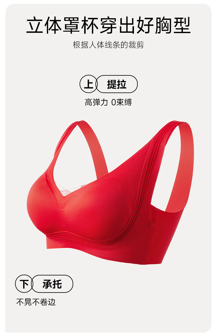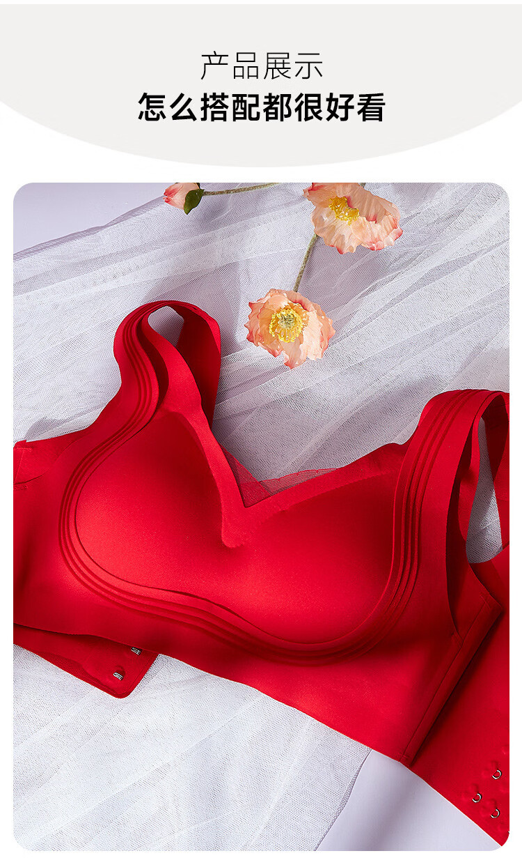 Sweet lady New Year's gift Zodiac year Wedding underwear push-up seamless soft steel ring red underwear bra 3042204 red L Recommended 105-120 Jin Jin equals 0.5 kg