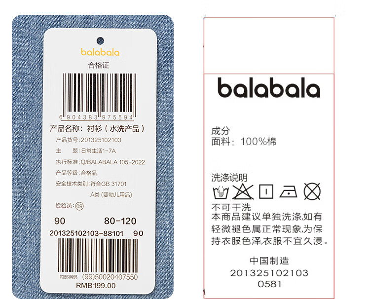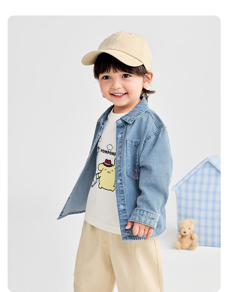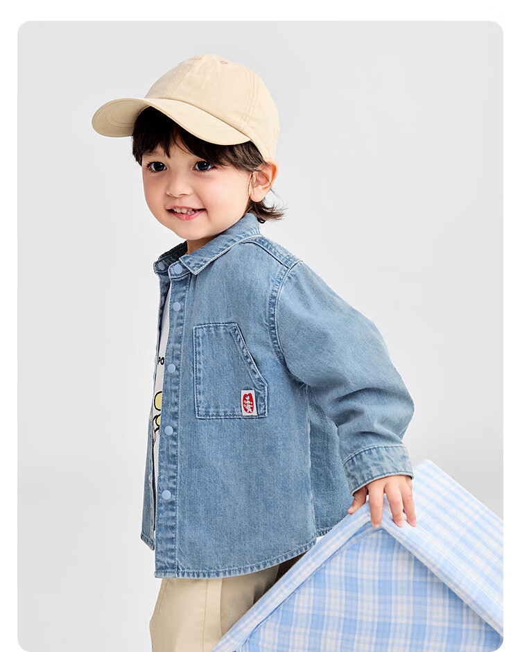 BALABALA Shopping mall same style baby shirt long sleeve denim jacket boys top 2025 new autumn clothing denim light blue 88101 90