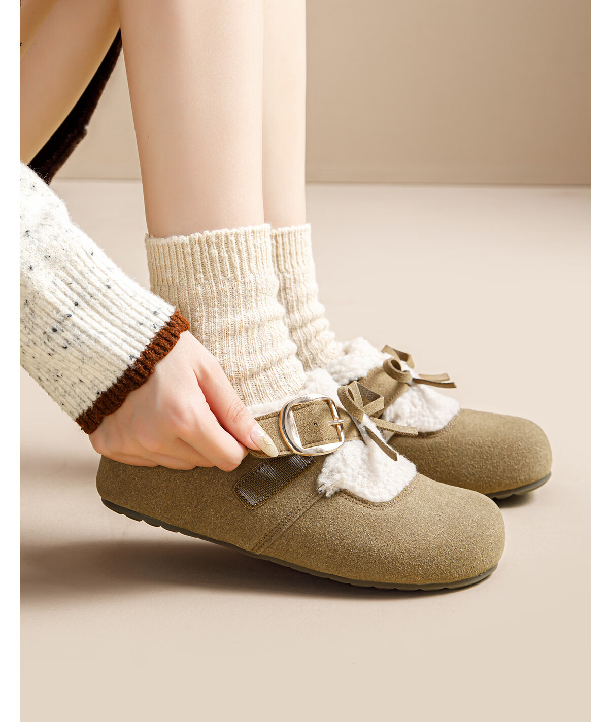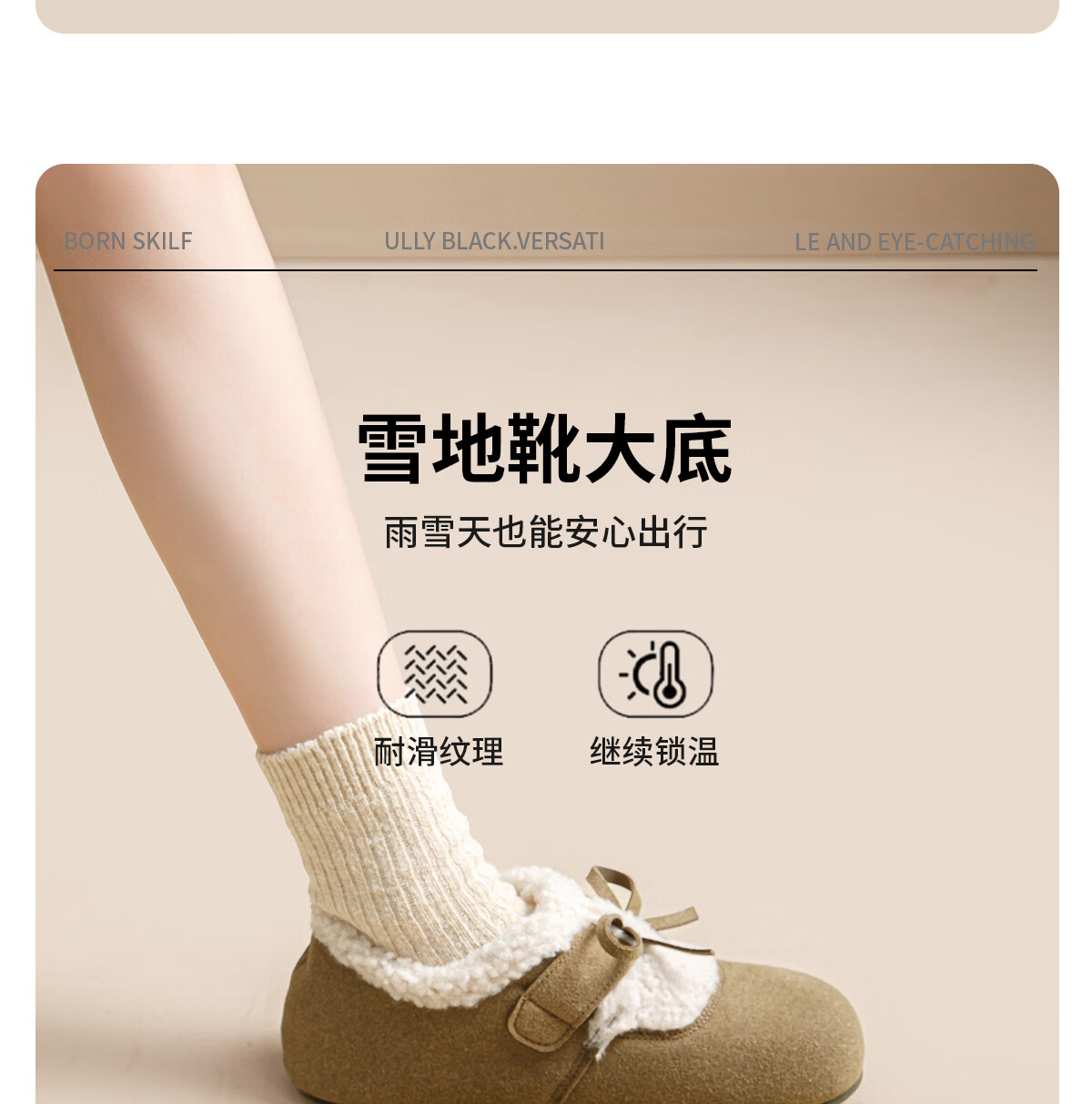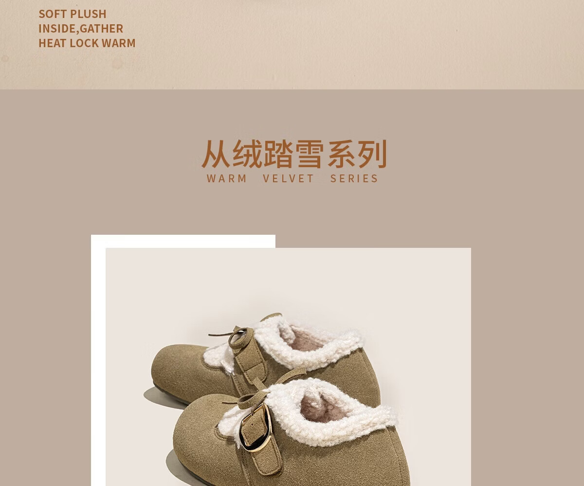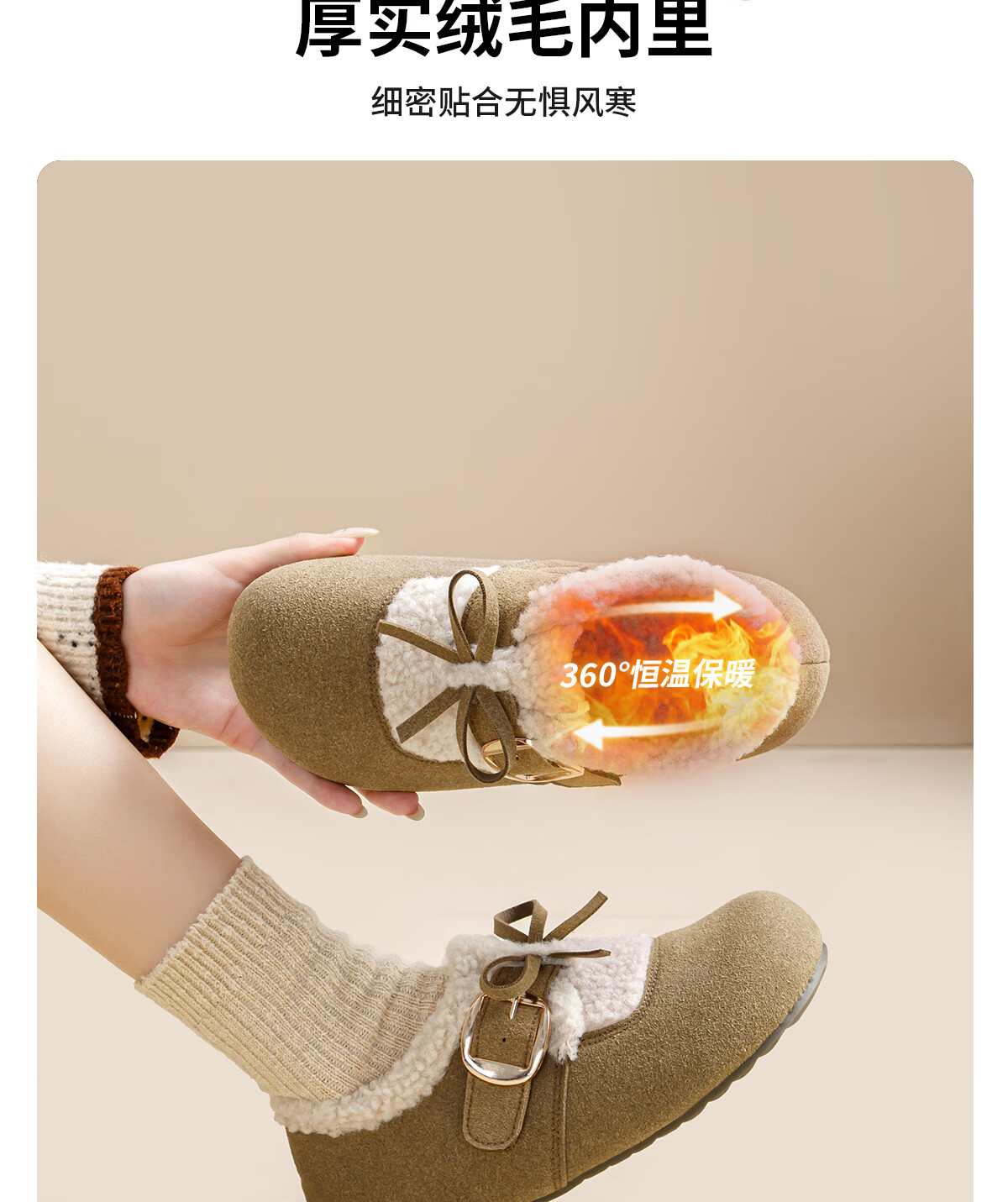 Yisi Q (exull) furry Birkenstock shoes for women 2025 new winter thick soles with increased height plus velvet cotton shoes for women thickened versatile snow boots for women khaki - plus velvet soft soles 35