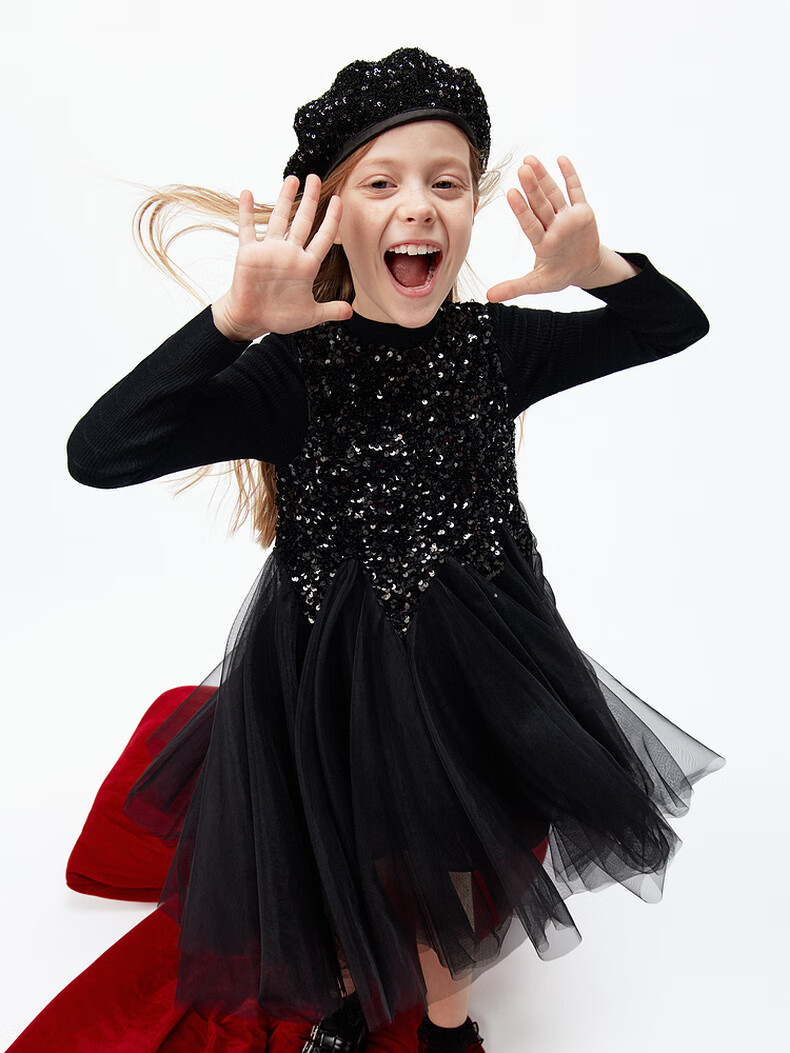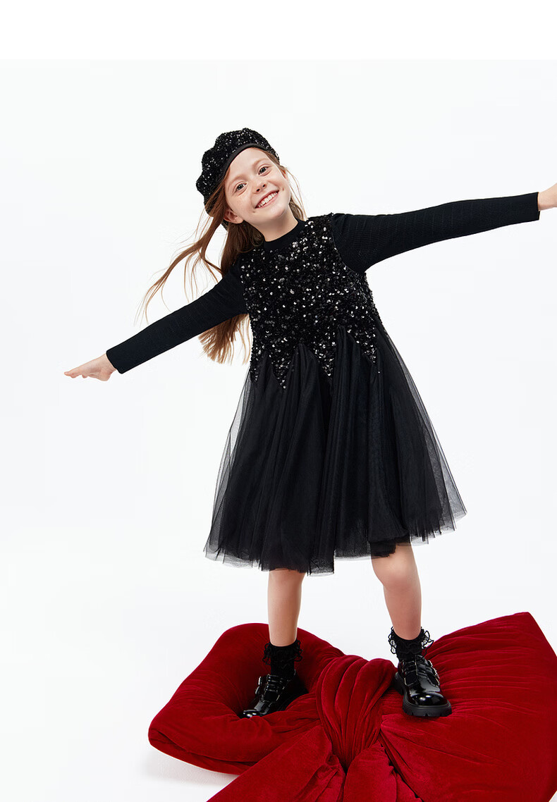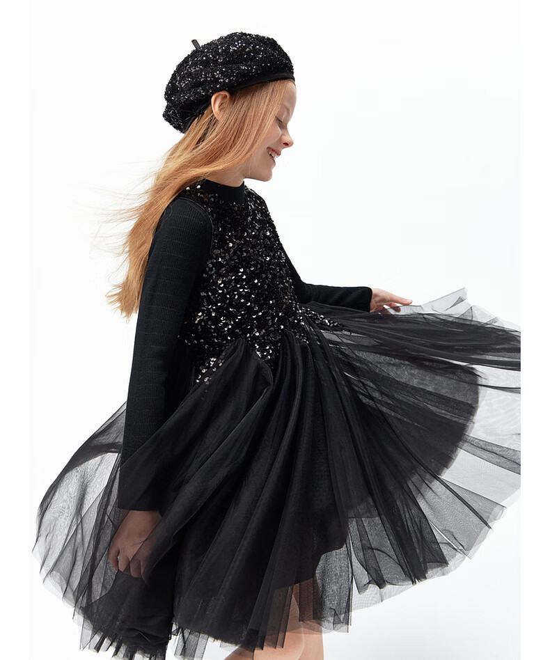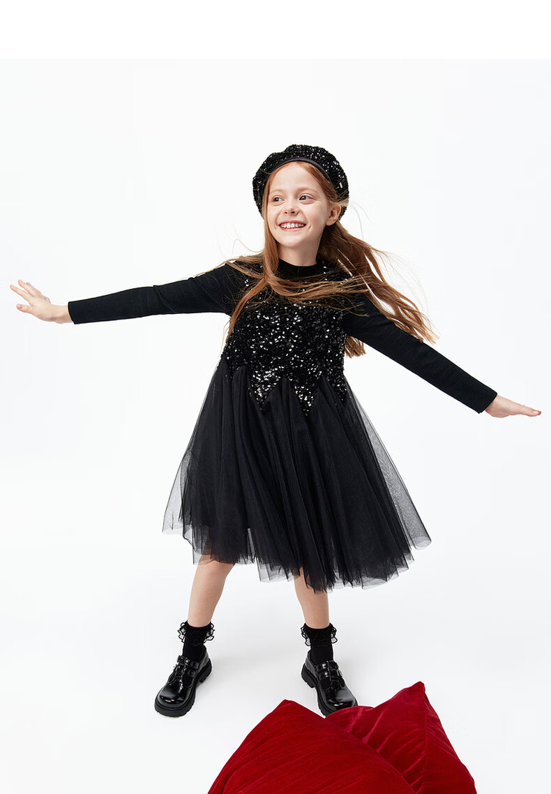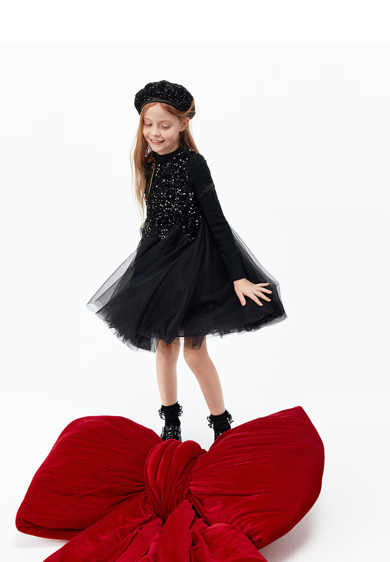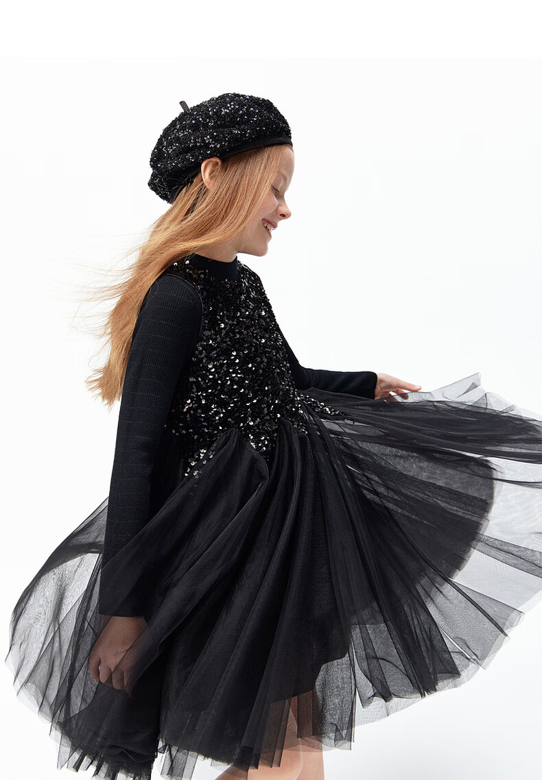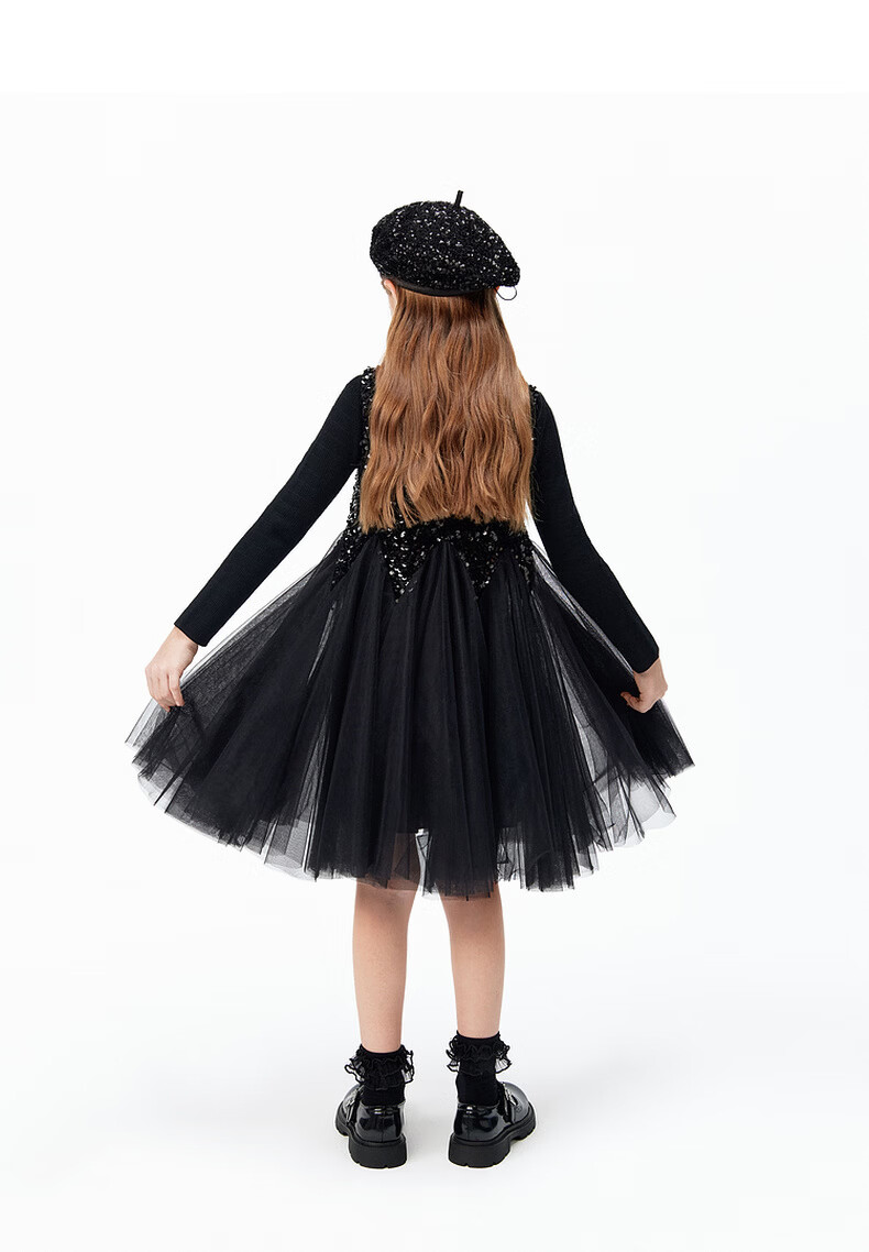 Little MO&Co.little moco children's clothing 26 spring new style girls sequin embroidered mesh skirt sleeveless dress party skirt black 100 110/52