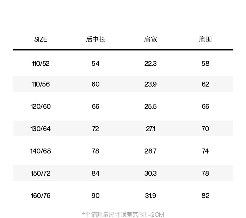 China (cm) 160-165/84-86 165-170 / 88-90 167-172 / 92-96 168-173 / 98-102 170-176 / 106-110