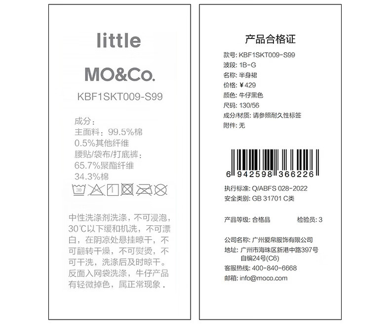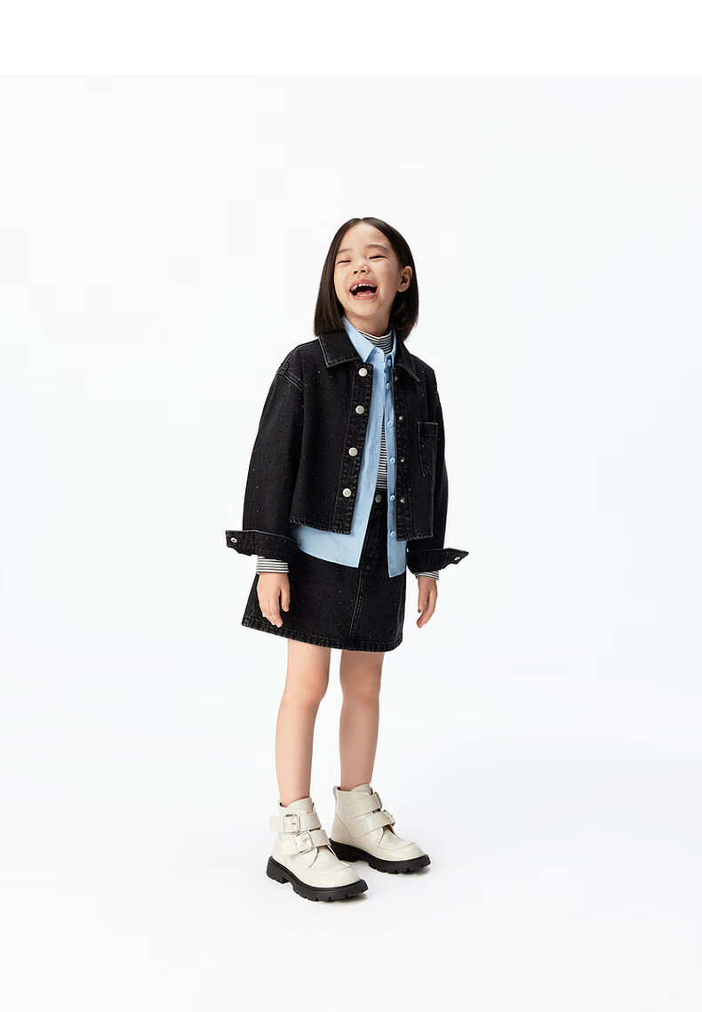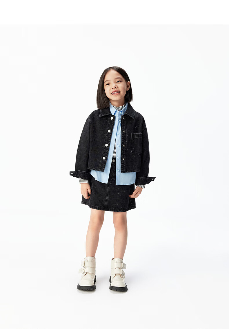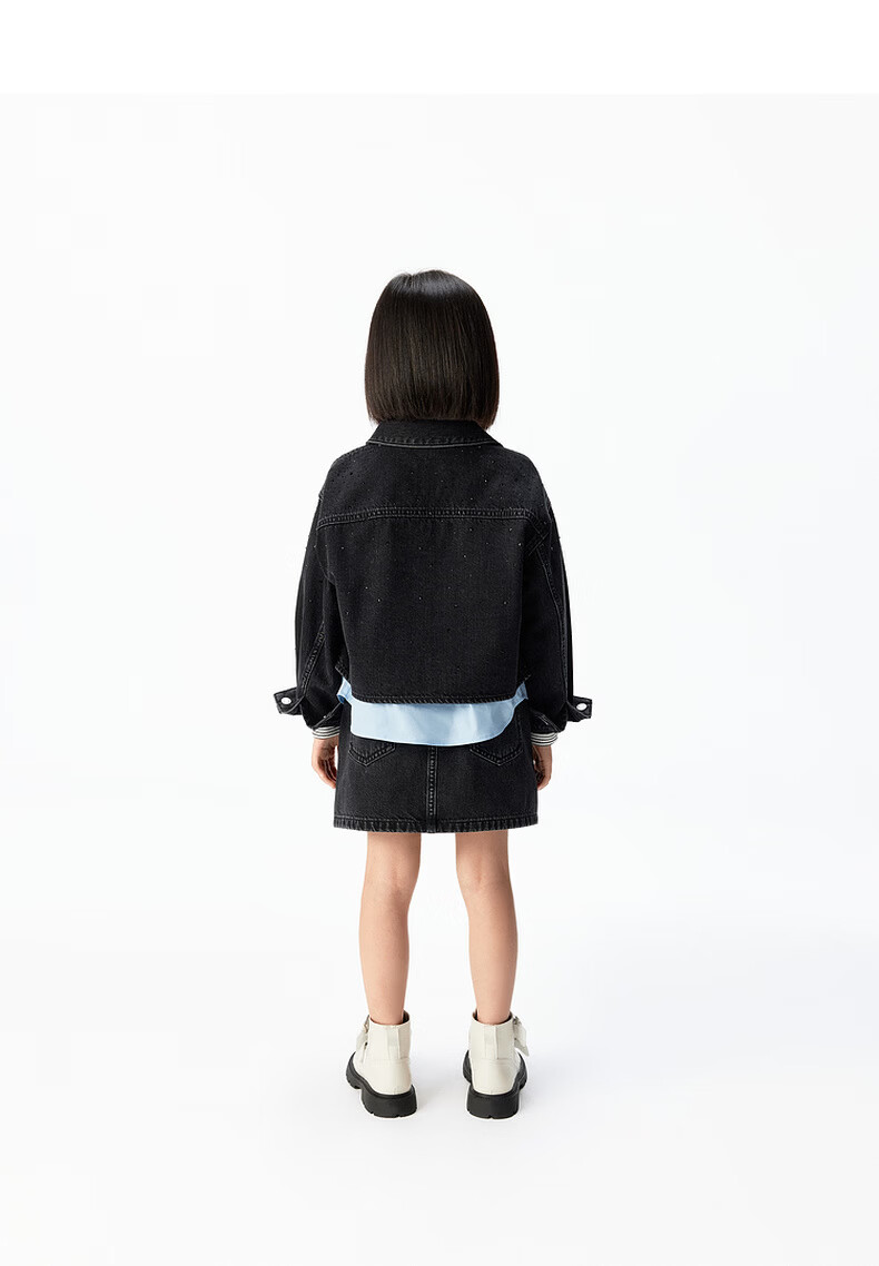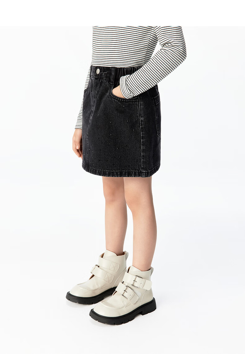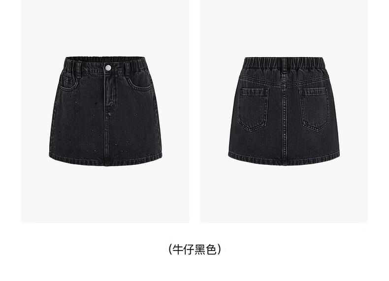 Little MO&Co. Show same style little moco children's clothing 26 new girls imitation hot diamond denim skirt short skirt parent-child denim black 165 165/67