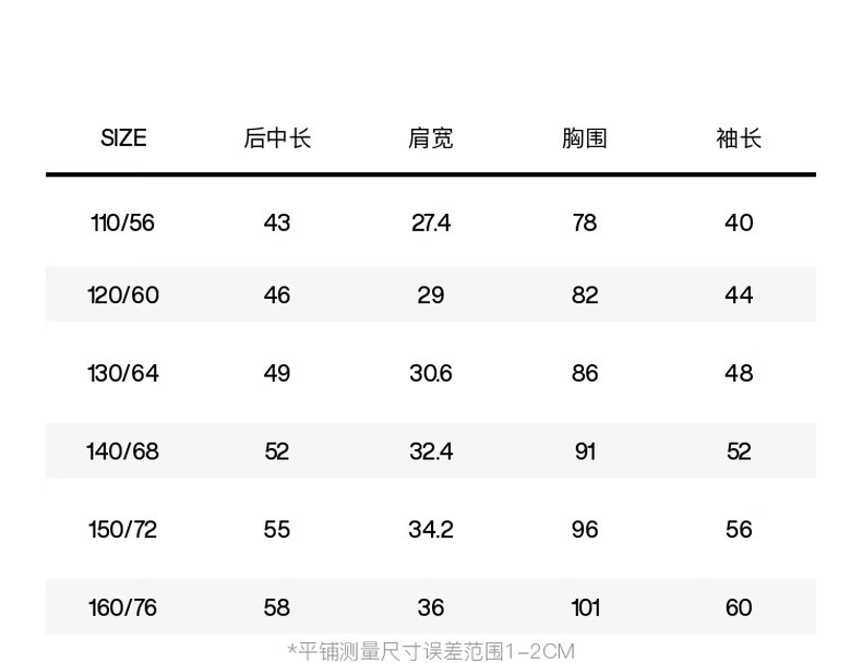China (cm) 160-165/84-86 165-170 / 88-90 167-172 / 92-96 168-173 / 98-102 170-176 / 106-110