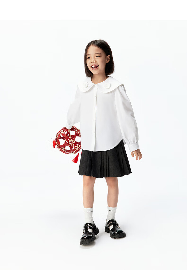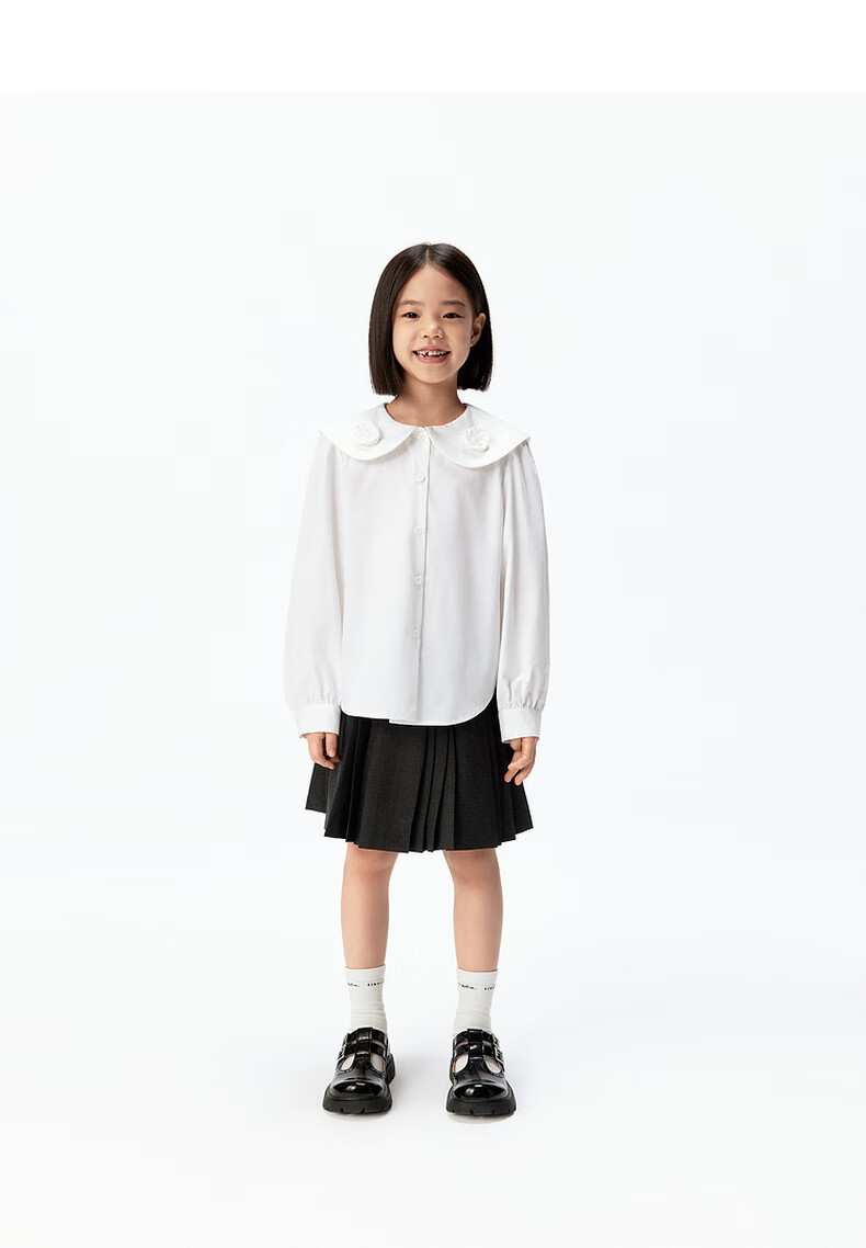 Little MO&Co. Jiajia's same little moco children's clothing 26 spring new style girls floral cotton doll collar long-sleeved shirt original white 110 110/56