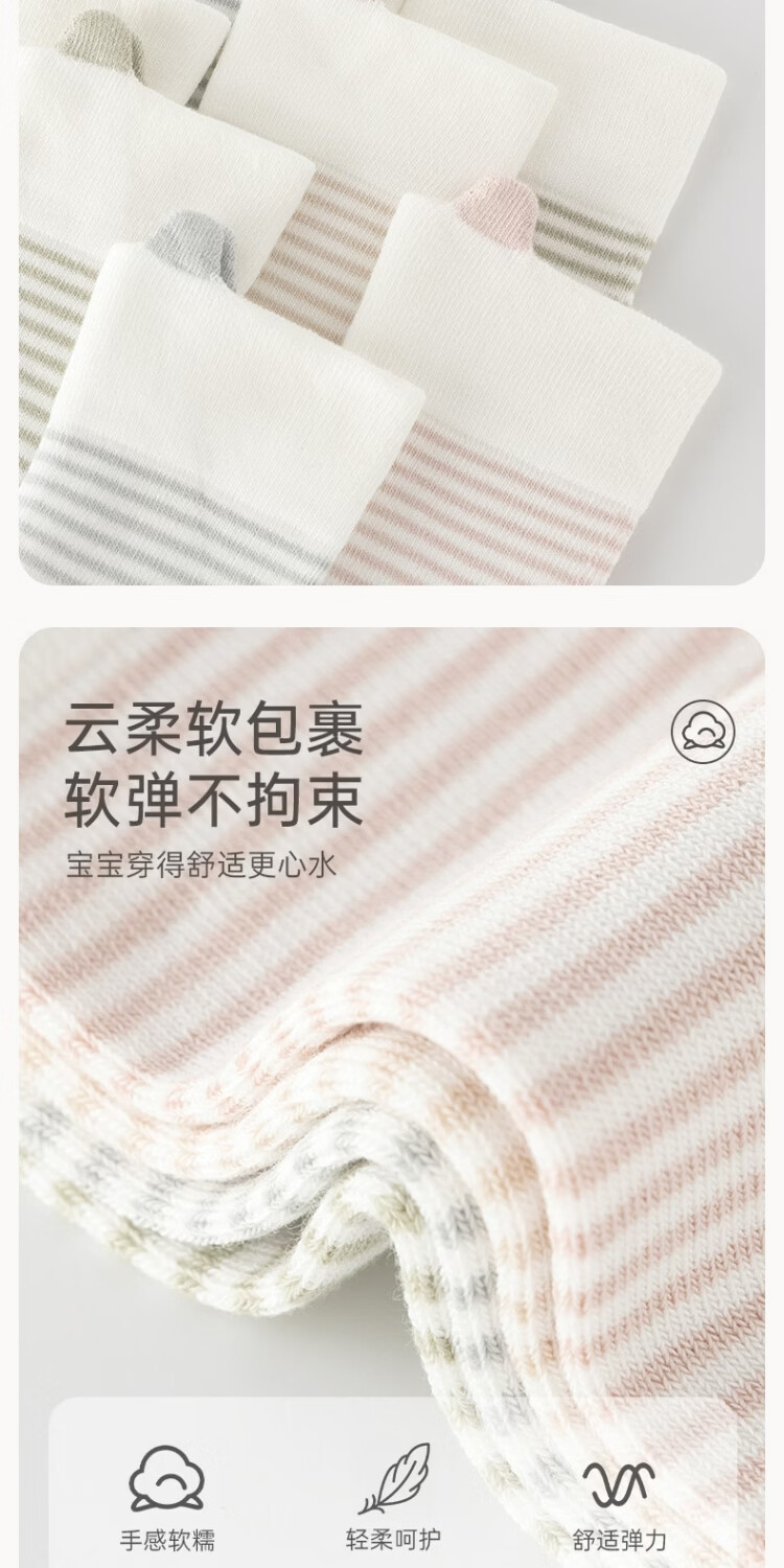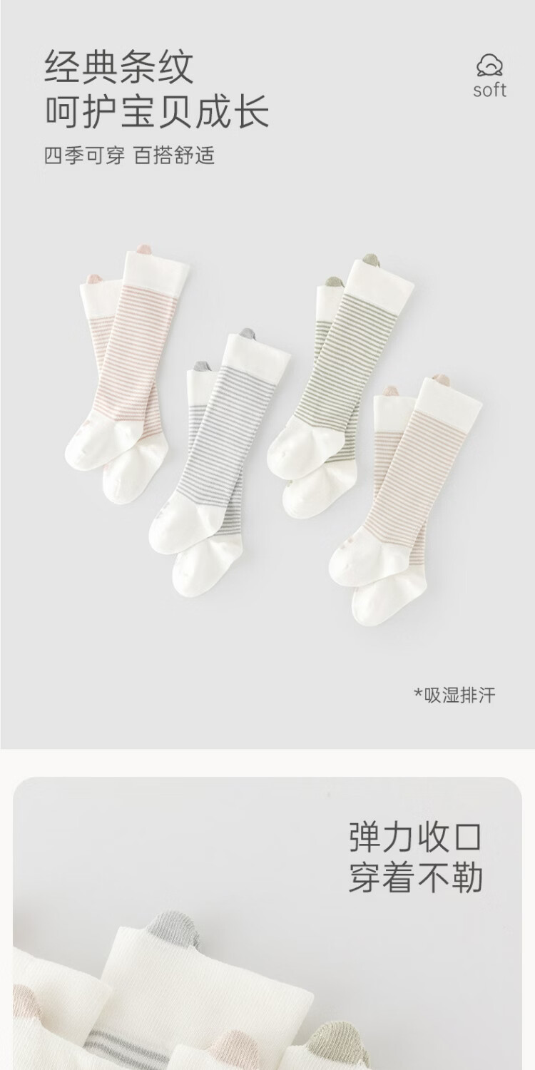 Wooden cotton newborn stockings spring and autumn baby elastic over-the-knee socks 7A antibacterial baby anti-mosquito and leg-proof green striped cotton elastic spring and autumn 0-6 months