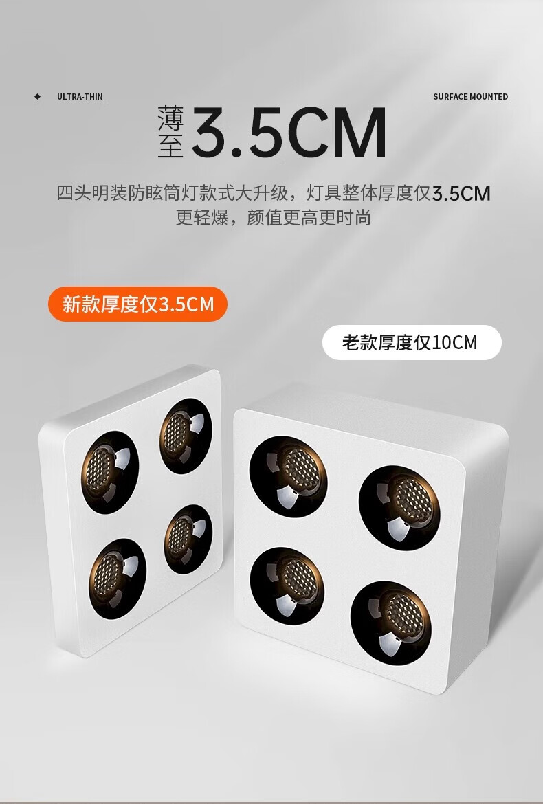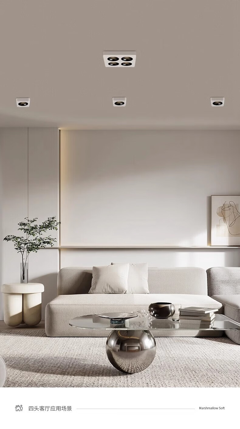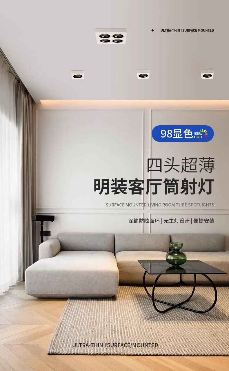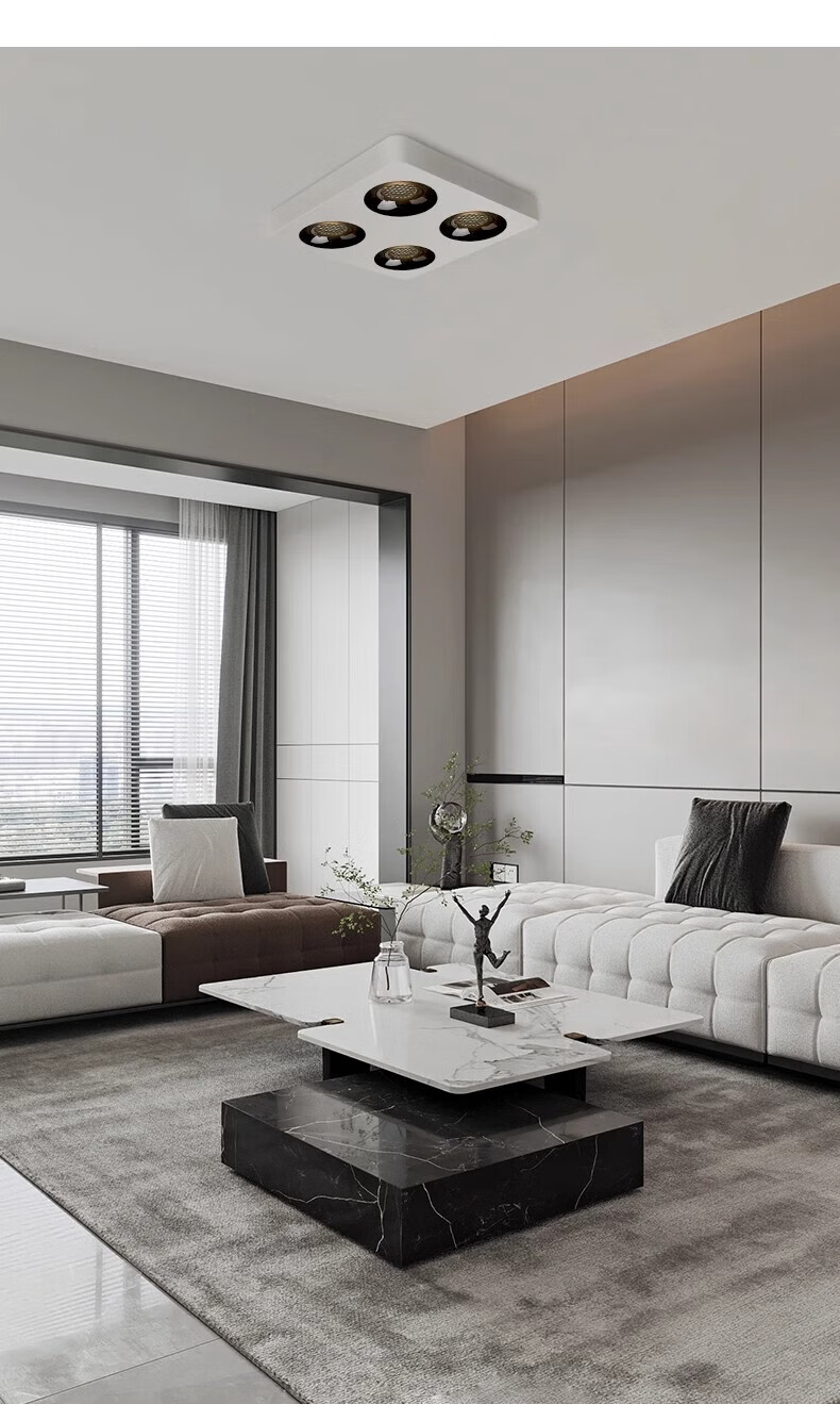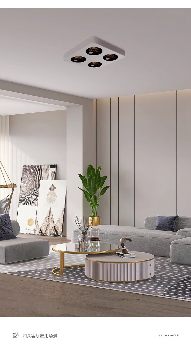 Laberta bold lamp surface-mounted spotlight without main light living room lighting anti-glare four-head square ceiling downlight bedroom lamp ultra-thin all black-double head model 18w spotlight access Mijia app