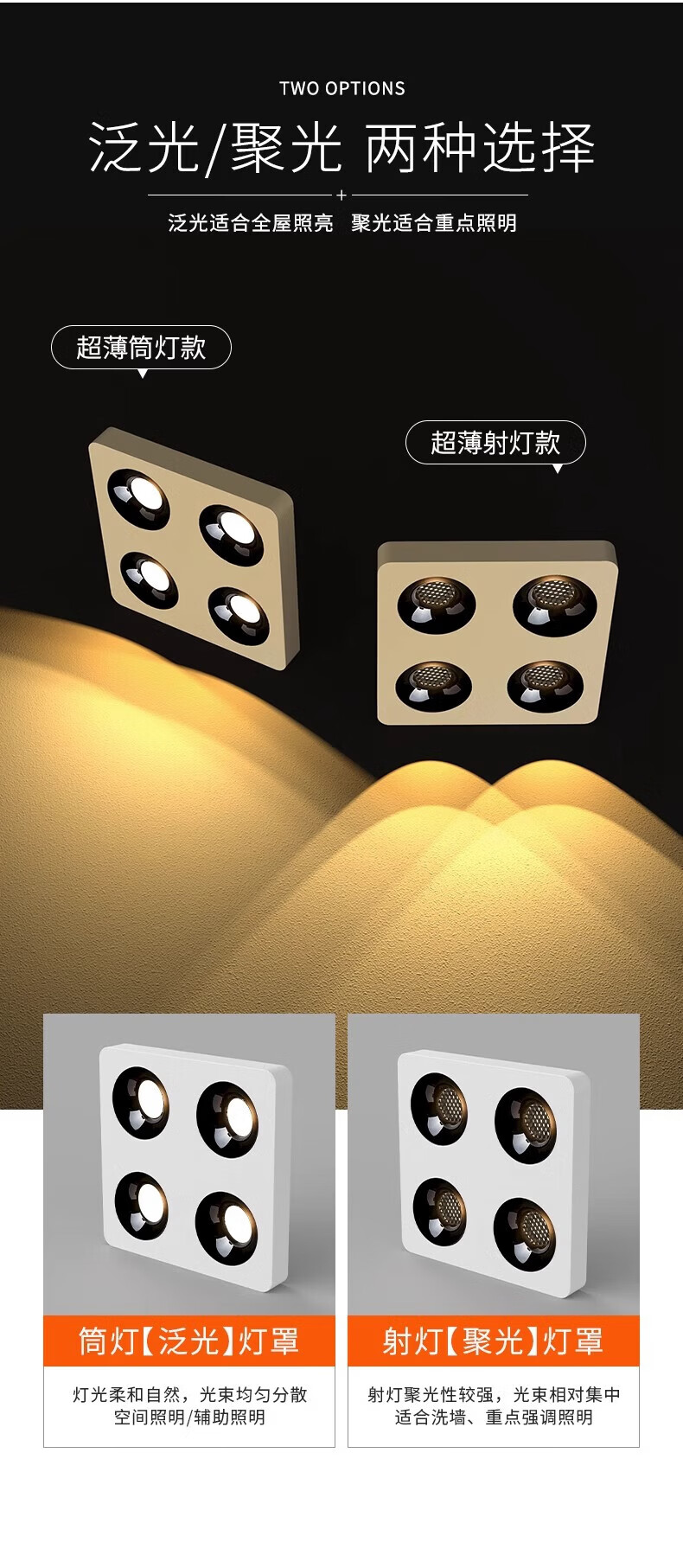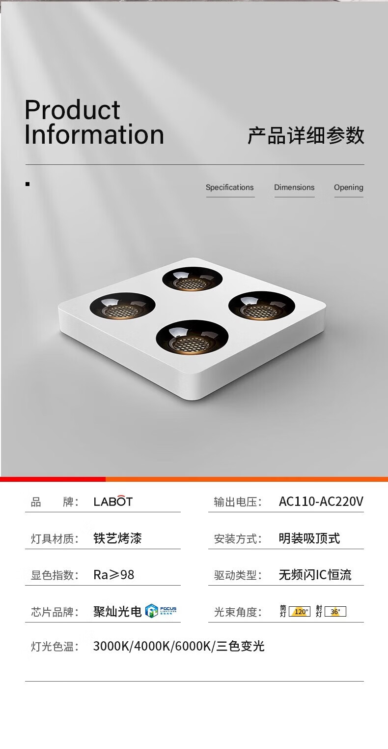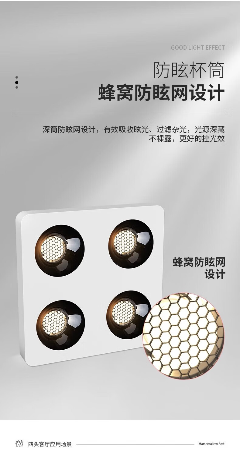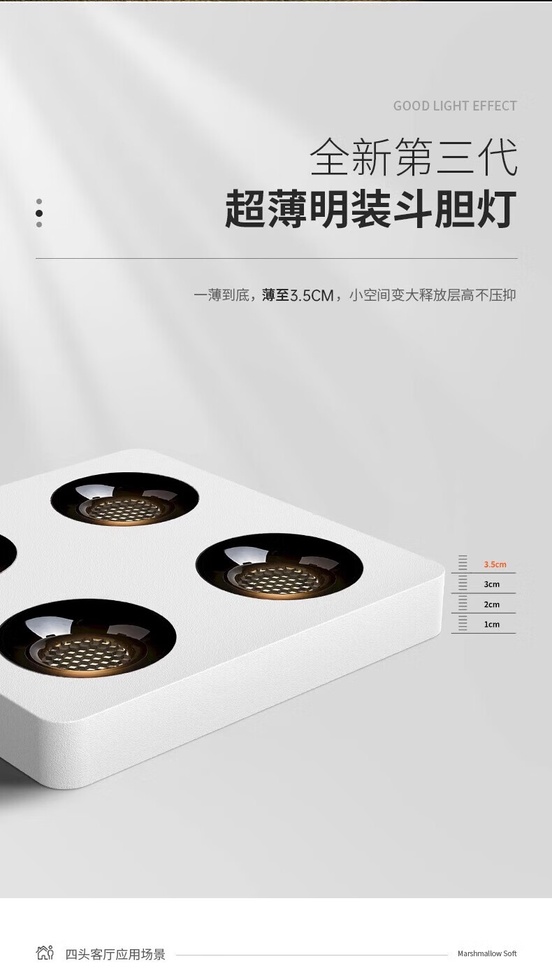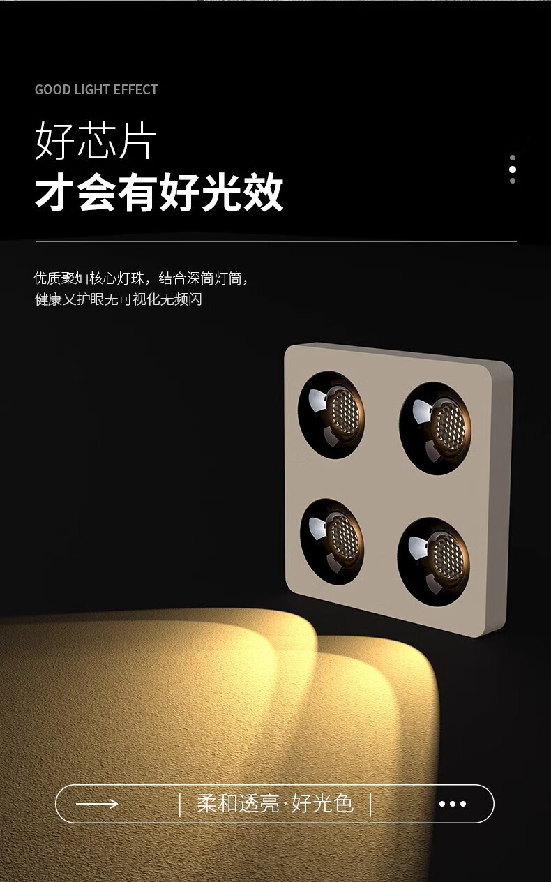 Laberta bold lamp surface-mounted spotlight without main light living room lighting anti-glare four-head square ceiling downlight bedroom lamp ultra-thin all black-double head model 18w spotlight access Mijia app